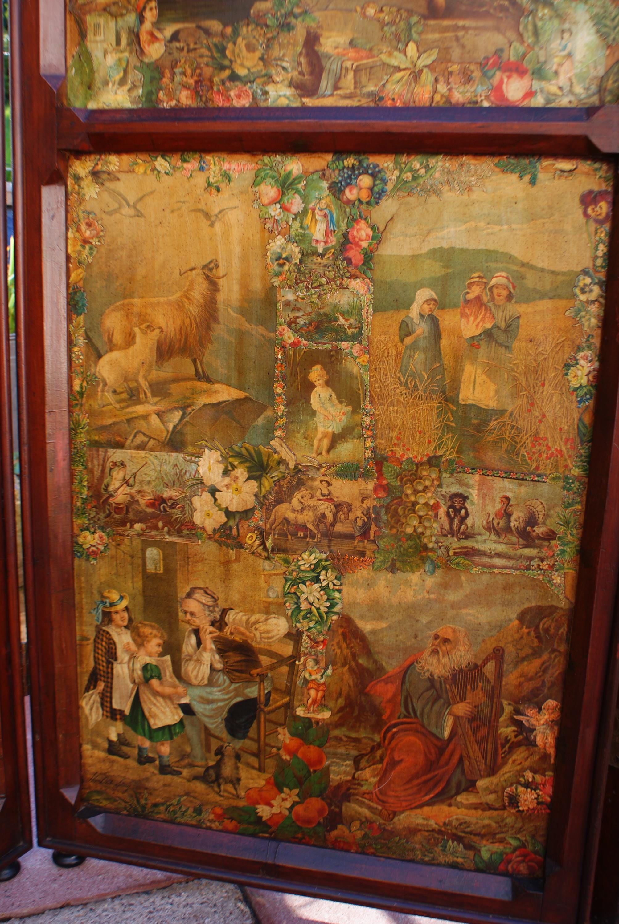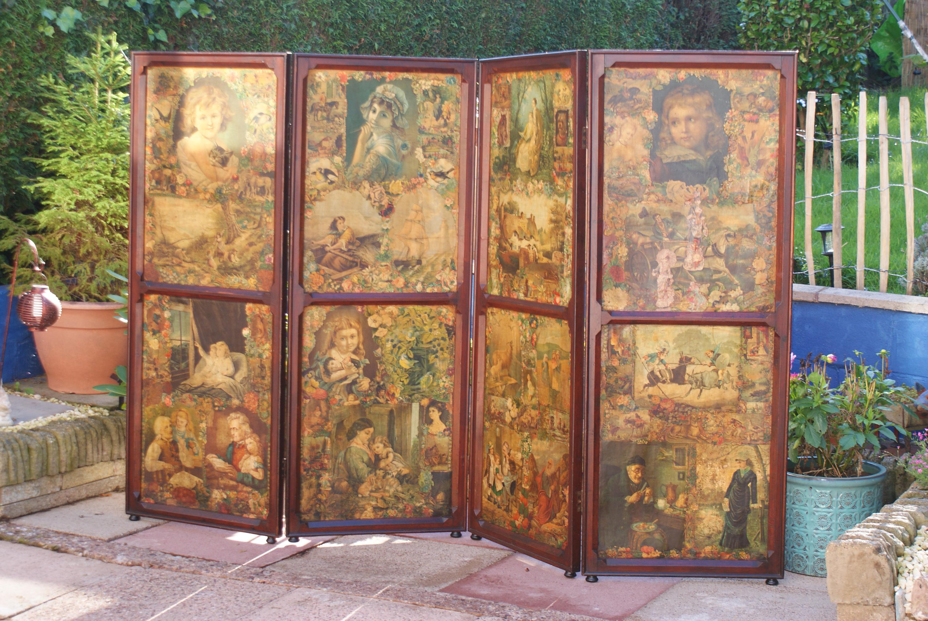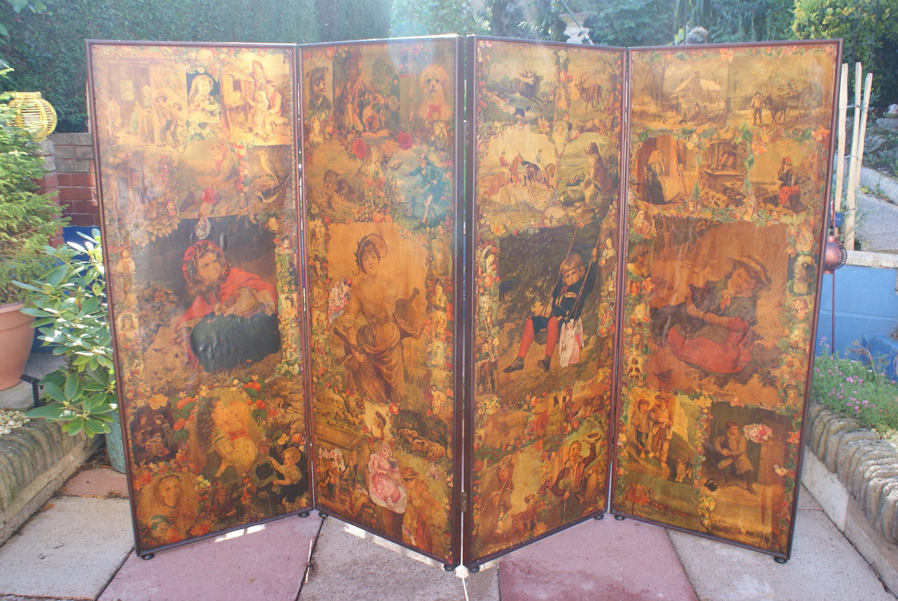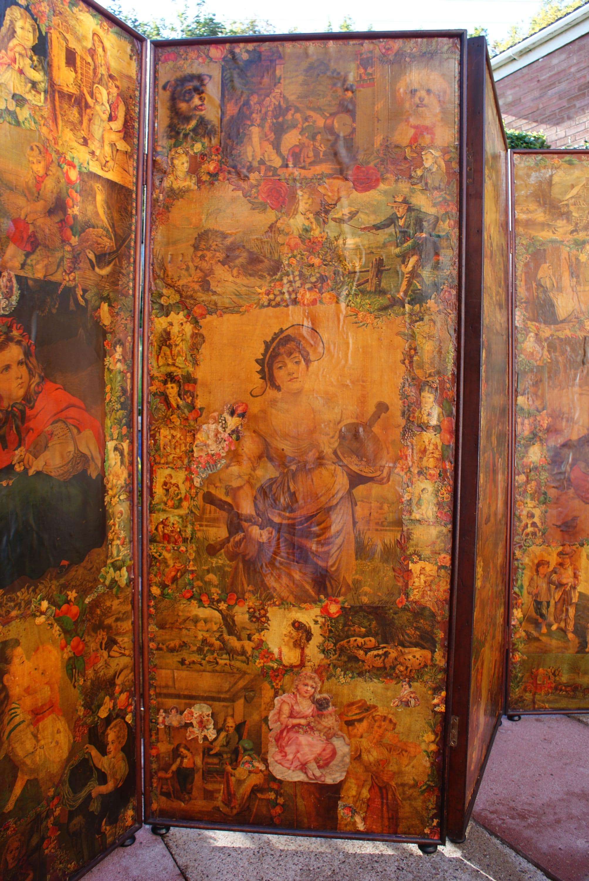 Late 19th Century Victorian Decoupage Four Panel Screen