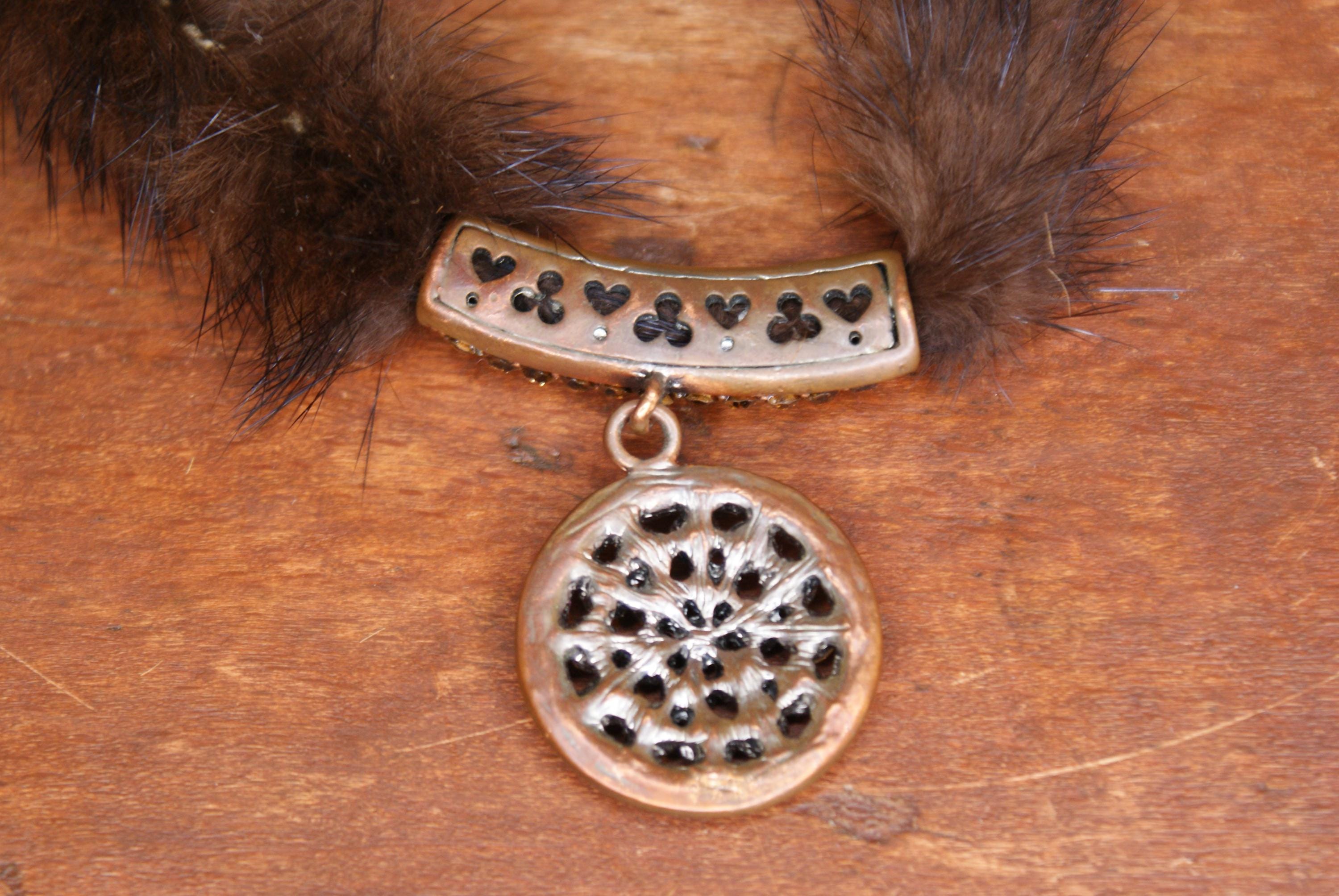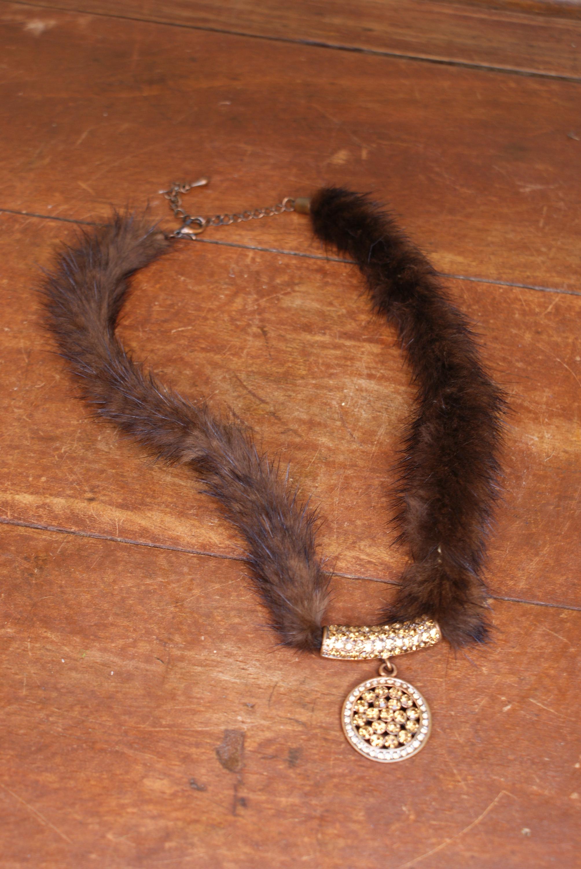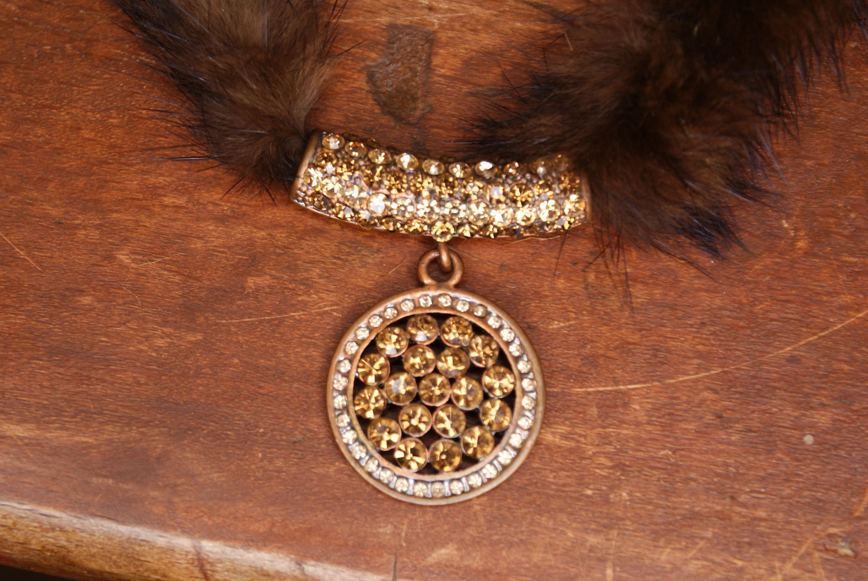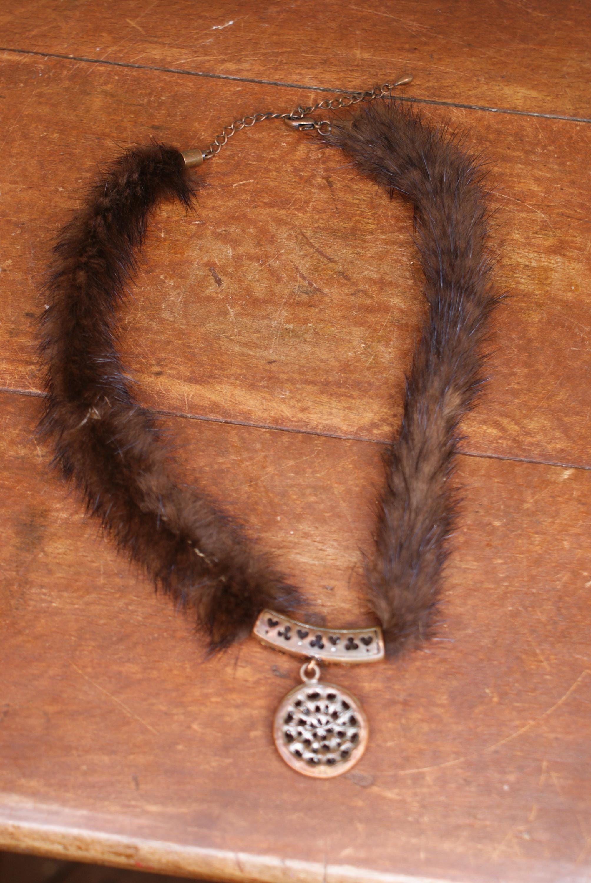 A lovely piece of art deco costume jewellery made from real mink fur and with a lovely decorative pendant. The chain measures approximately 50cm in Length.