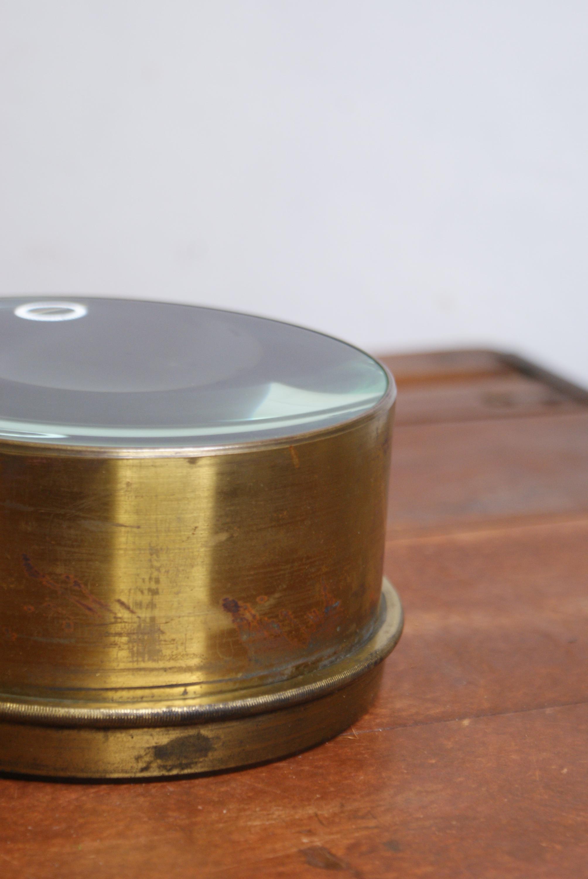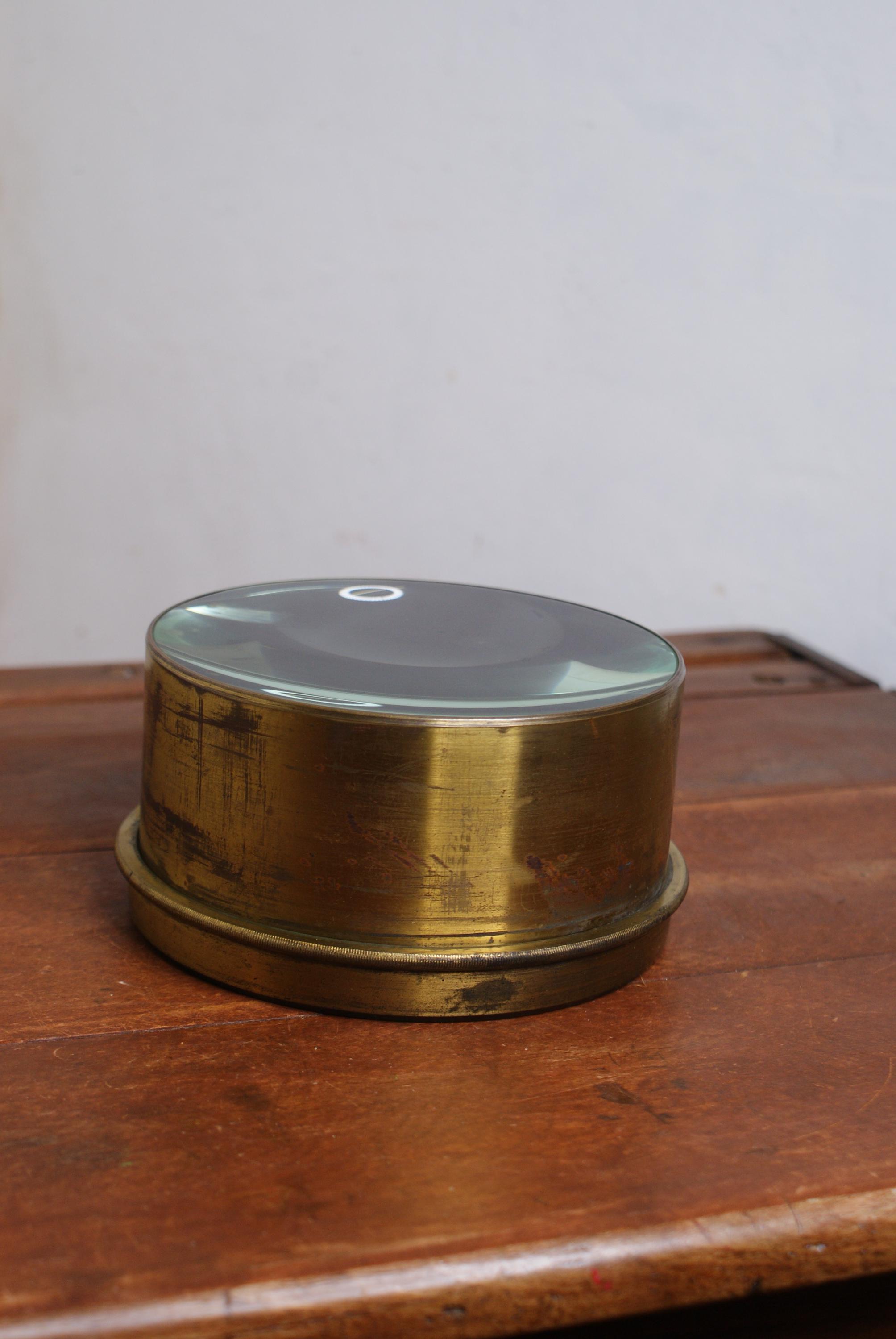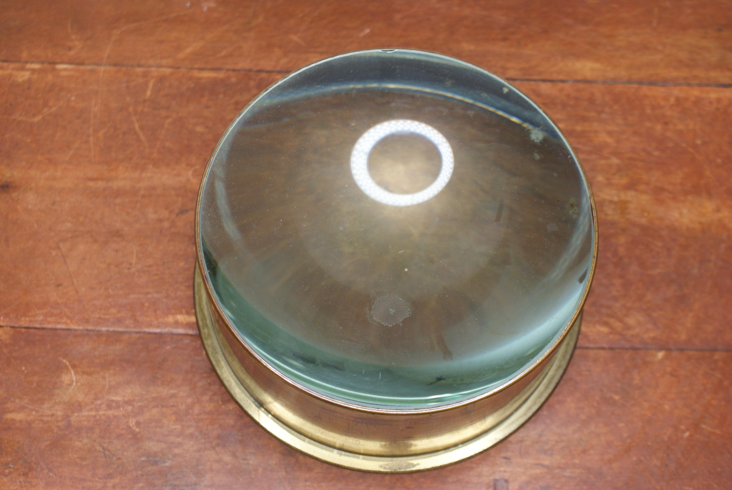 A lovely brass desk top magnifier, this would make a lovely office curio. The brass has not been polished to retain the patina but you could if this is your preference. the glass is in good condition and works as intended.