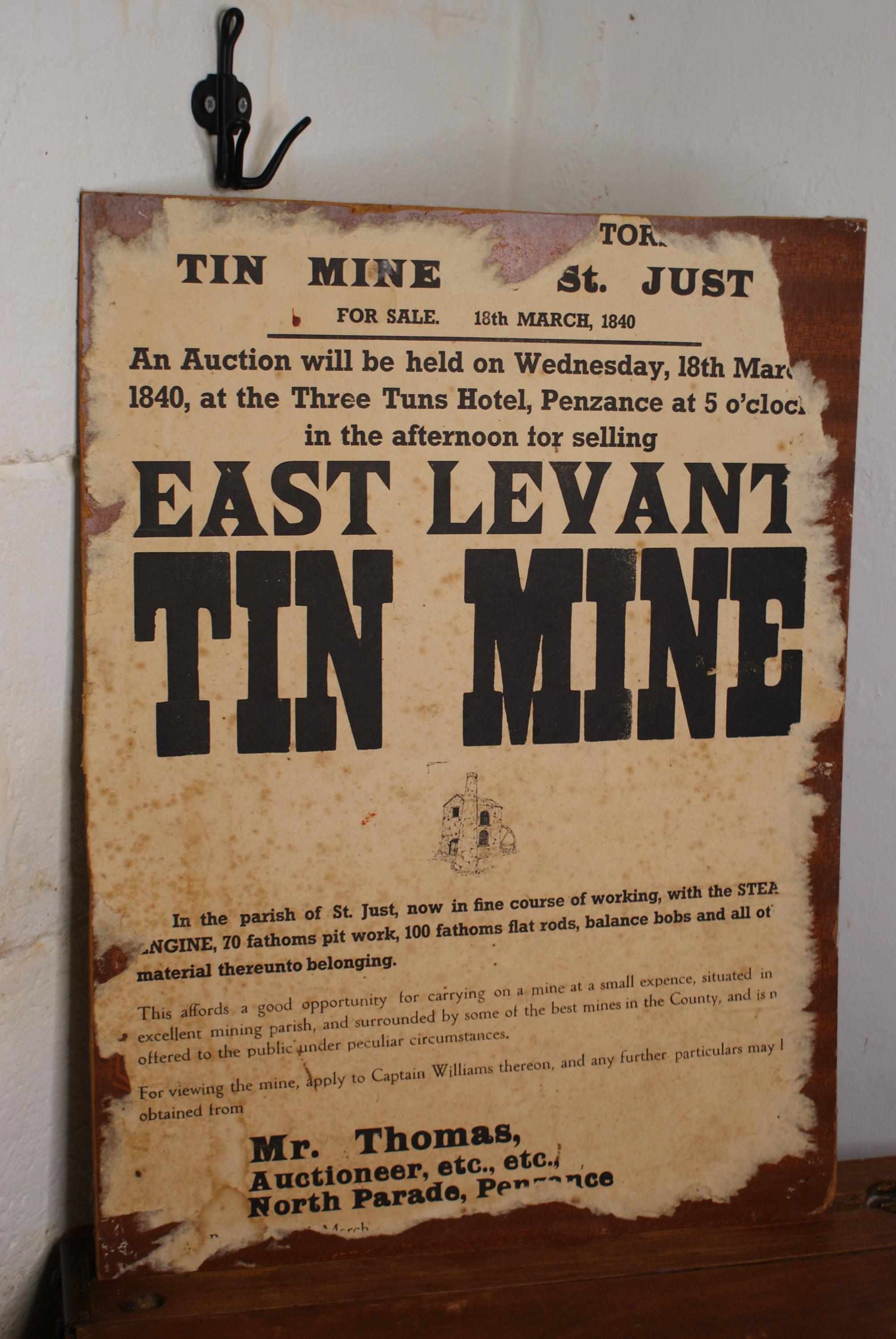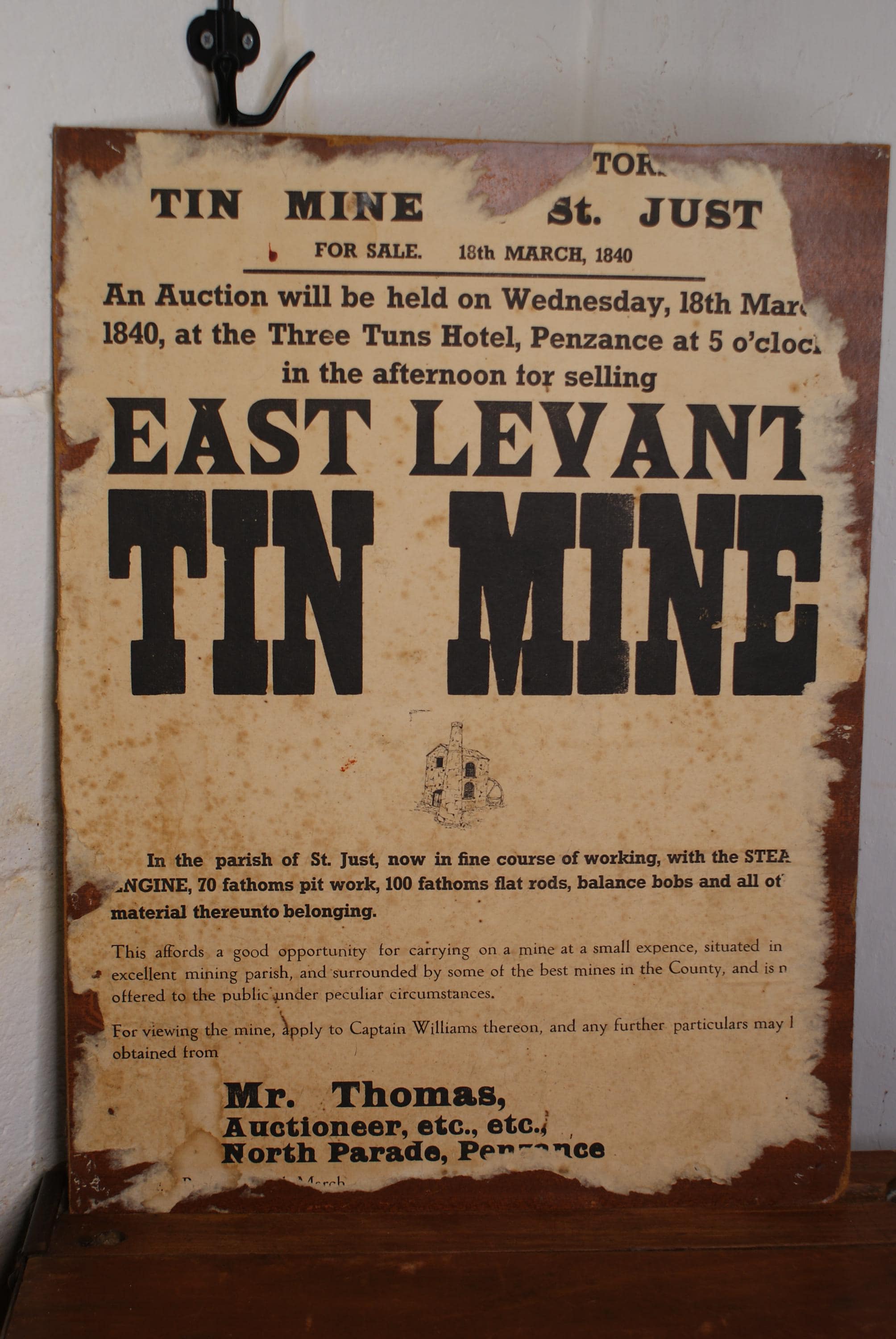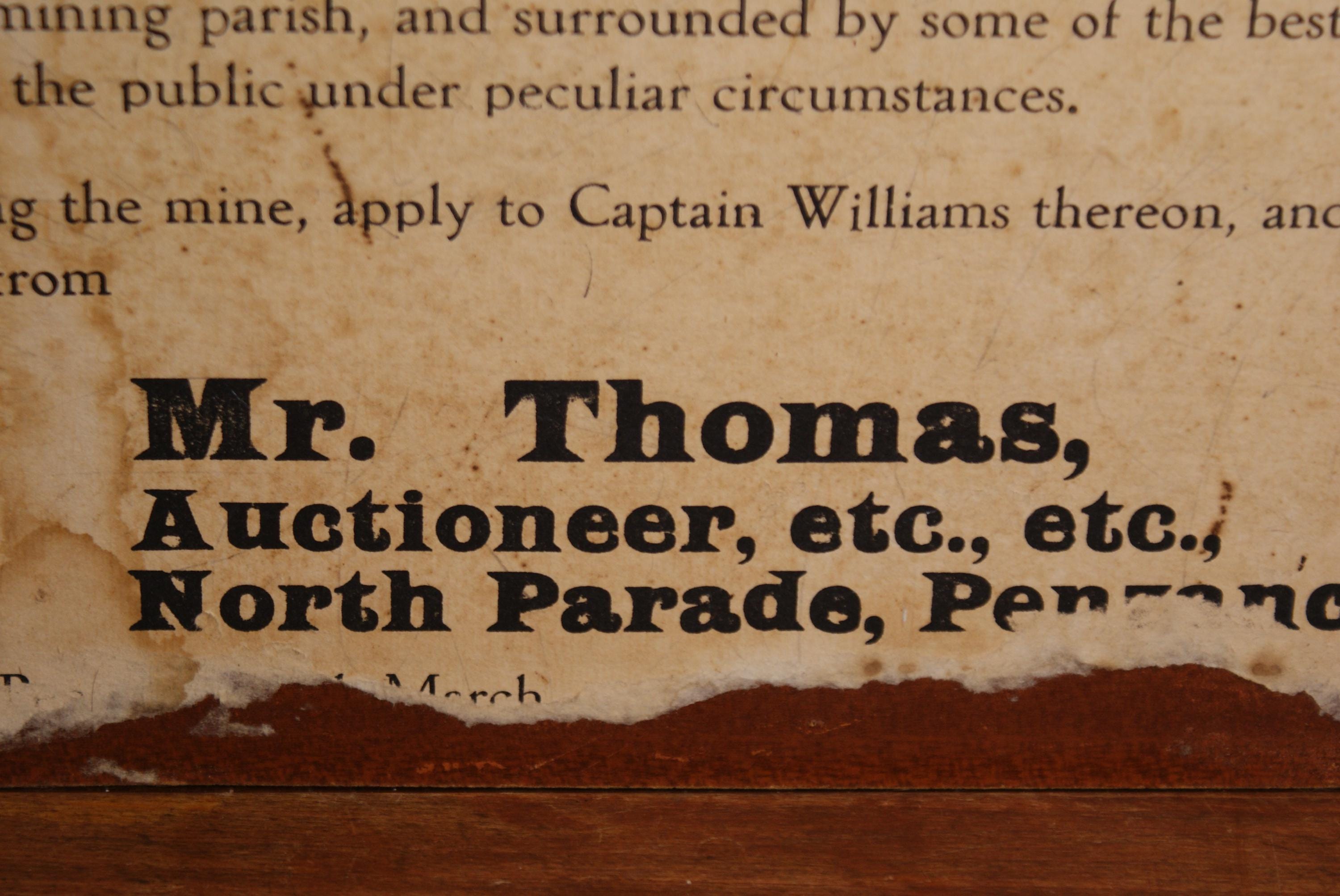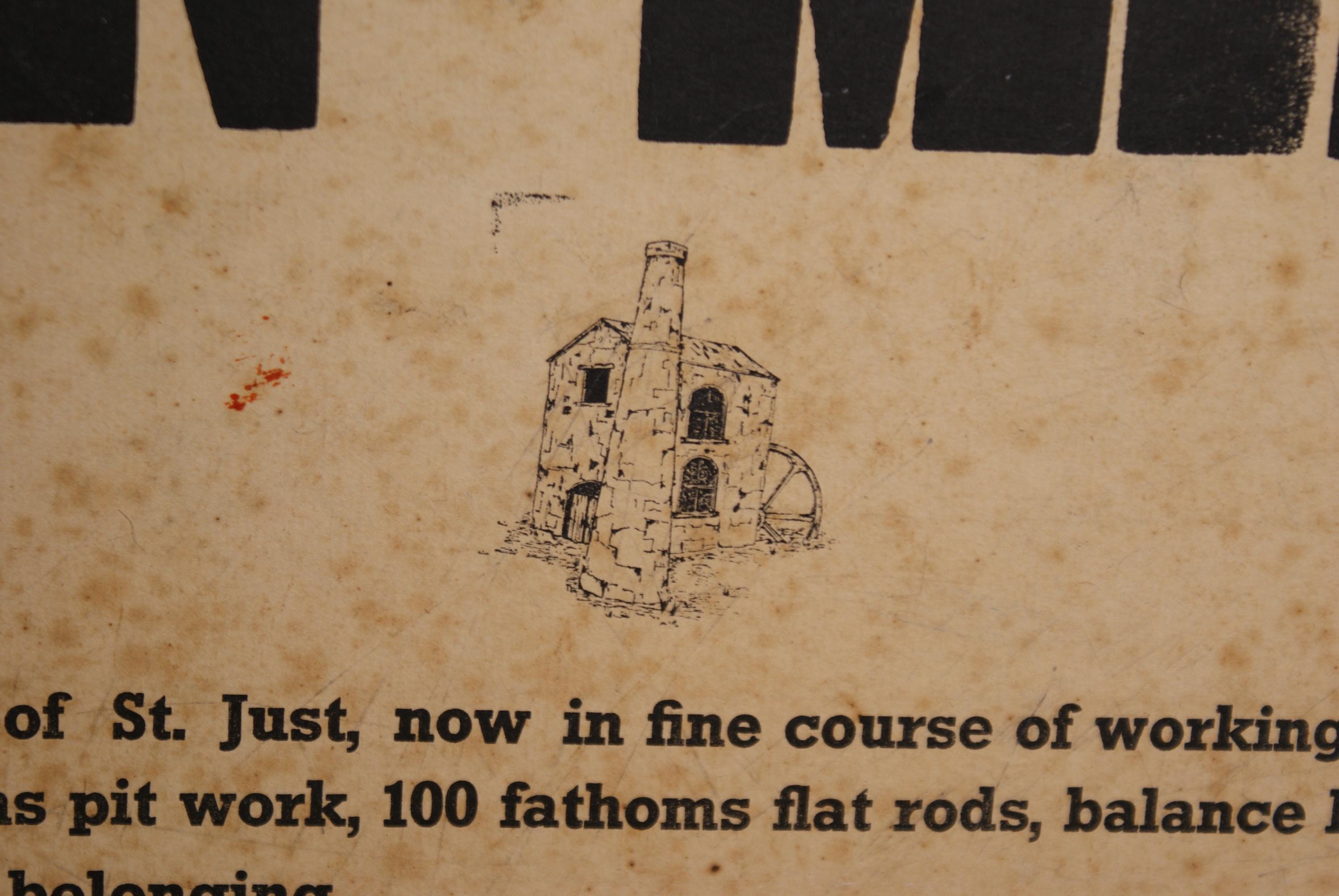 This is a fantastic vintage reproduction for the auction of a Cornish tin mine. This has a fantastic look and some foxing to the poster and mounted on board.