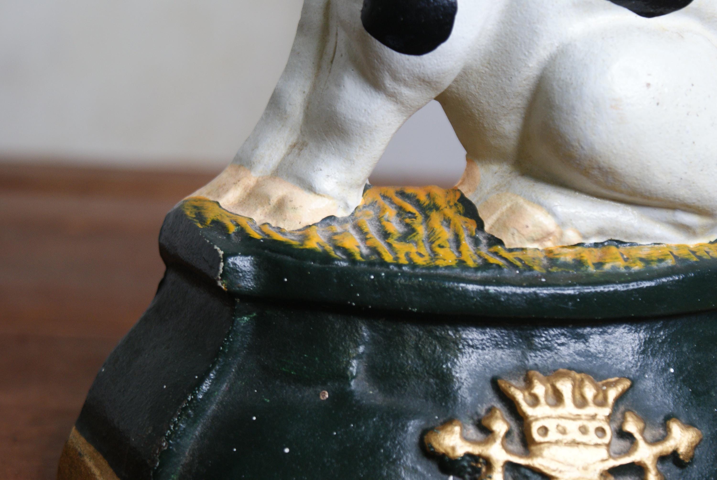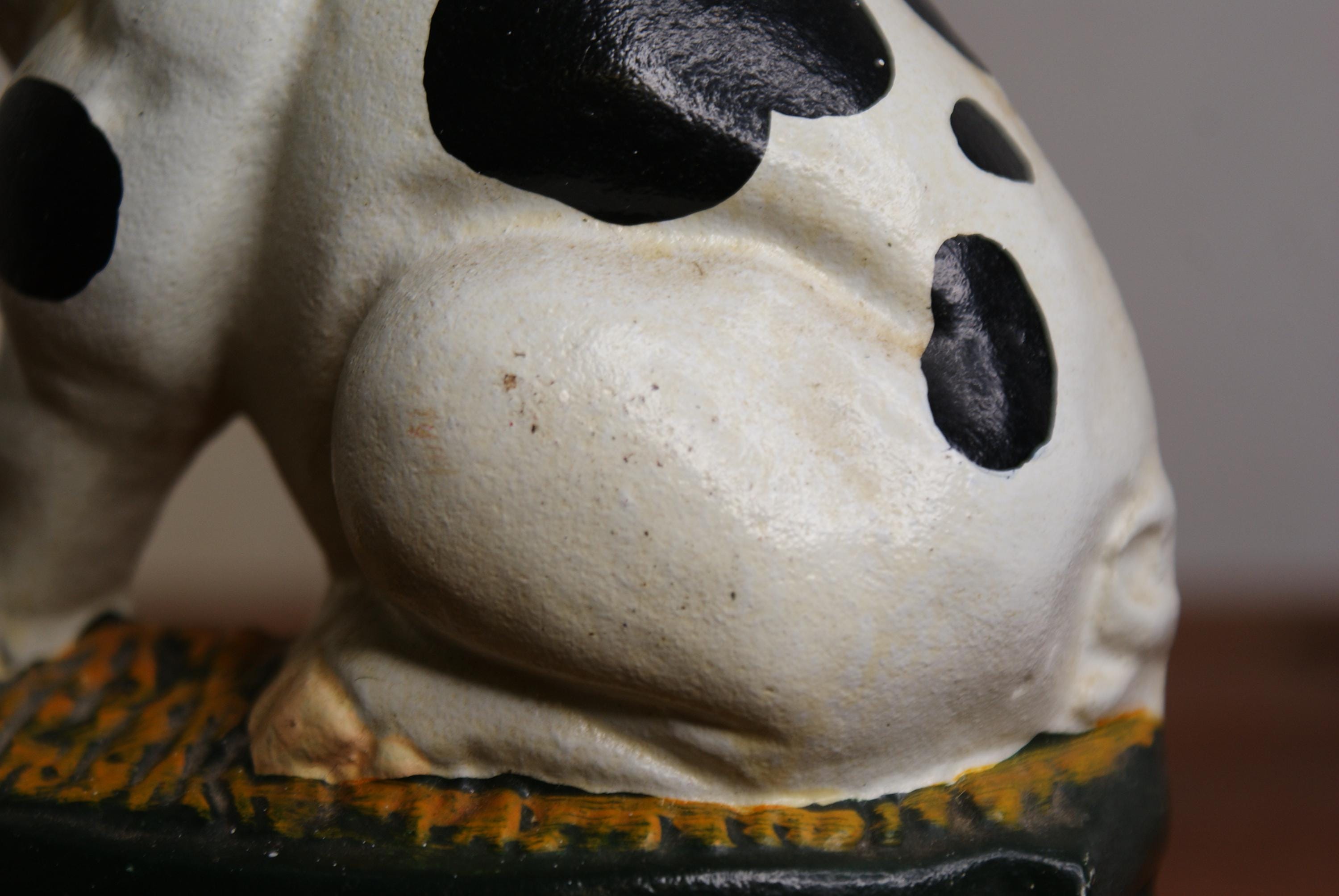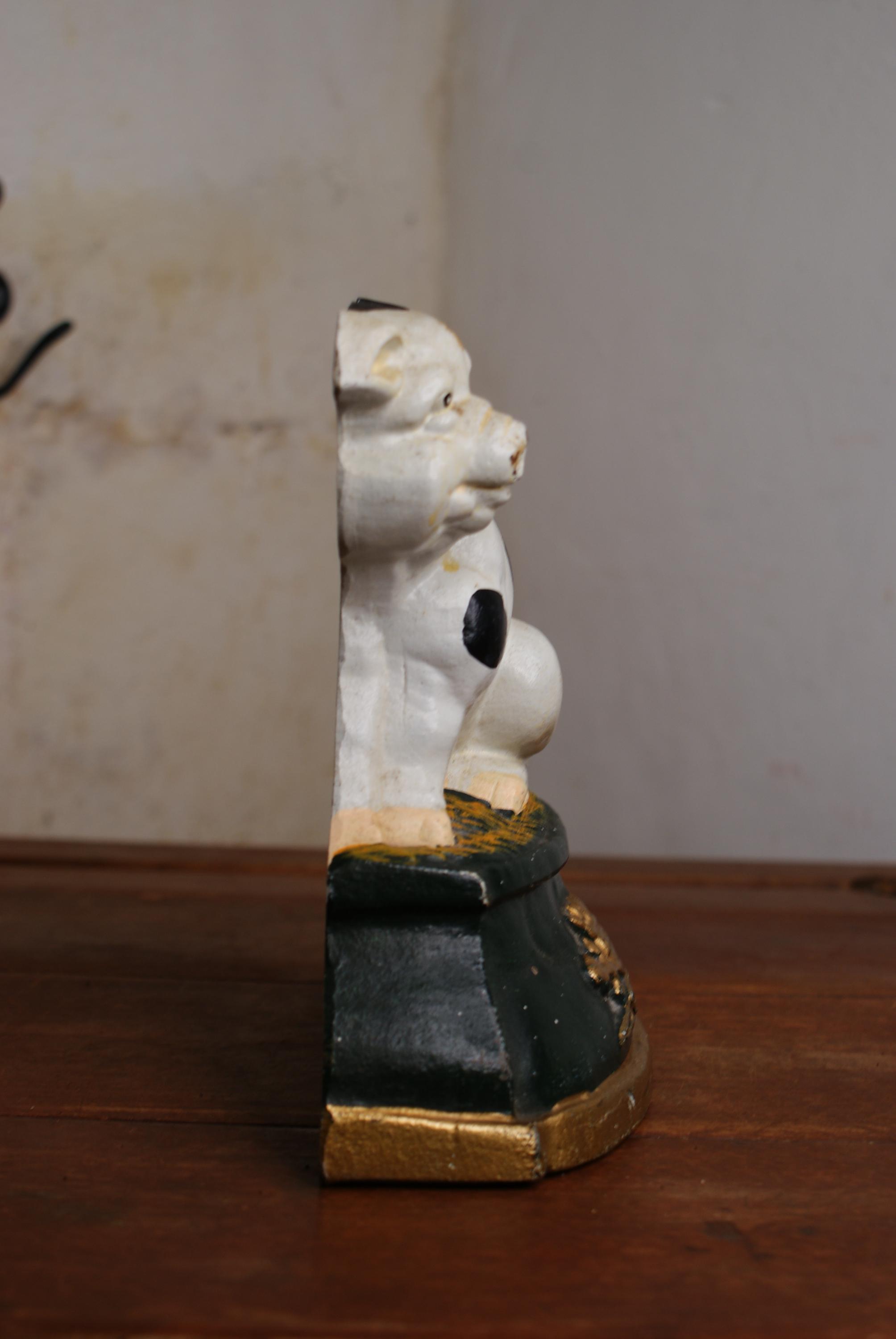 A charming vintage cast iron door stop of a pig. Some light patina to areas.