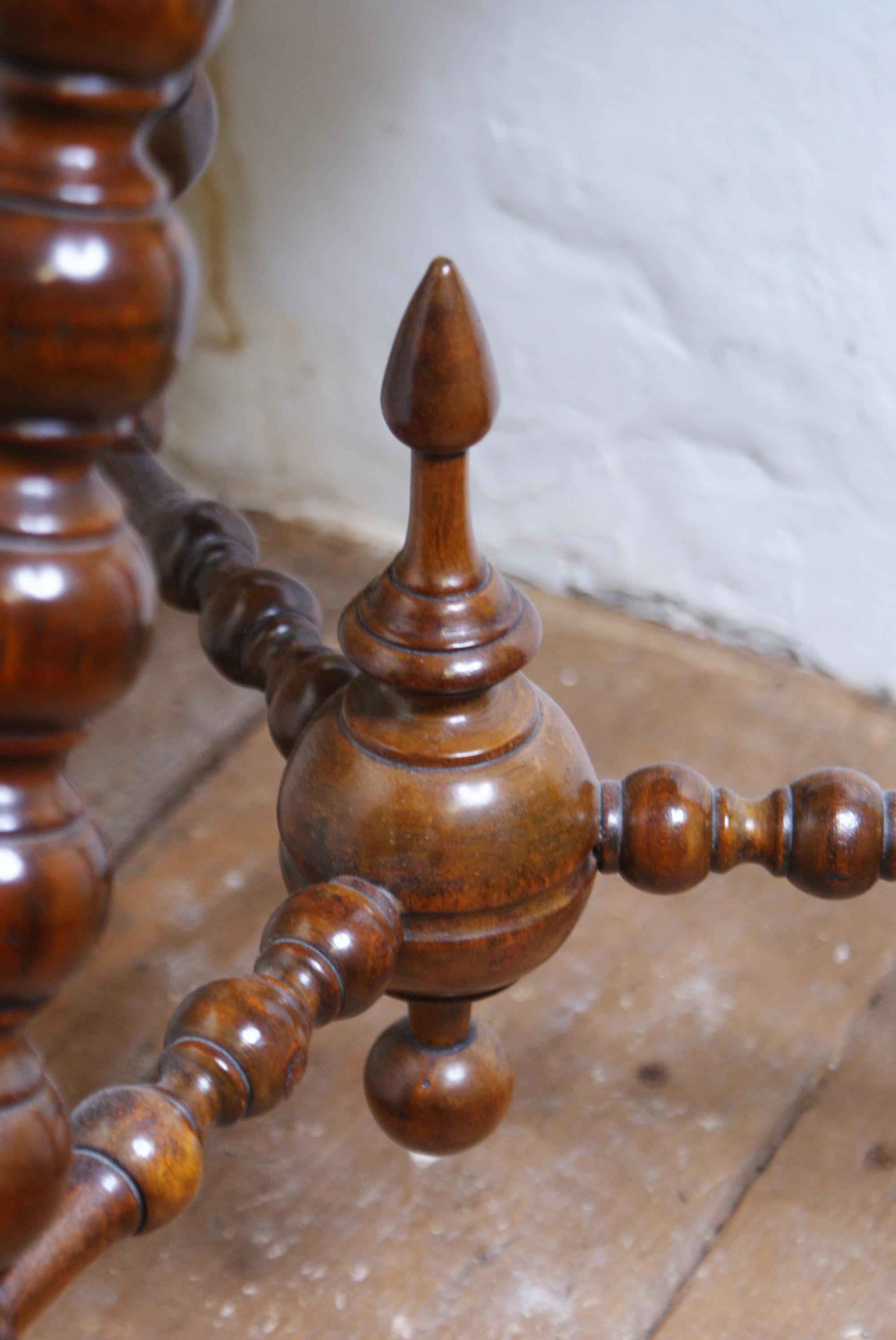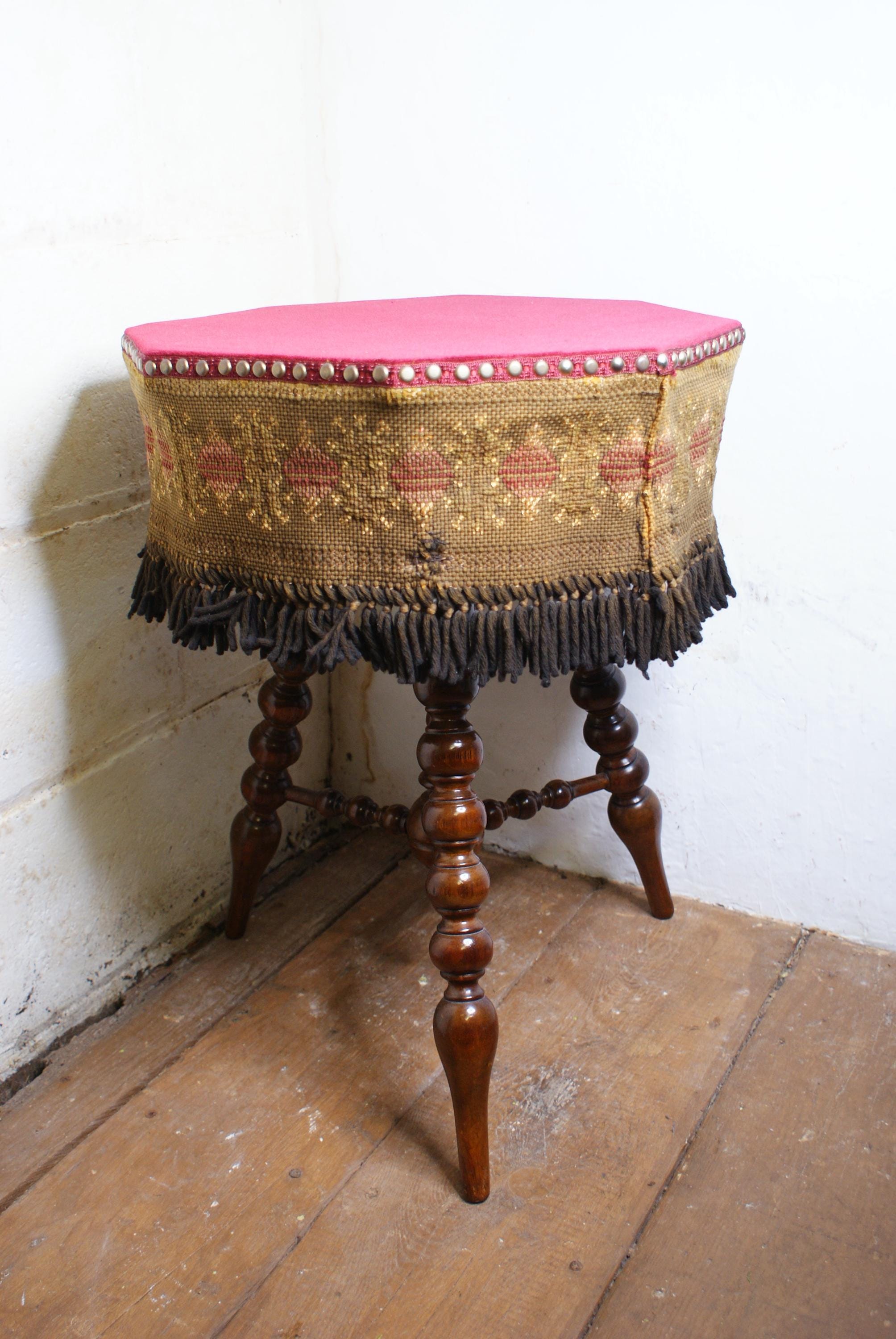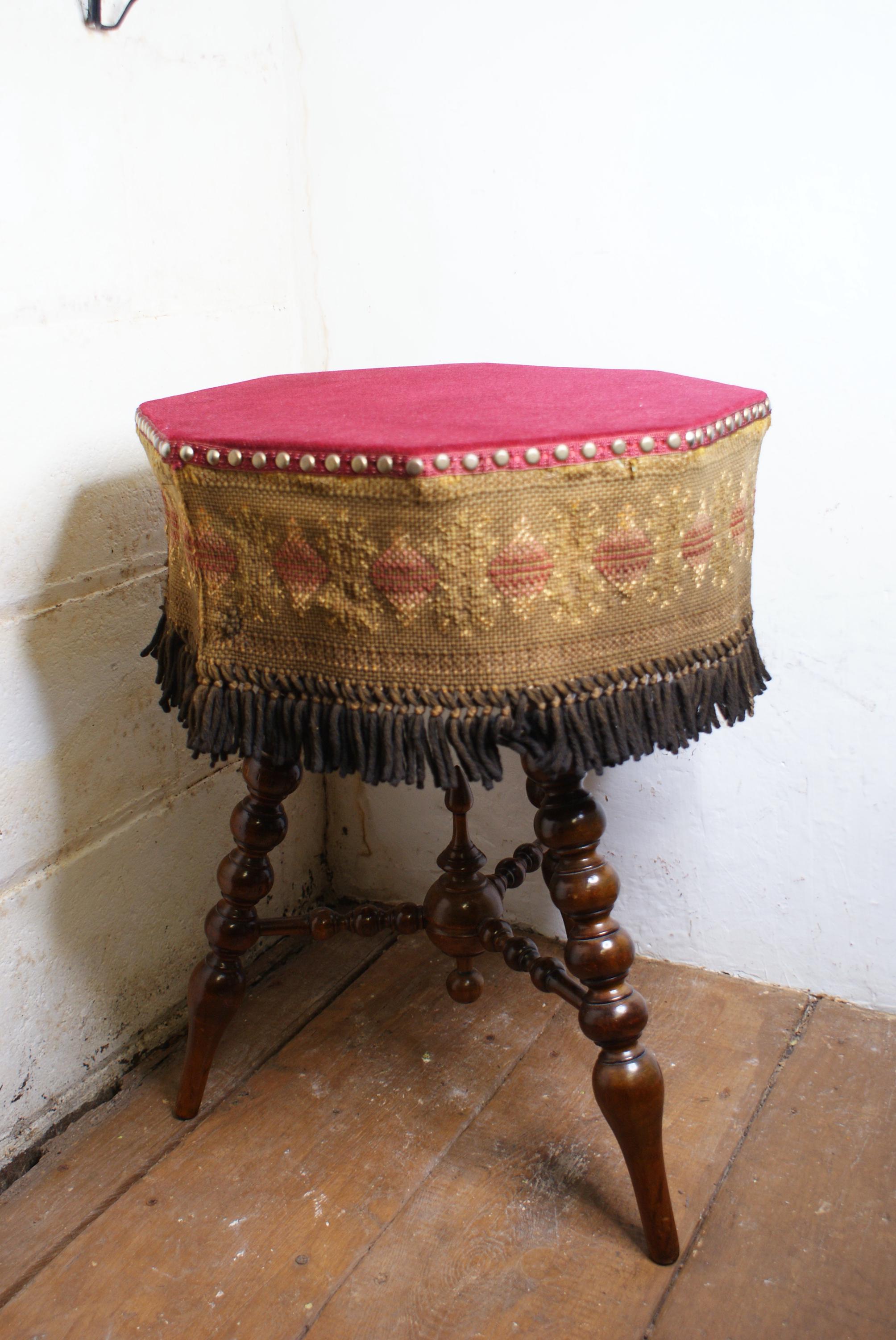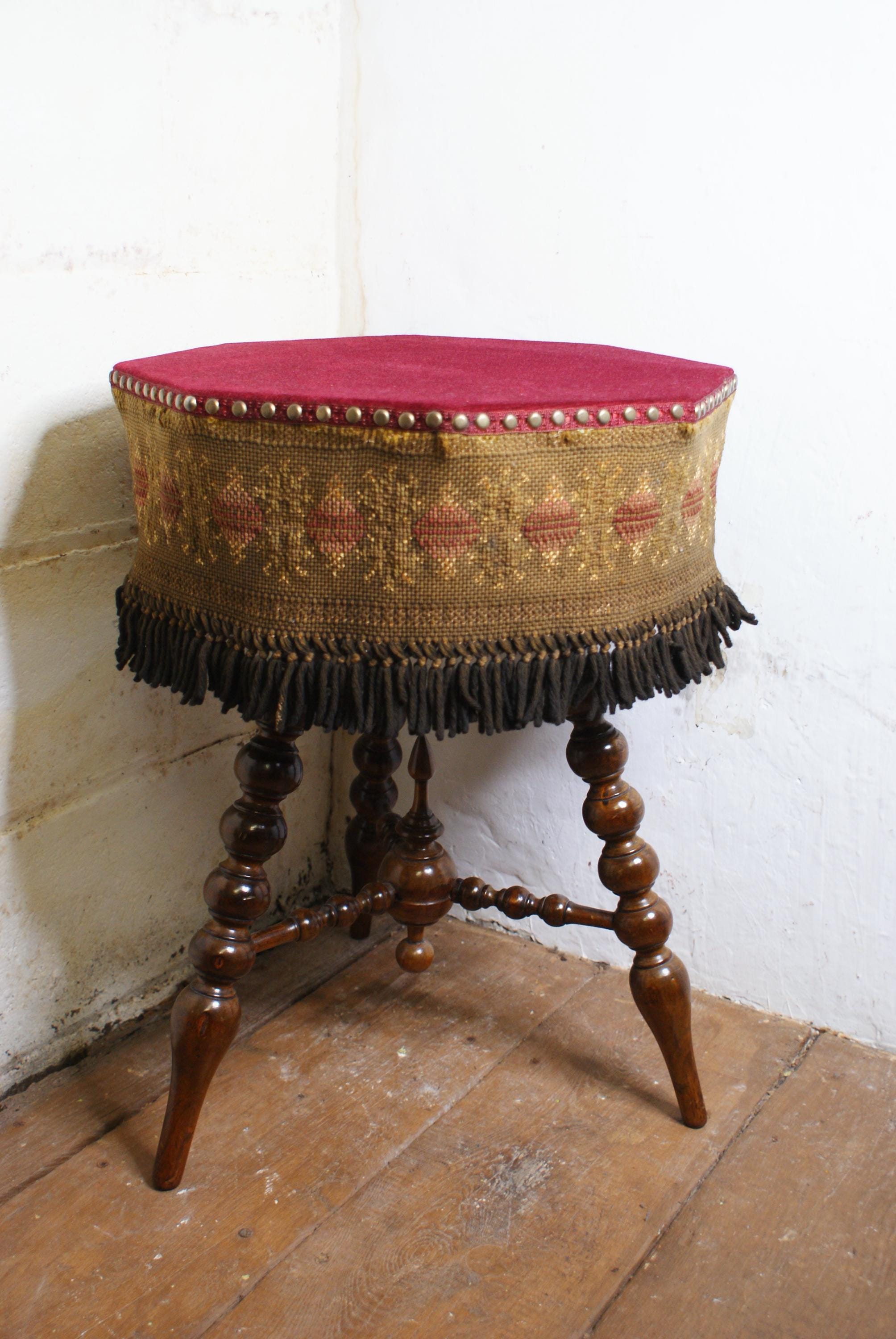A stunning late 19th to early 20th century gypsy table with a red velvet and tassel top. In excellent condition and with stunning bobbin legs. the cloth appears to have been re attached more recently but this cannot be seen when in use.