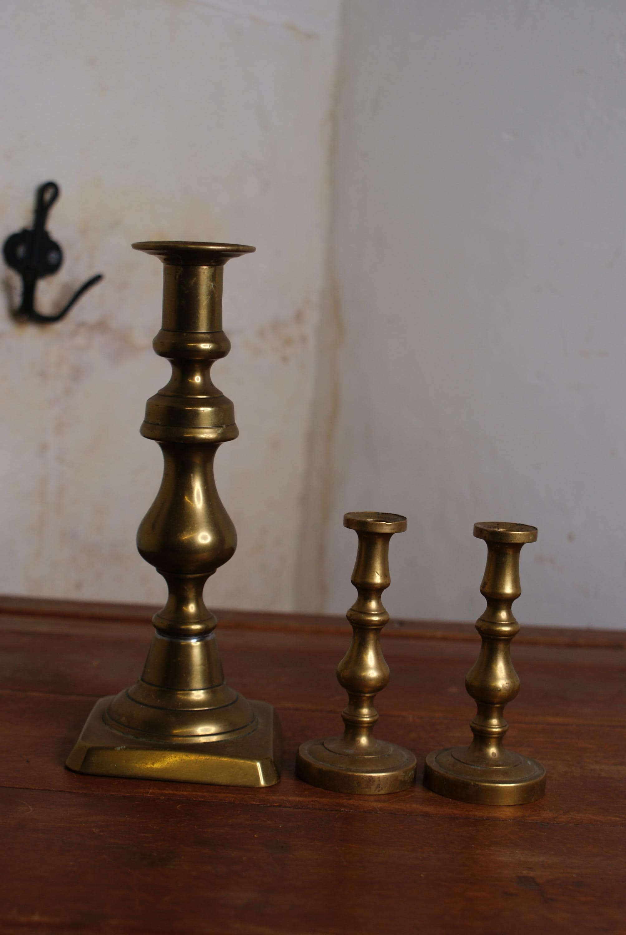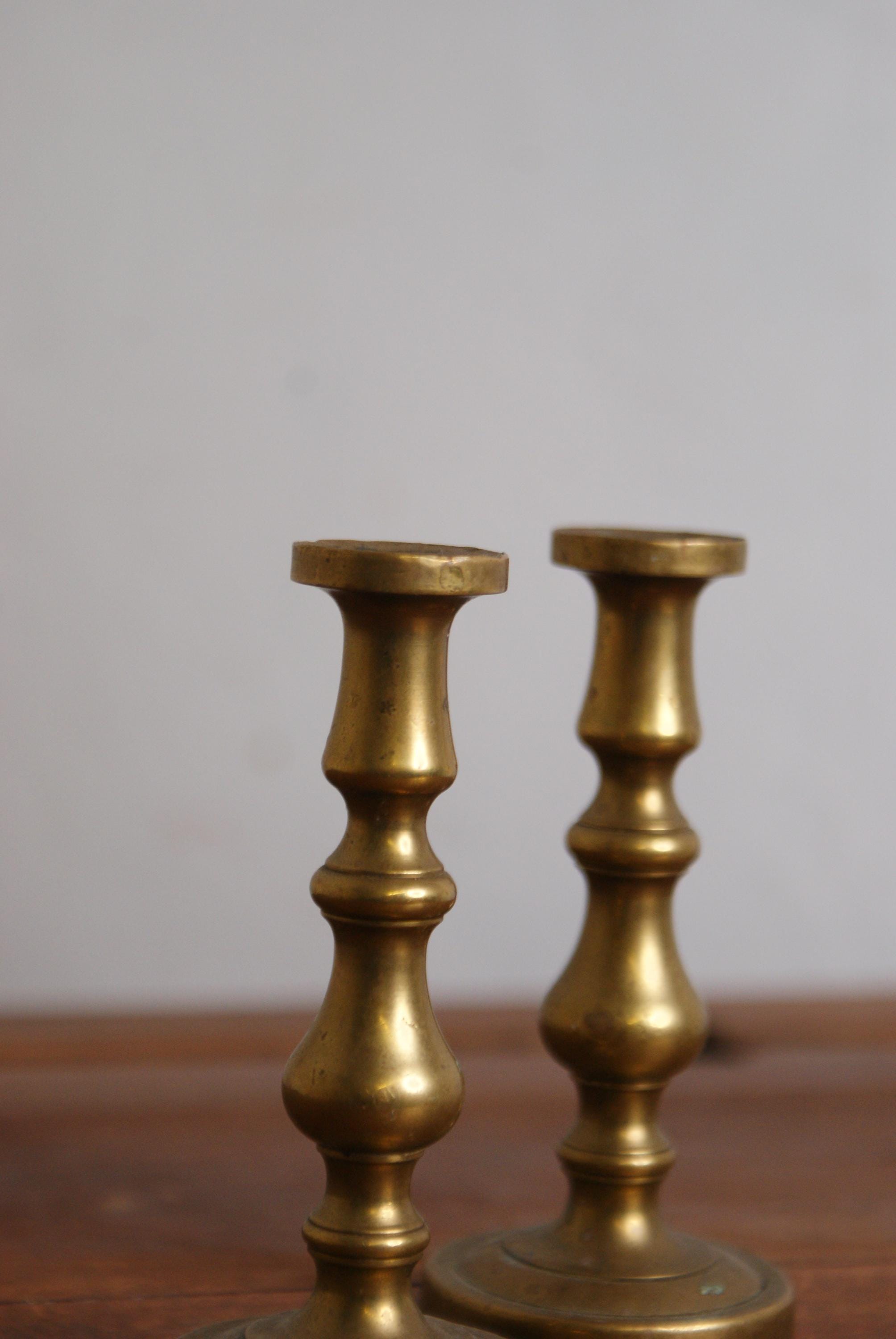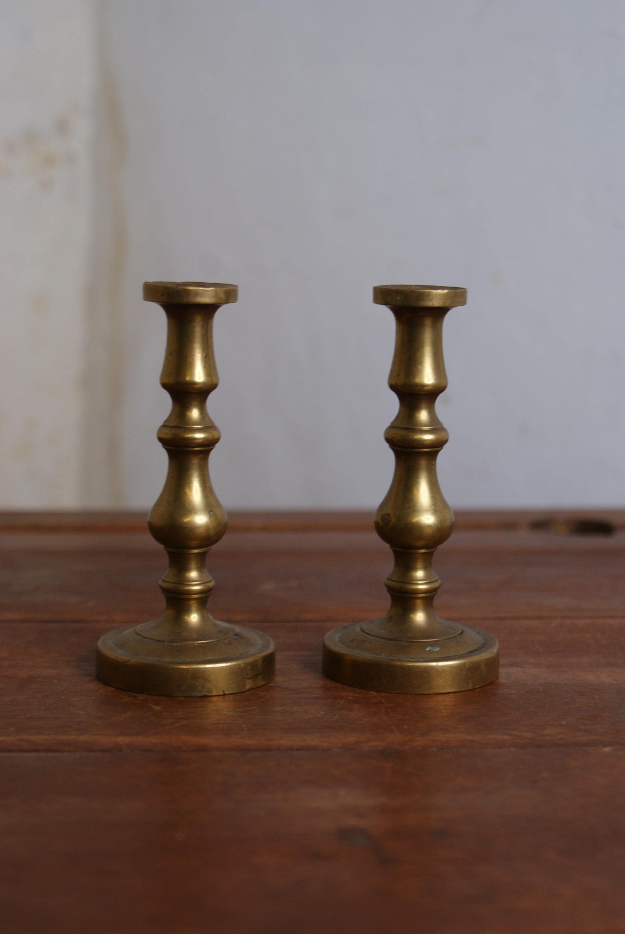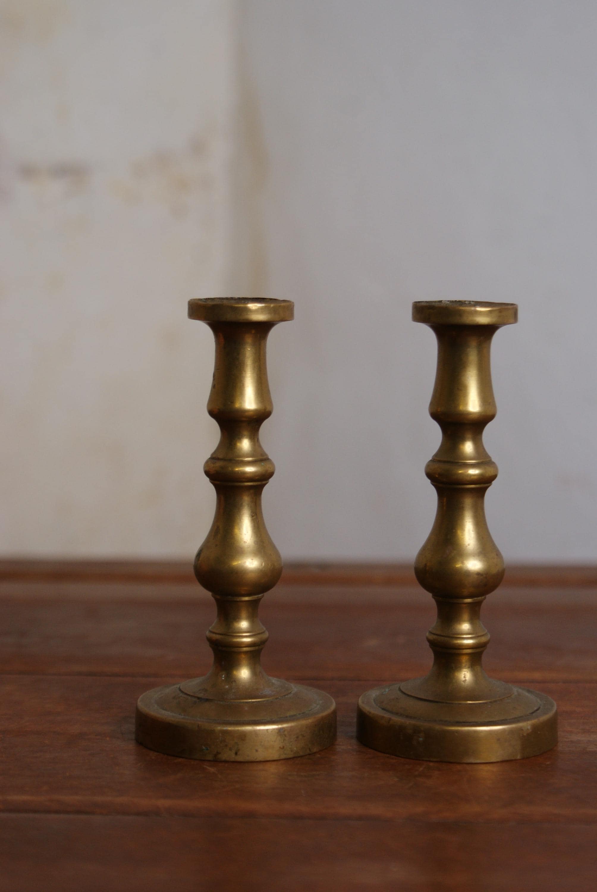 A lovely matching pair of tapersticks. A taperstick is a small, miniature candlestick designed to hold a thin taper candle, which was used for tasks like melting sealing wax, lighting pipes, or lighting larger candles, not for general illumination. To have a matching pair is quite rare as most people only required one and the other was lost or melted down. I've pictured these next to a regular candlestick for a better size guide. good condition with some age related imperfections.