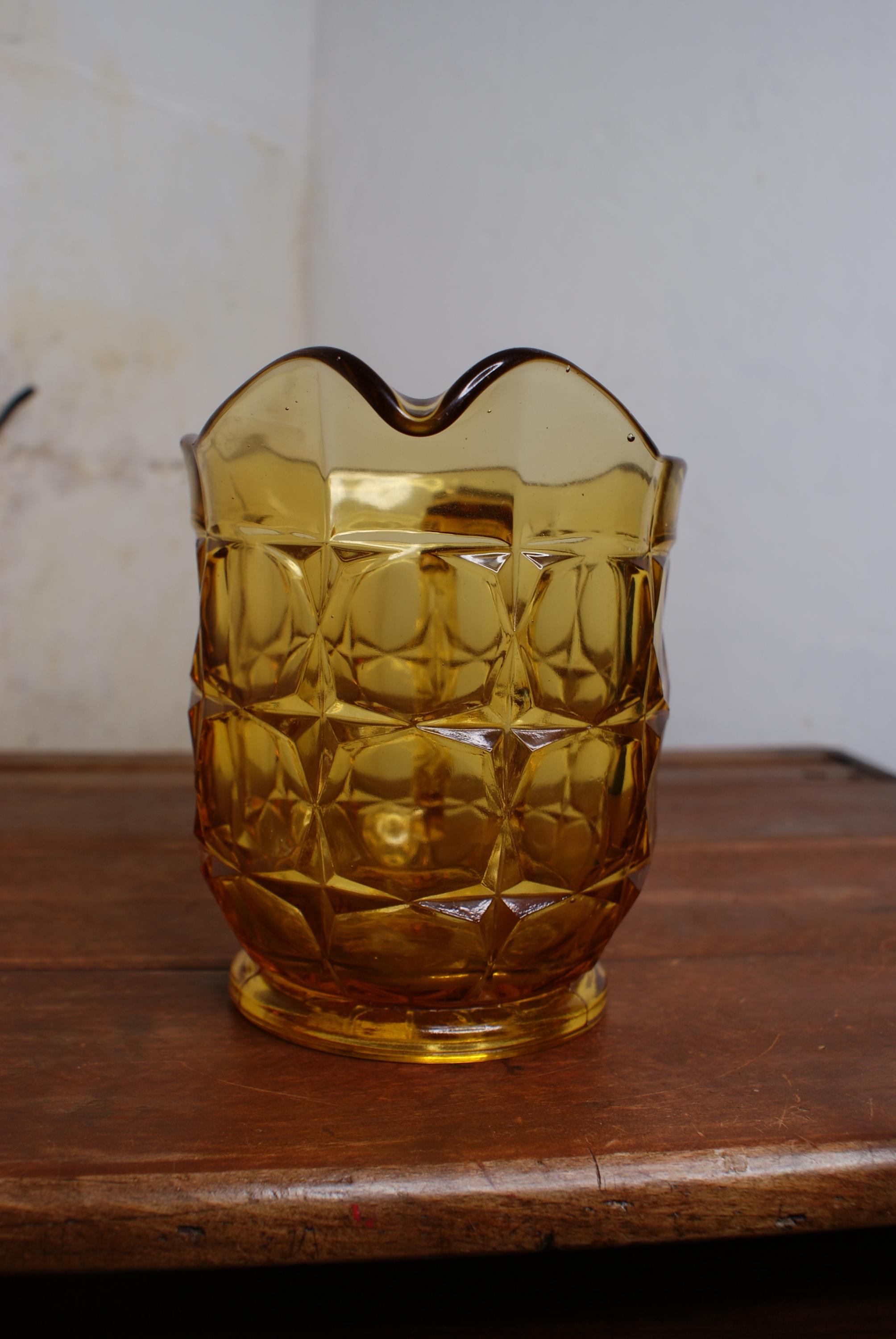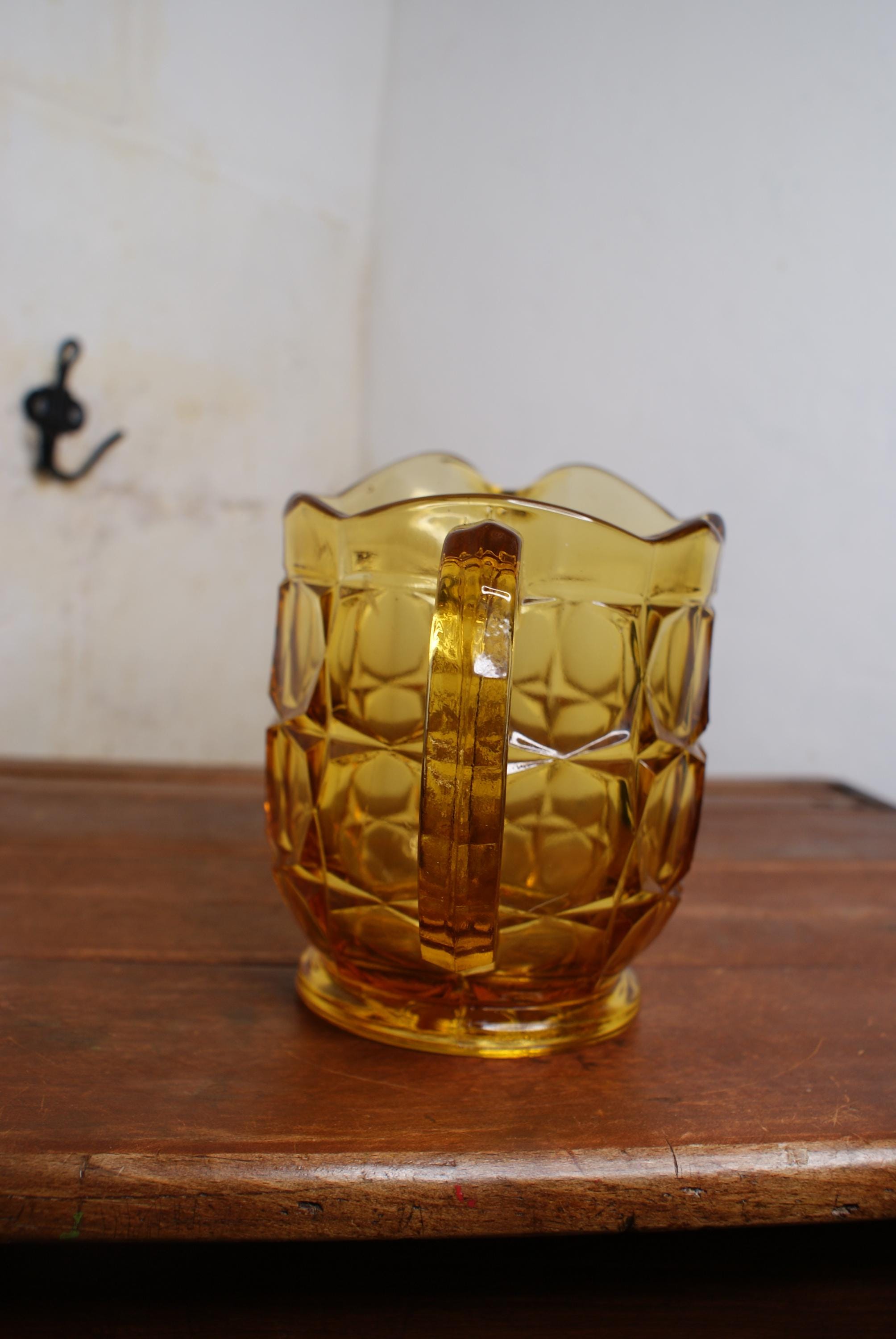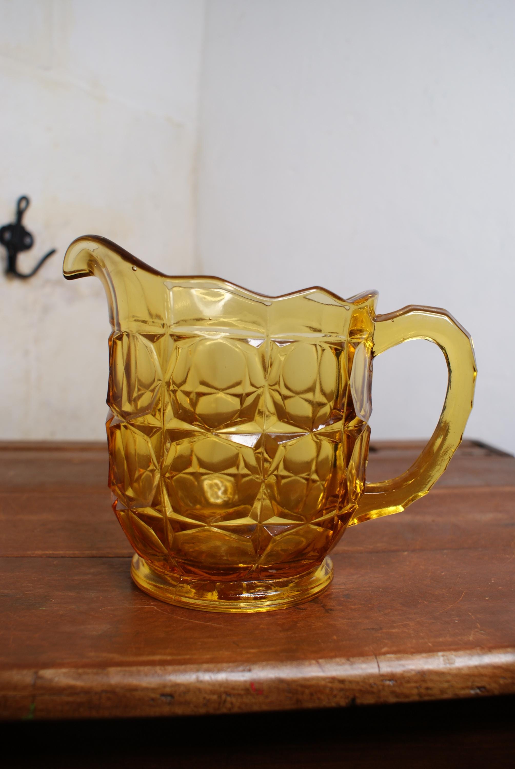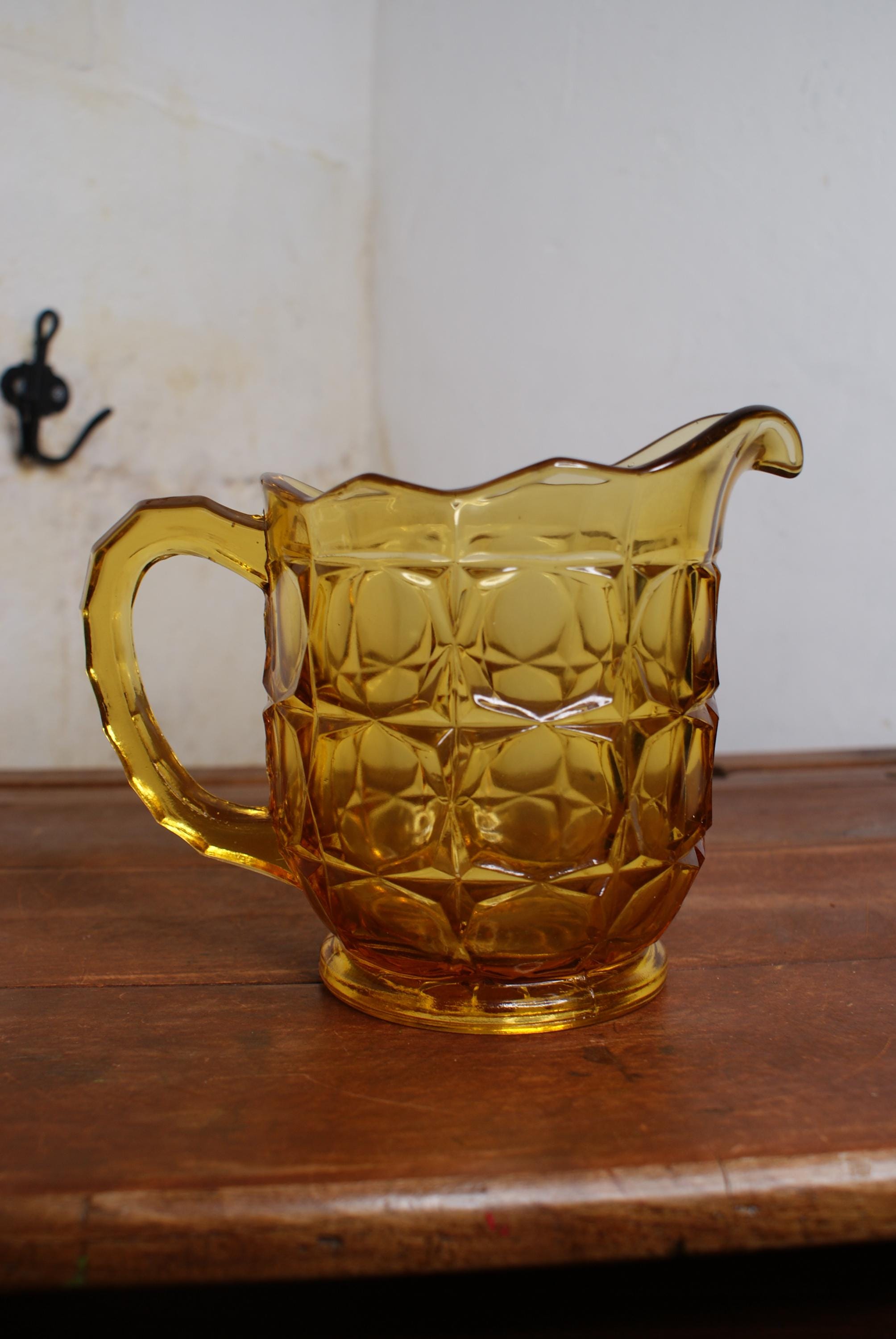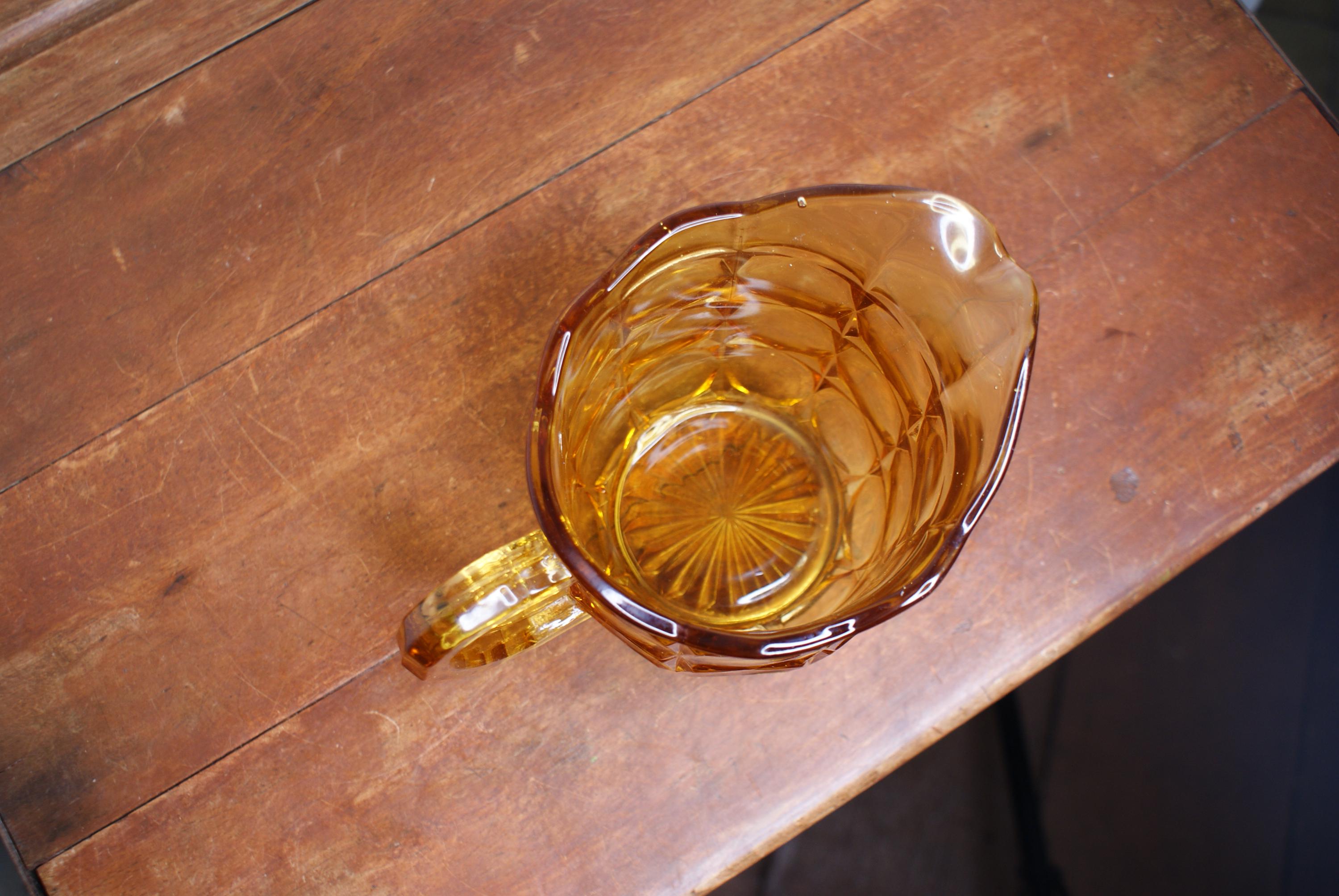 Lovely amber glass pitcher circa 1930's. In excellent condition with no chips or cracks.
