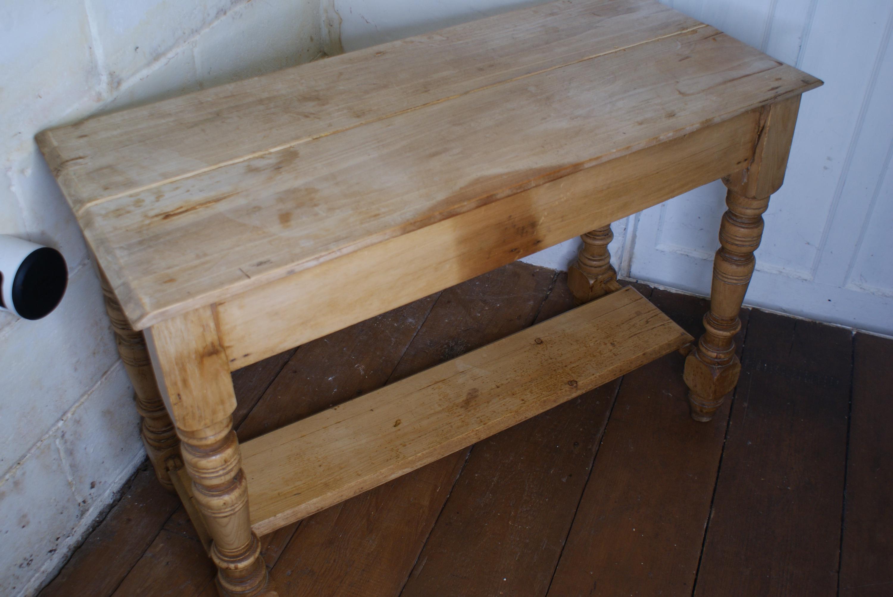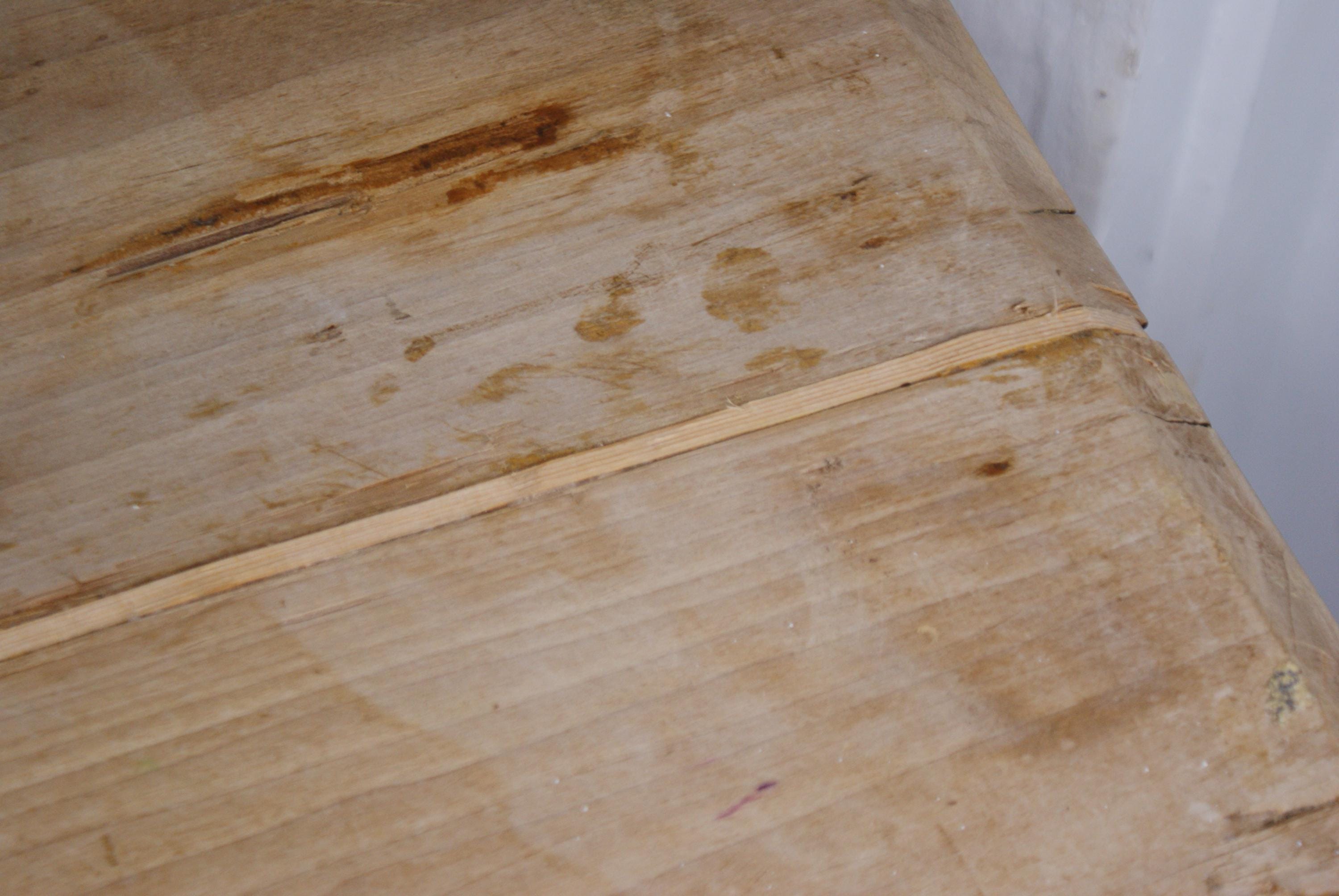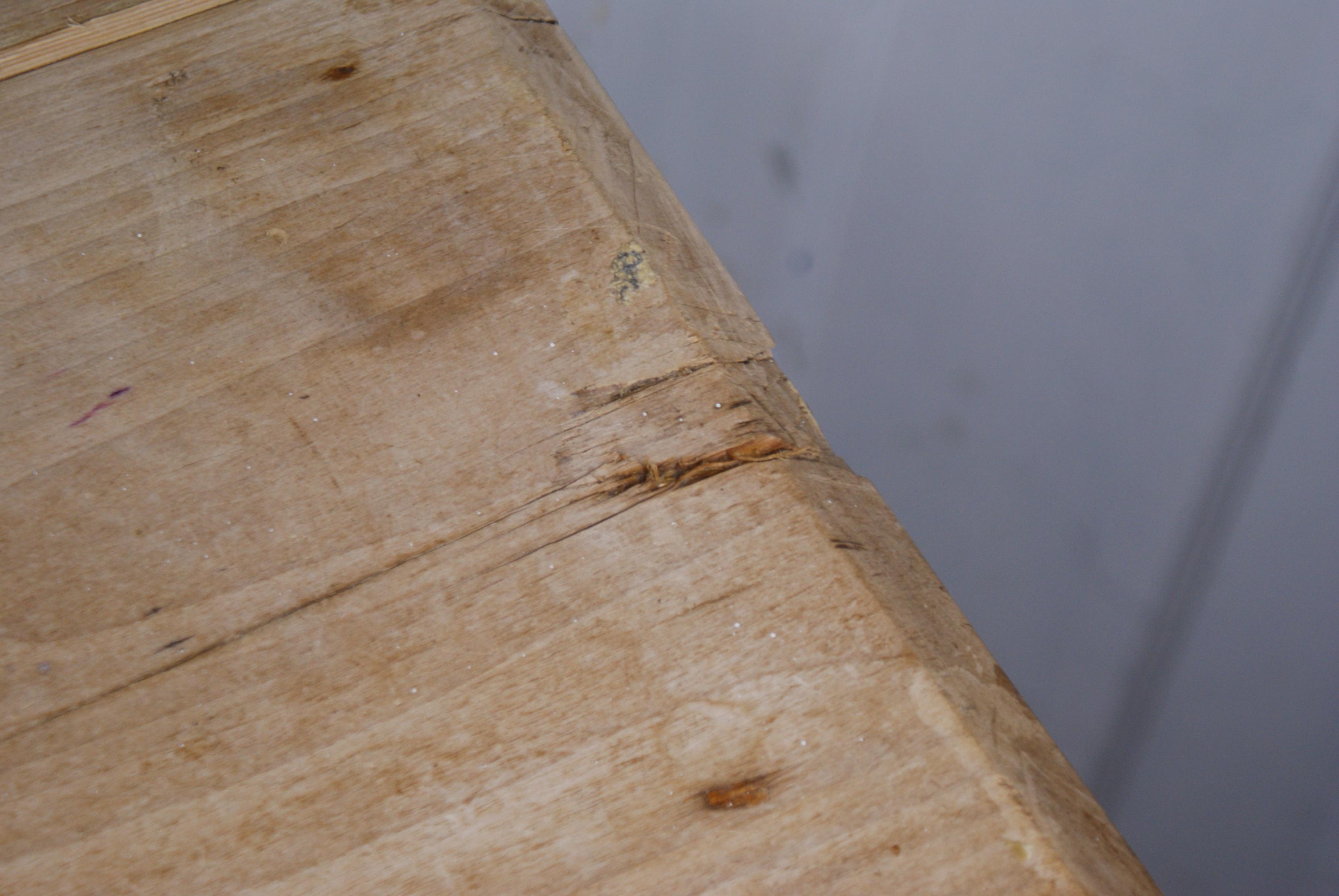 A fantastic rustic pine table, this is a lovely piece of rustic furniture. This has been a well used piece of functional furniture over many decades and shows signs of age and use, there is a very crude repair down the centre but I think this adds to the charm of this piece. some marks, stains and chips in line with age and heavy usage.