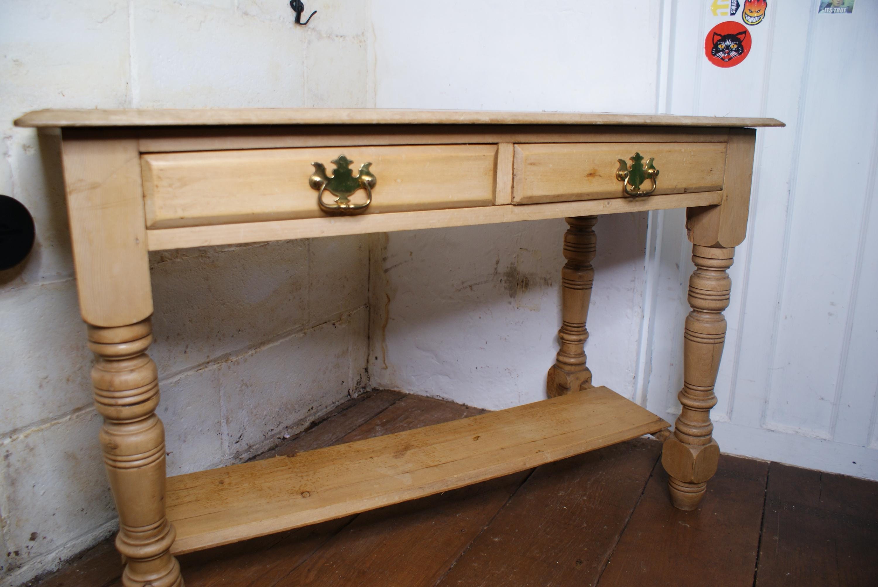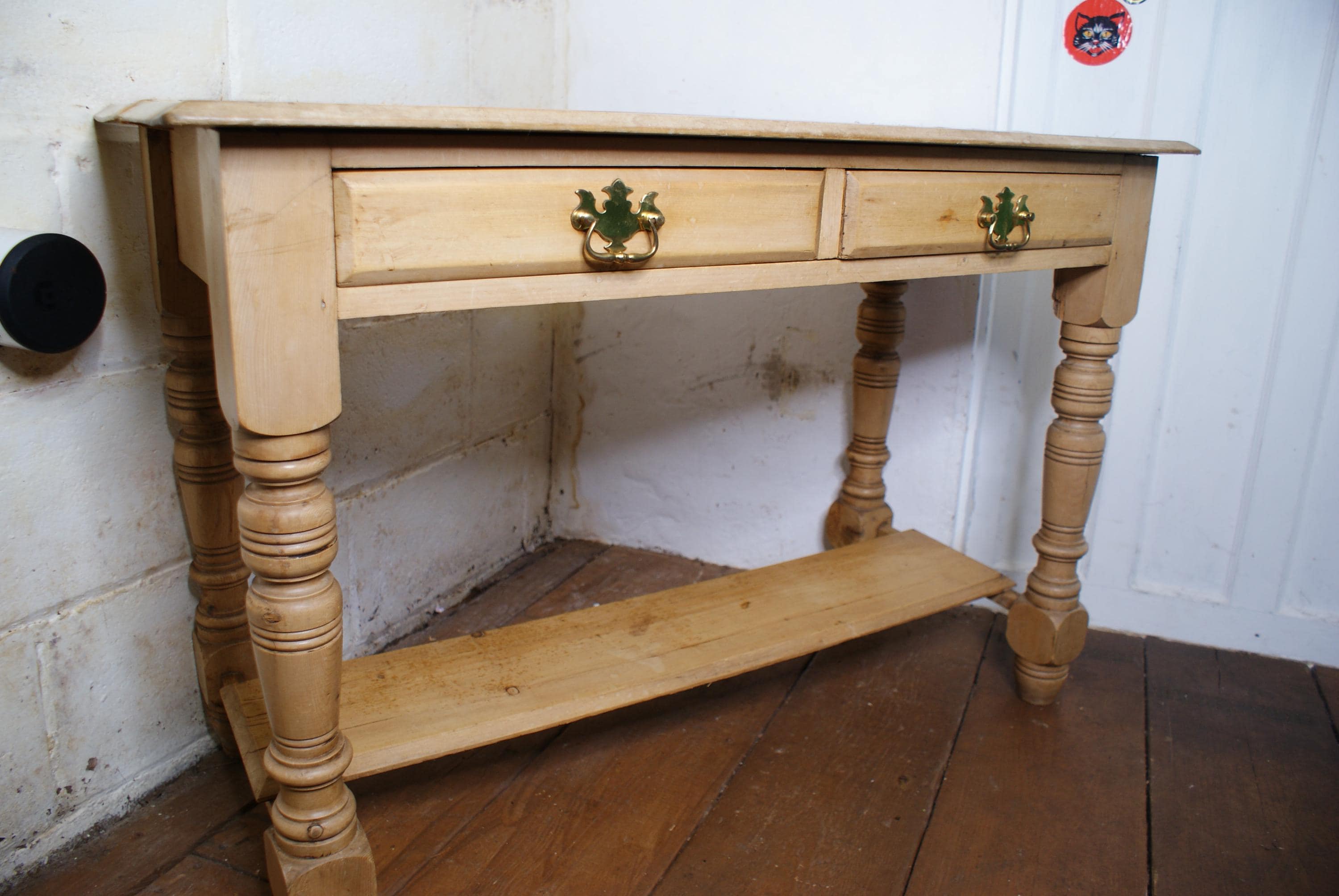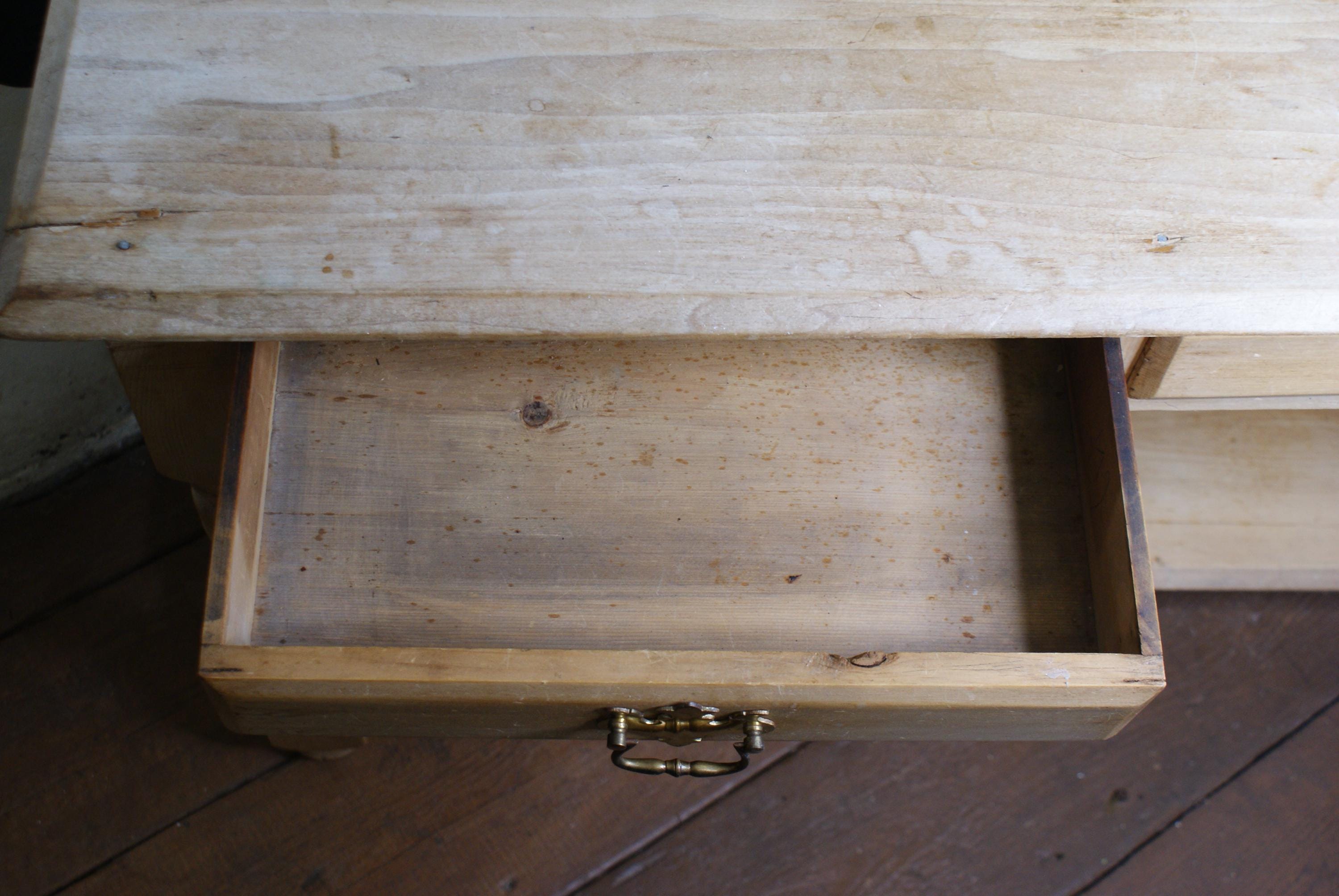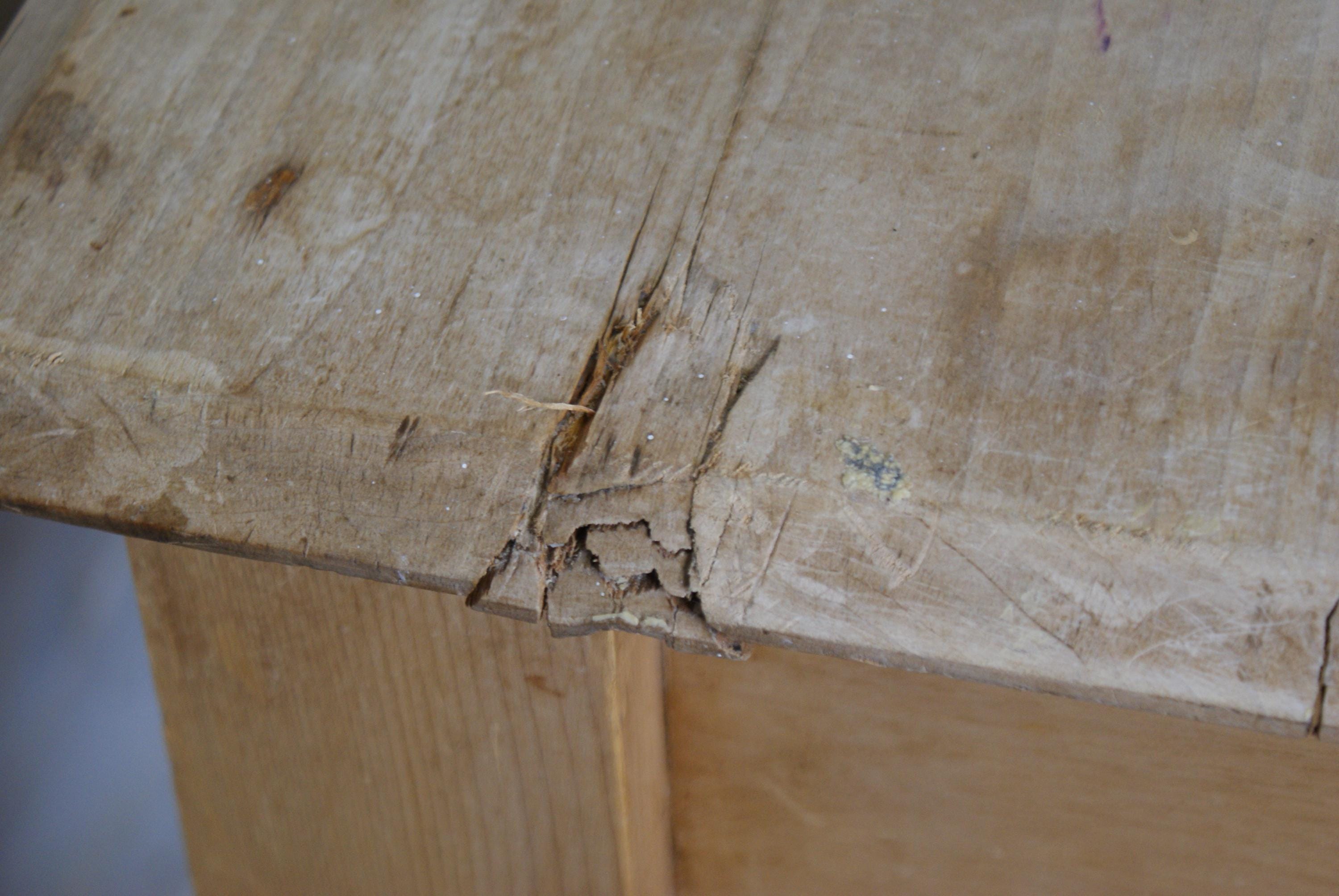 A fantastic rustic pine table, this is a lovely piece of rustic furniture. This has been a well used piece of functional furniture over many decades and shows signs of age and use, there is a very crude repair down the centre but I think this adds to the charm of this piece. some marks, stains and chips in line with age and heavy usage.