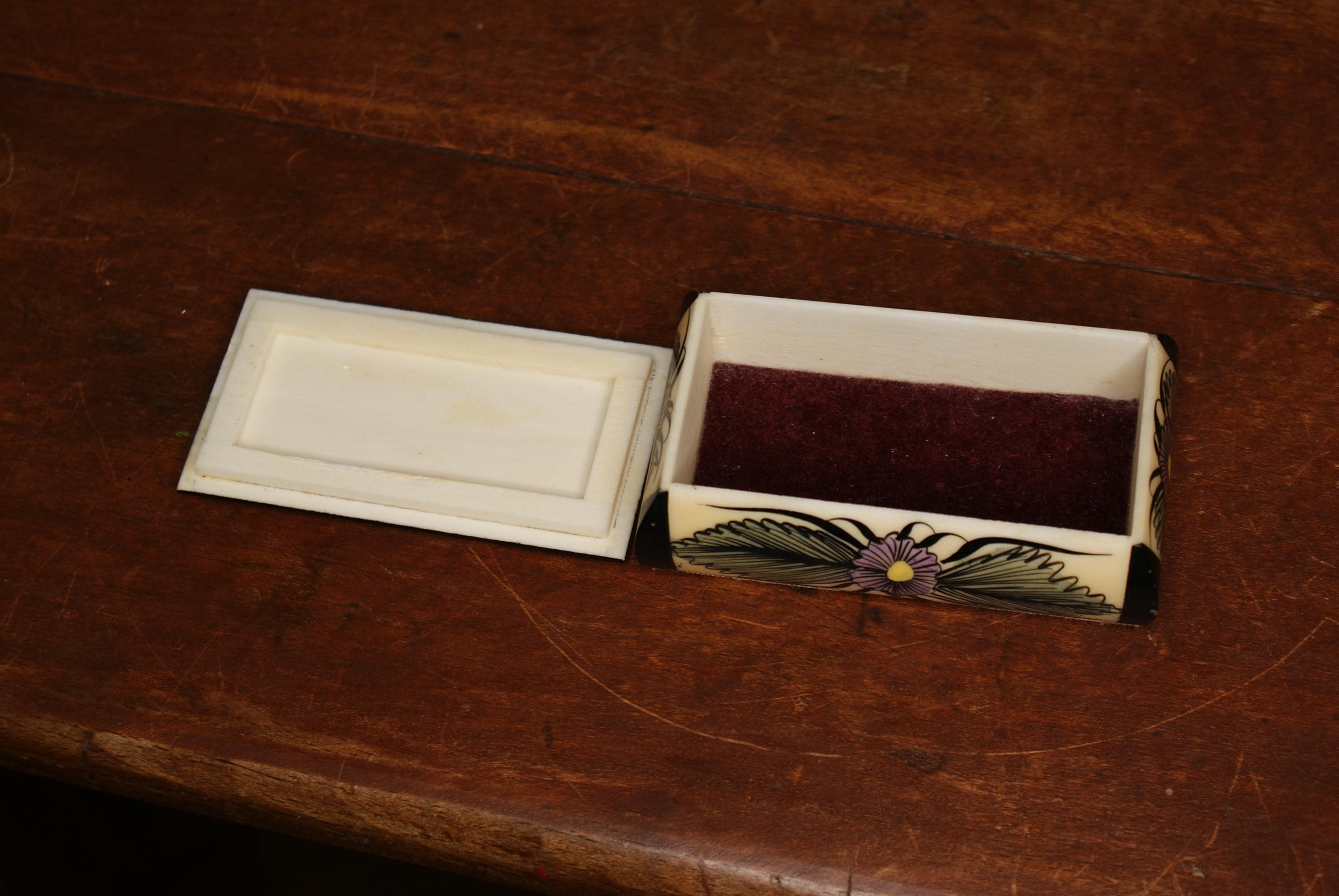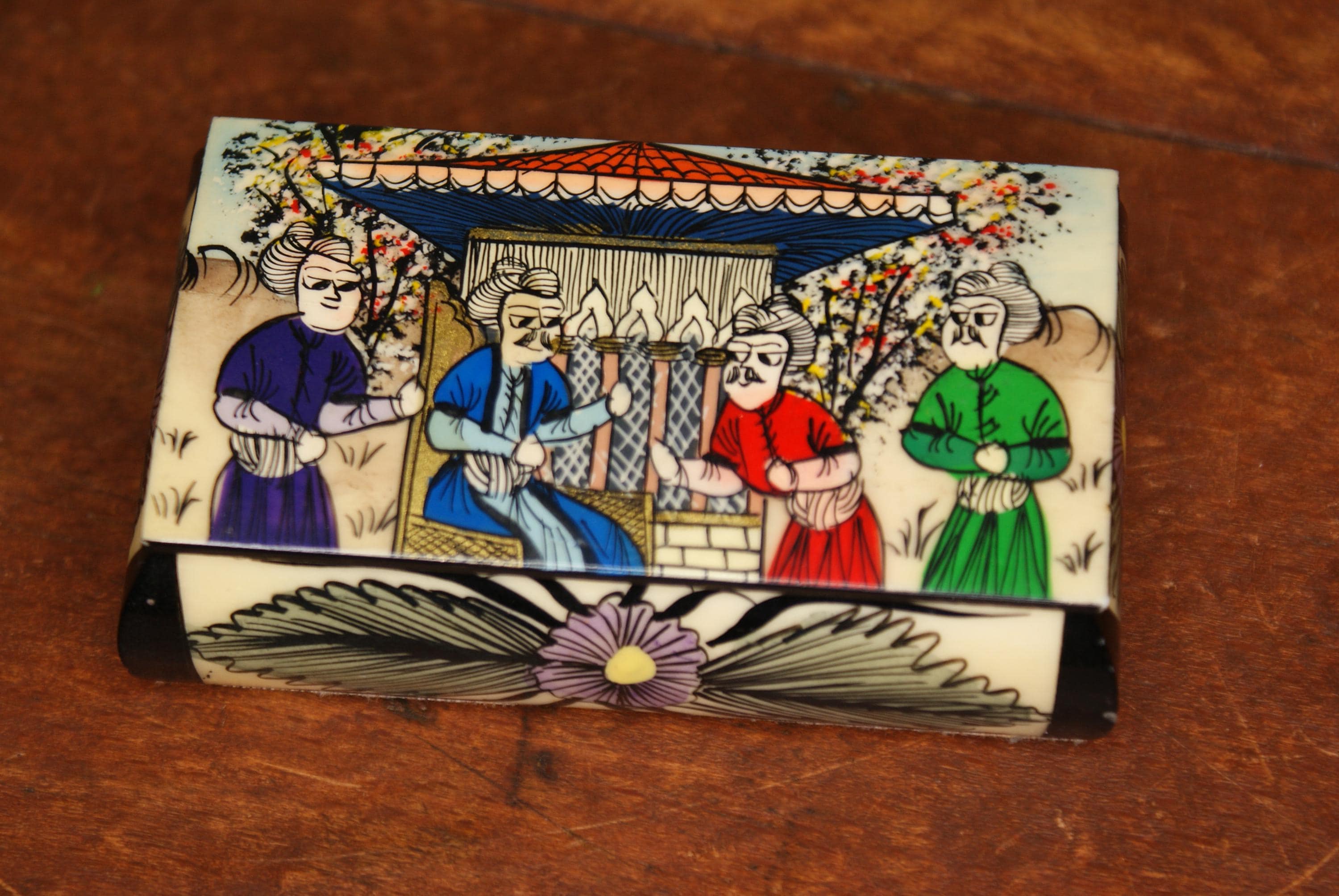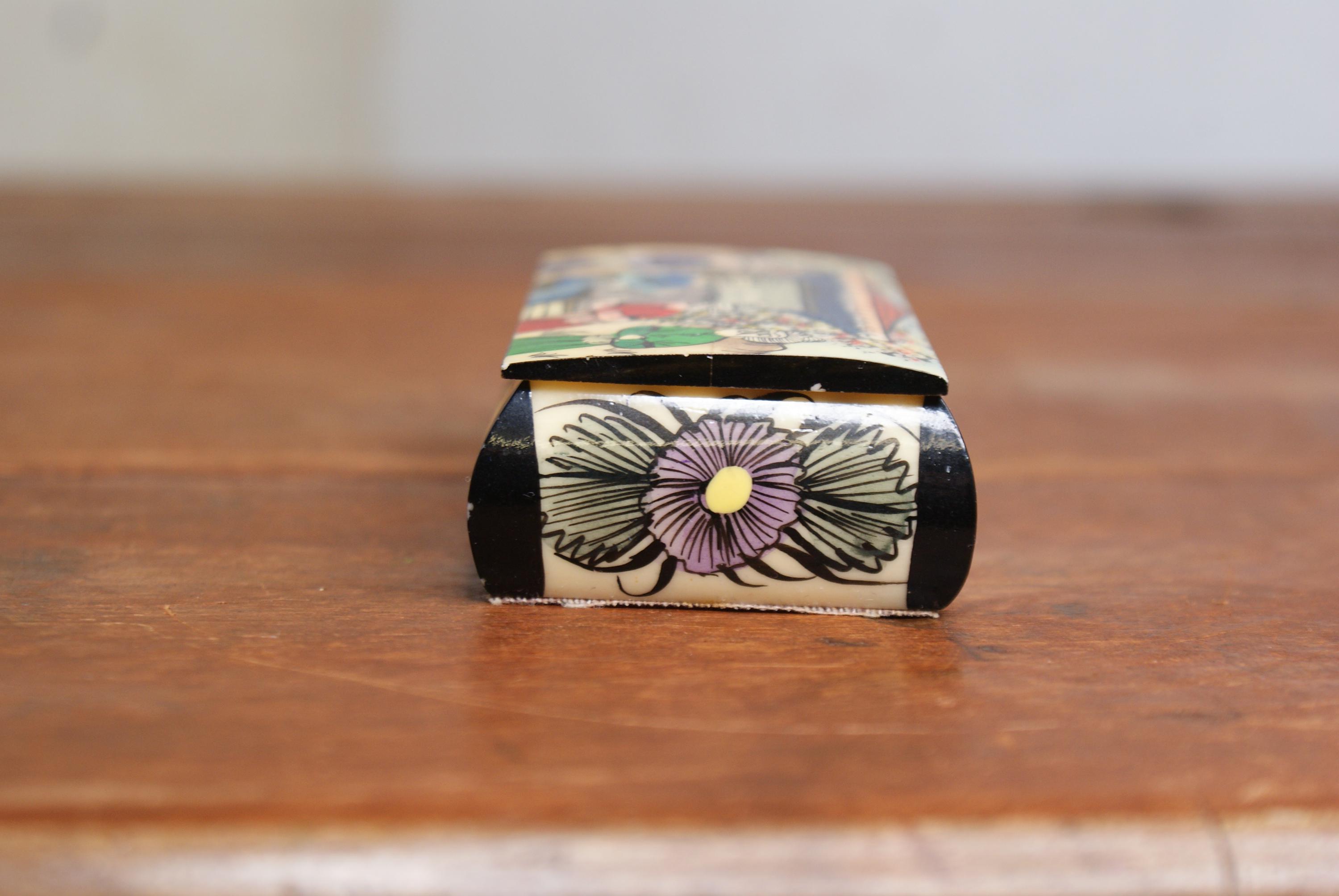 Lovely small hand painted bone trinket box. This features a lovely colourful hand painted design.