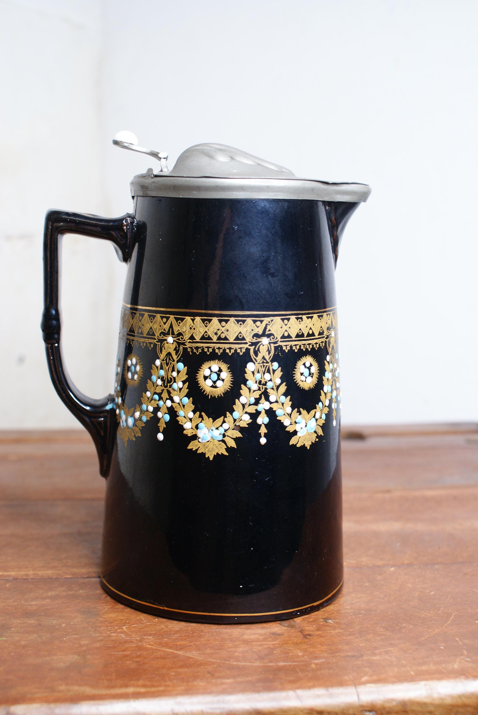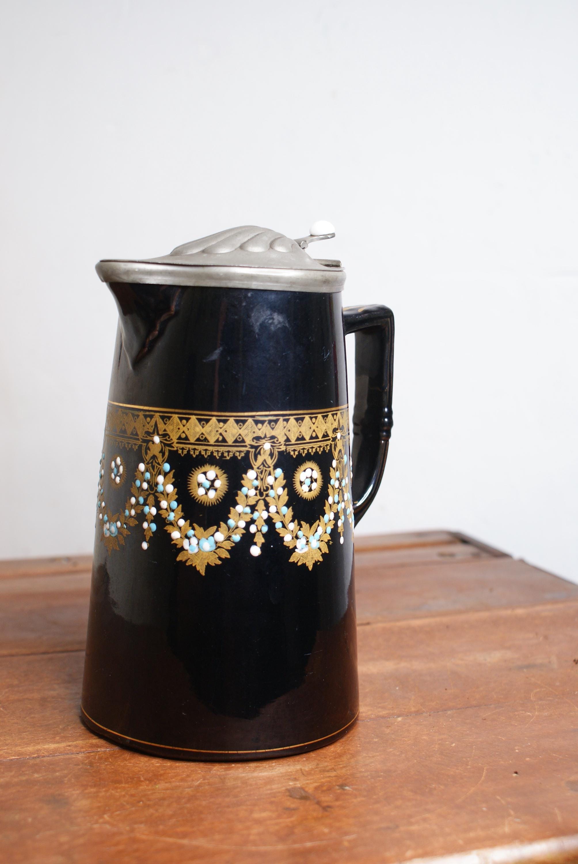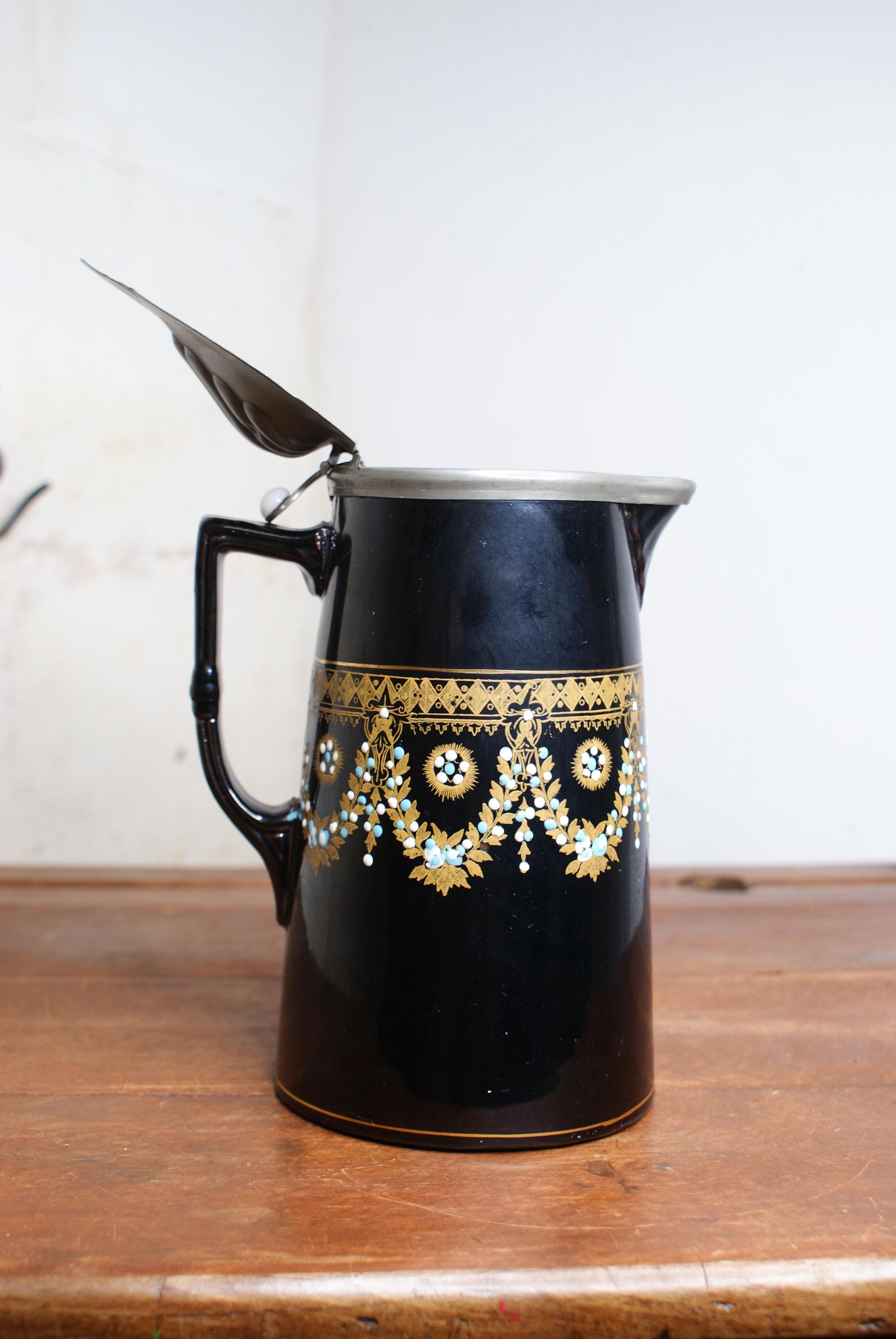 a stunning antique Victorian C.1890 syrup pitcher. This is in excellent condition with no chips or cracks and stunning hand painted design. This is a lovely decorative and would make an ideal piece for a floral display.