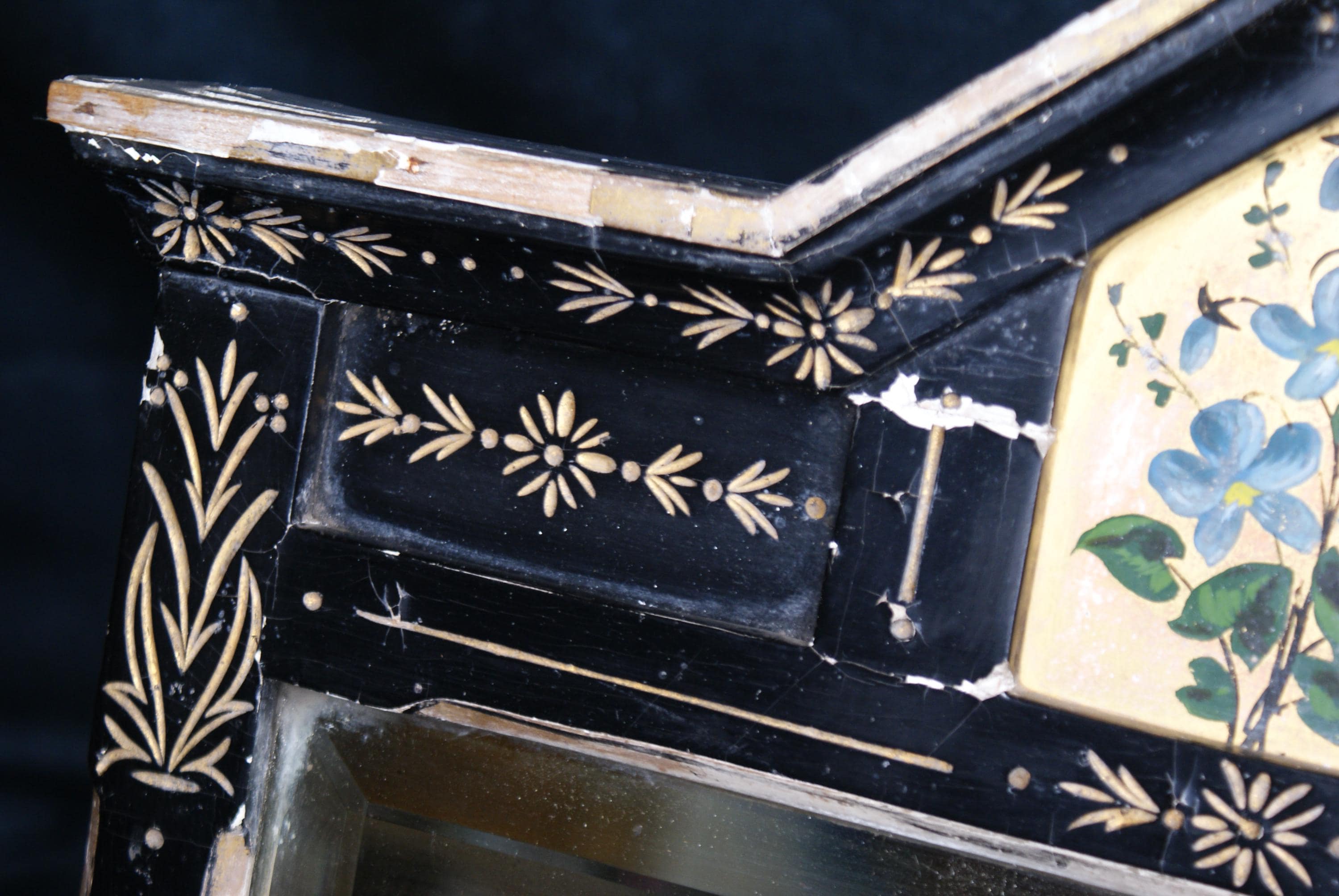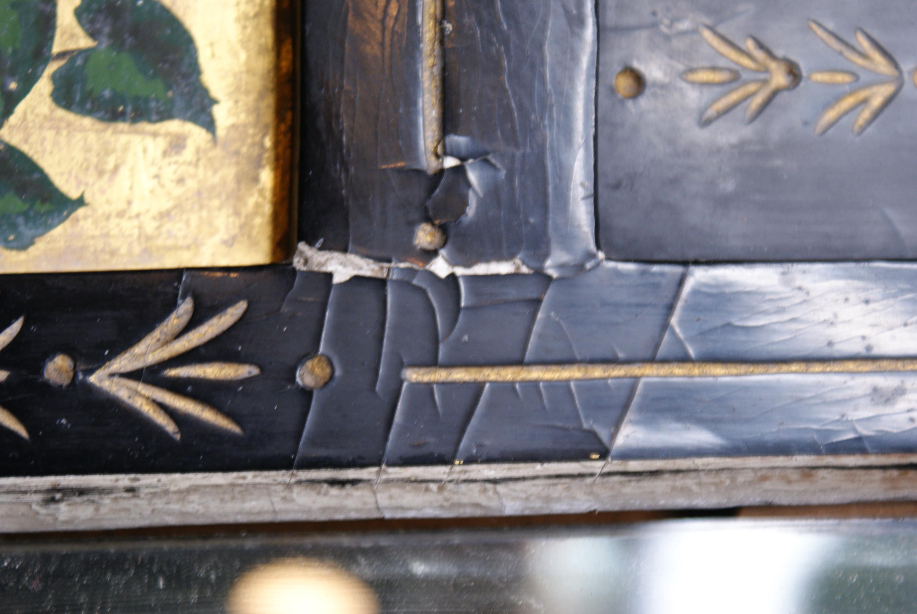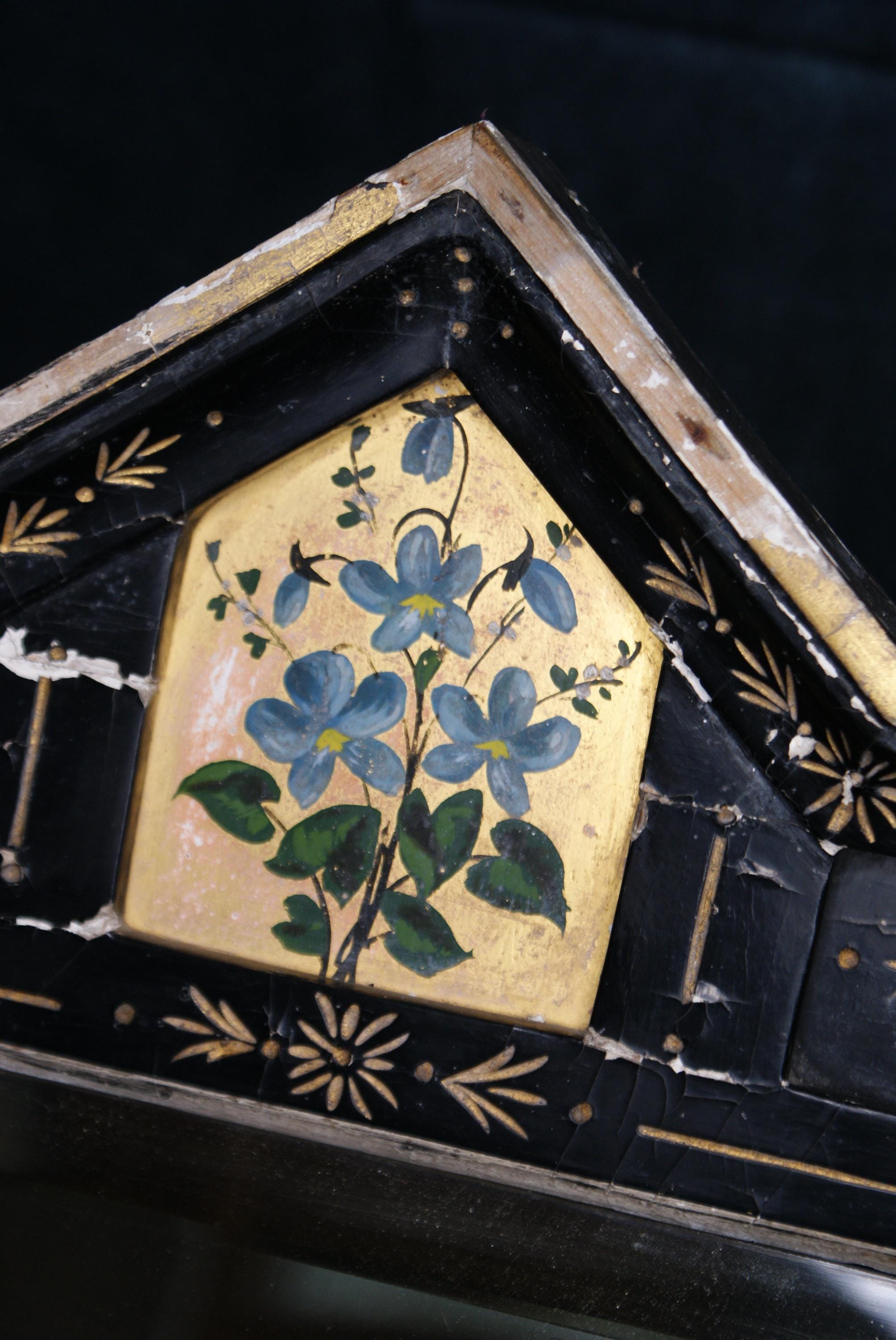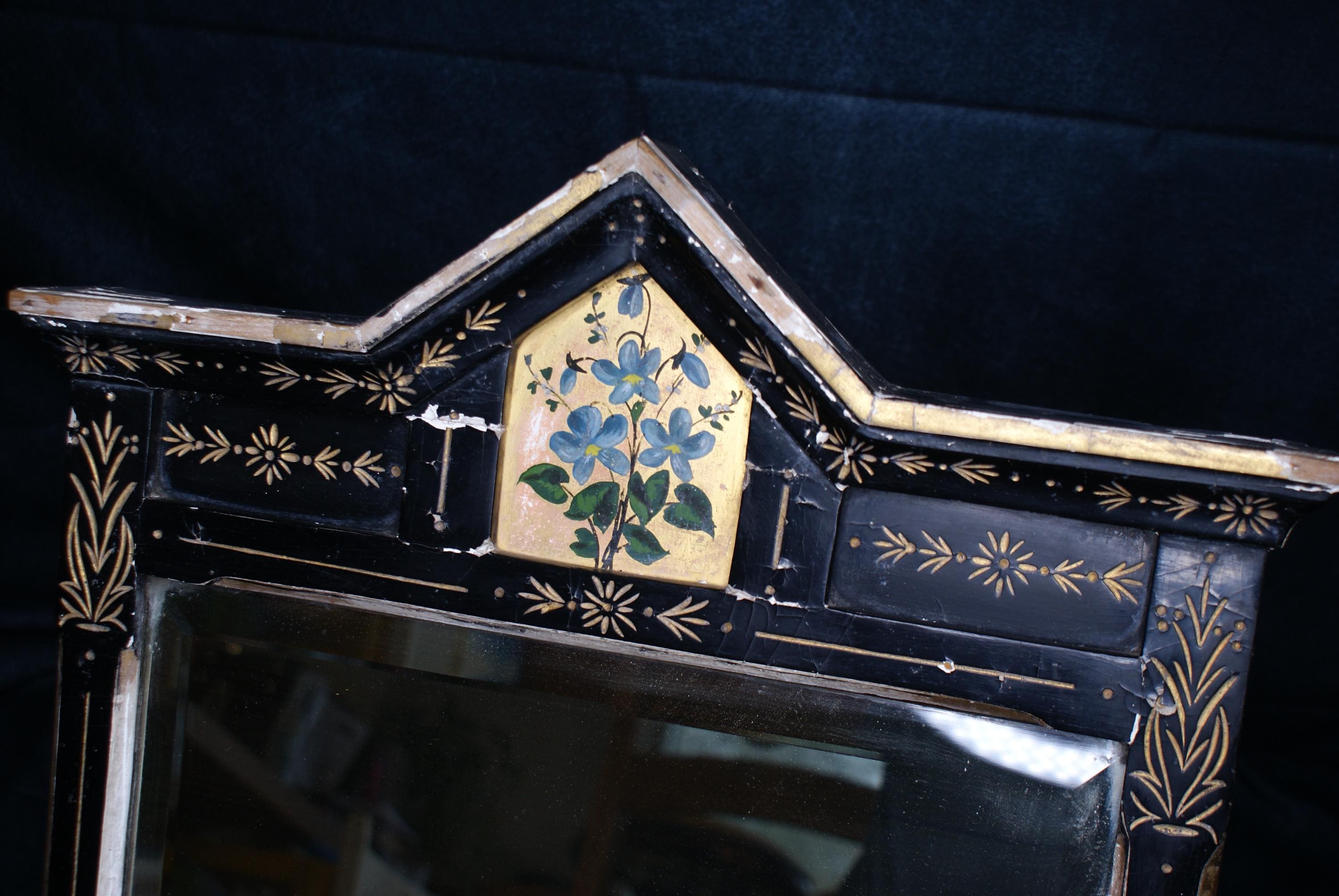 A stunning asthenic movement mirror c. 1880's. This has a fantastic unique look with the cracked plaster and patina and a striking piece with both traditional and distressed styling. the mirror is still in a sturdy condition and able to be hung. The plaster does flake when being moved but is fine when in place.