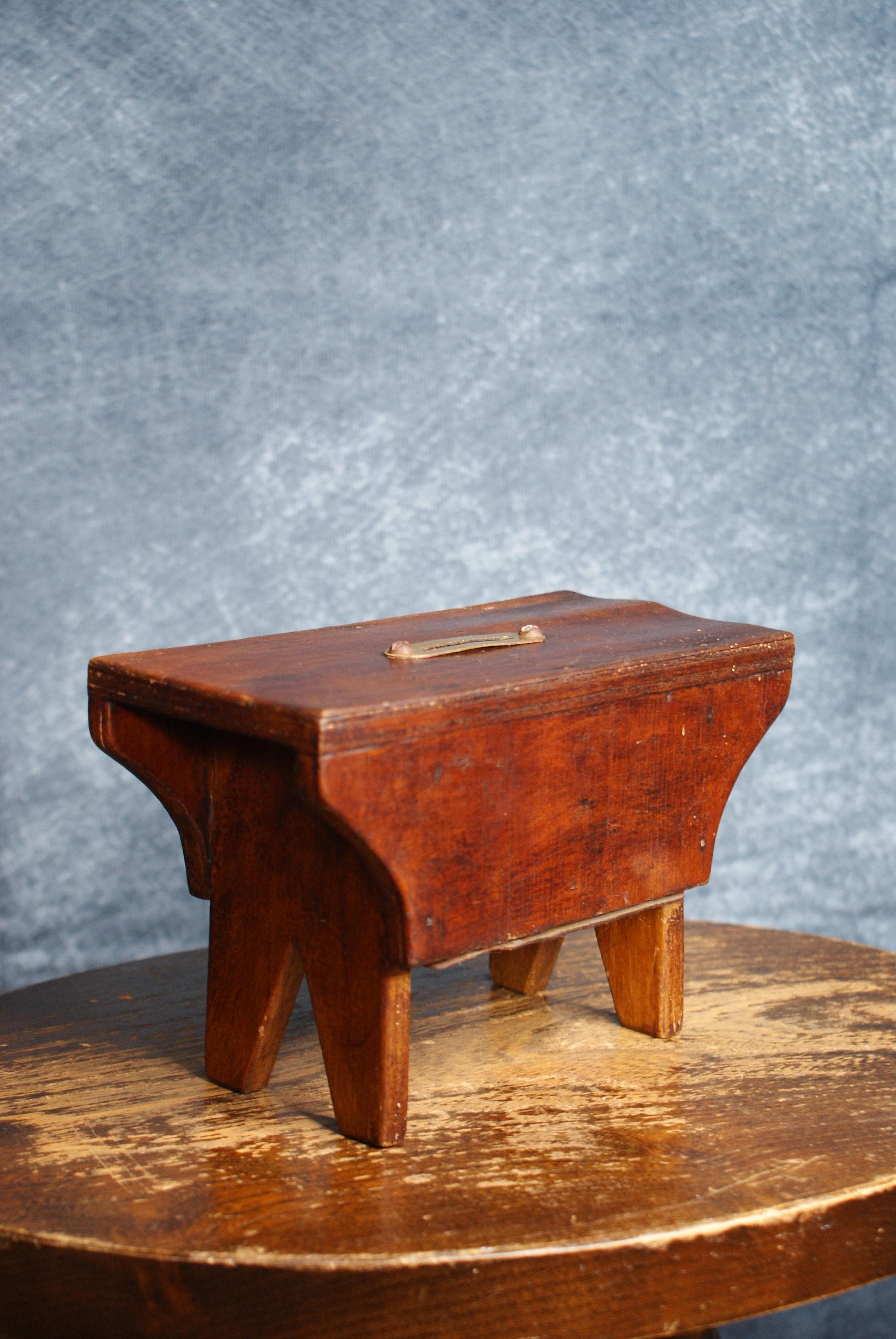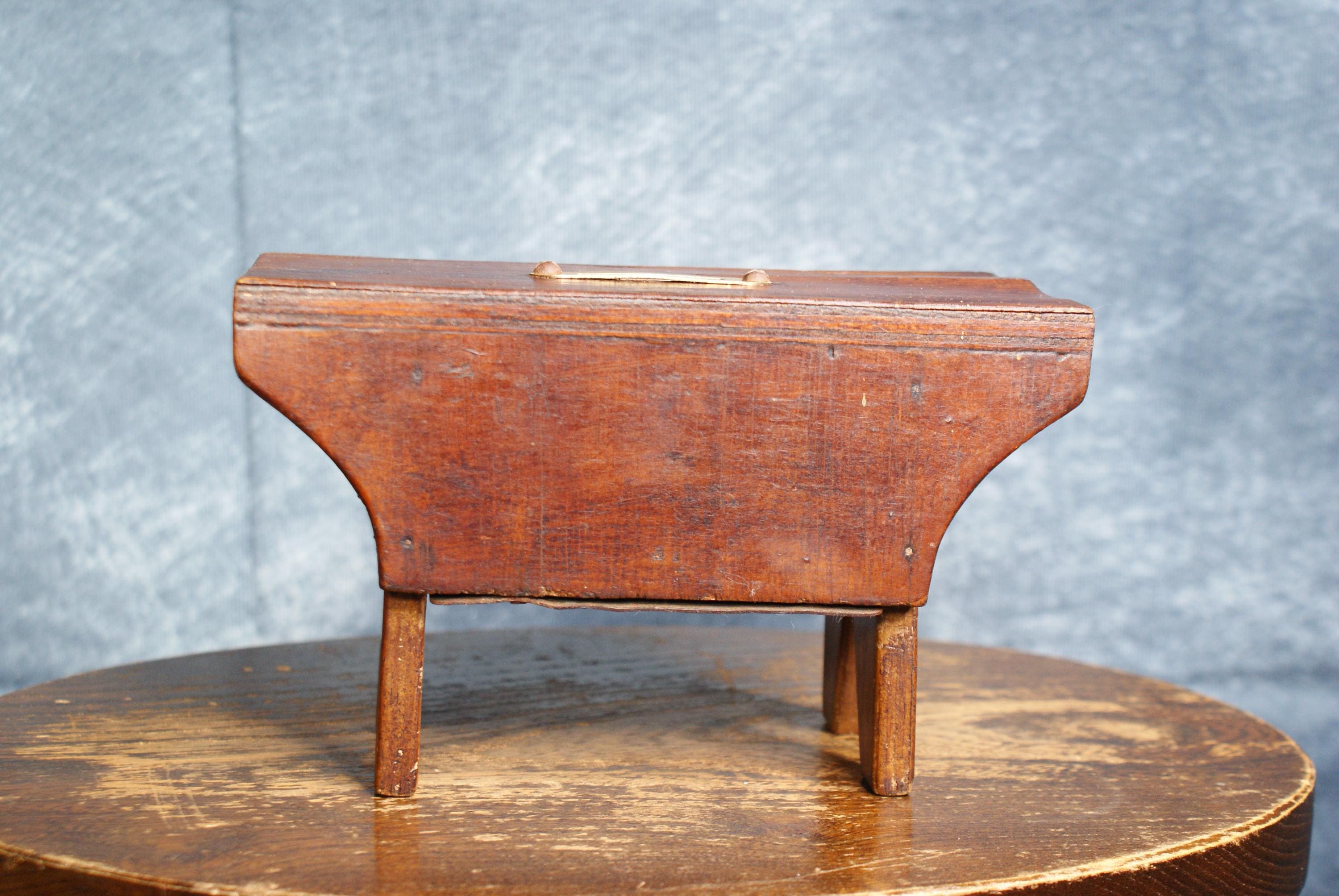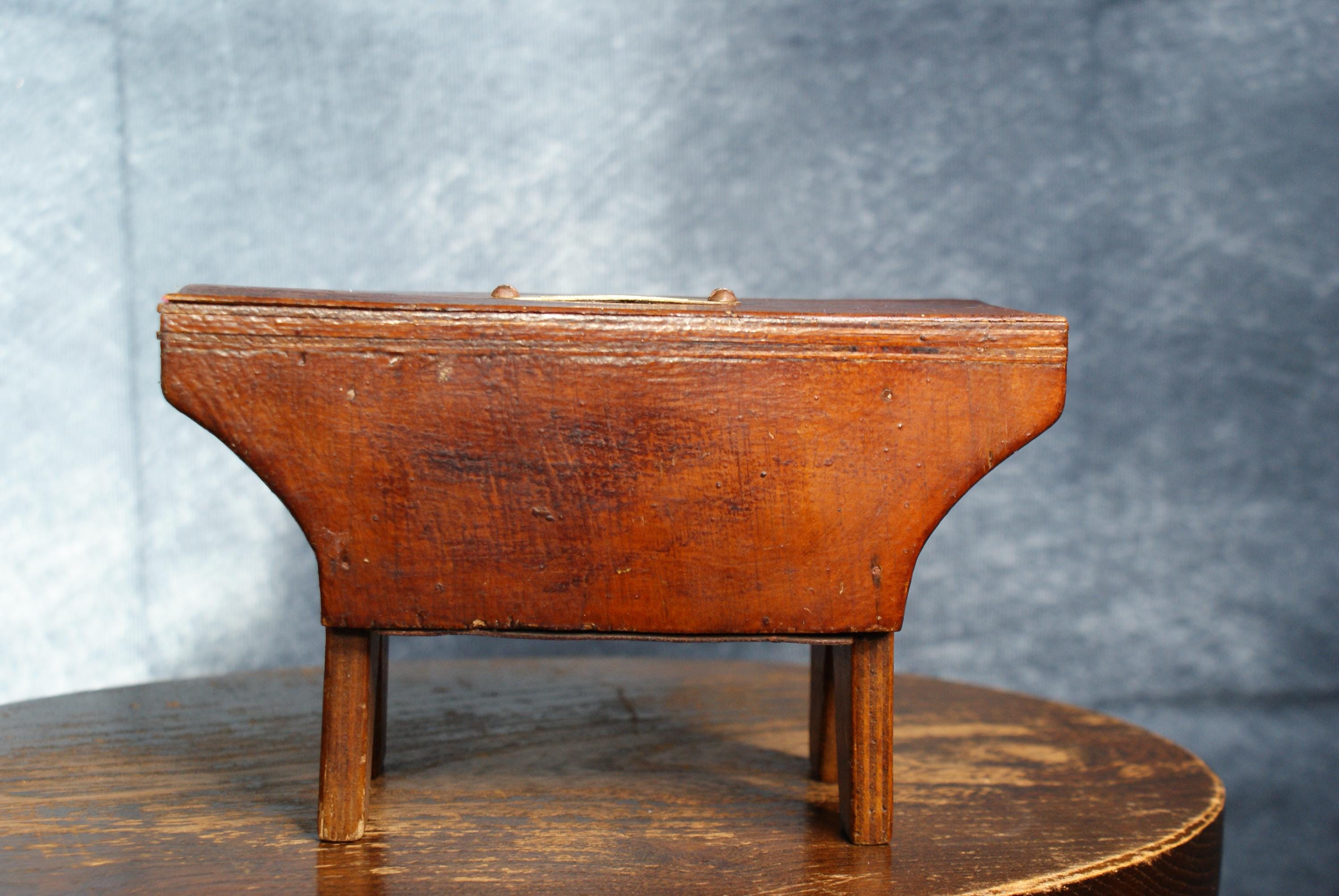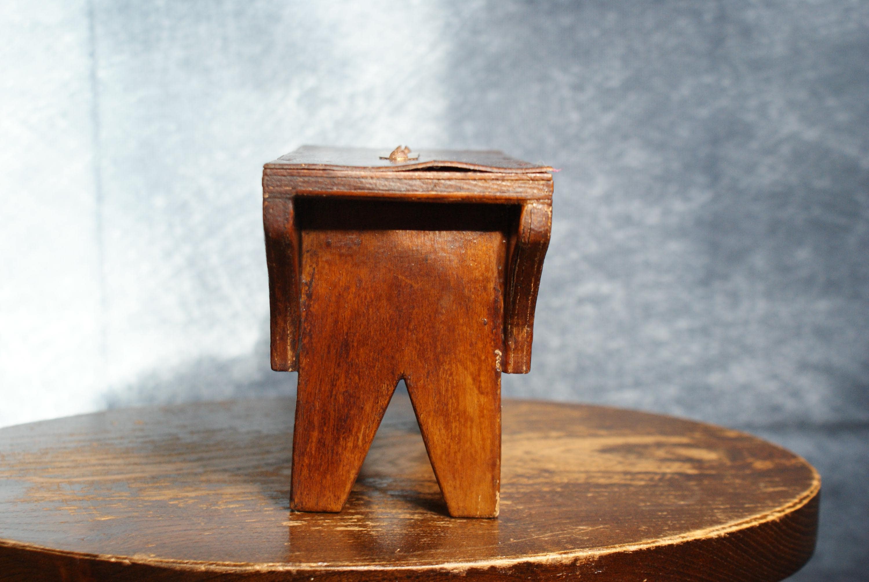 A Lovely handmade cracket stool money box, Likely 19th century an in excellent condition. There is a slight bubble to the wood on one side that can be seen in the pictures.