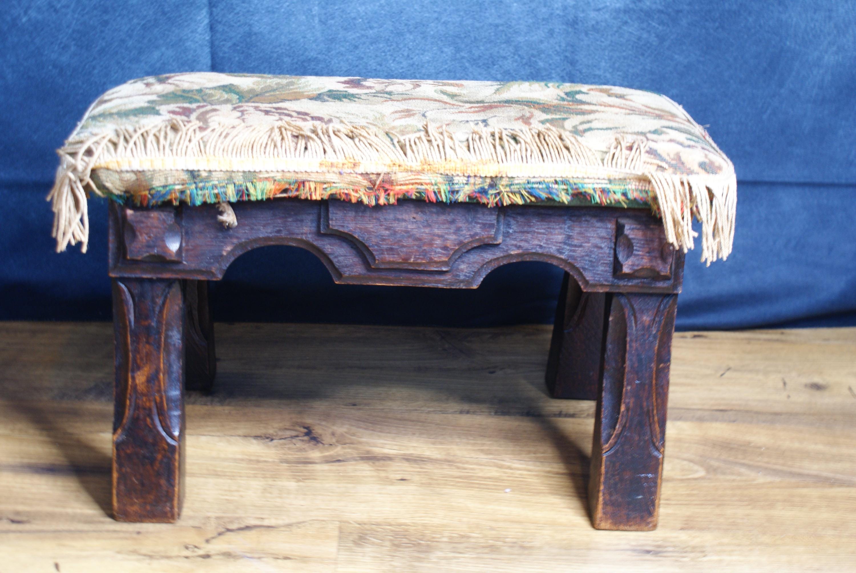 Antique Needlepoint Foot Stool