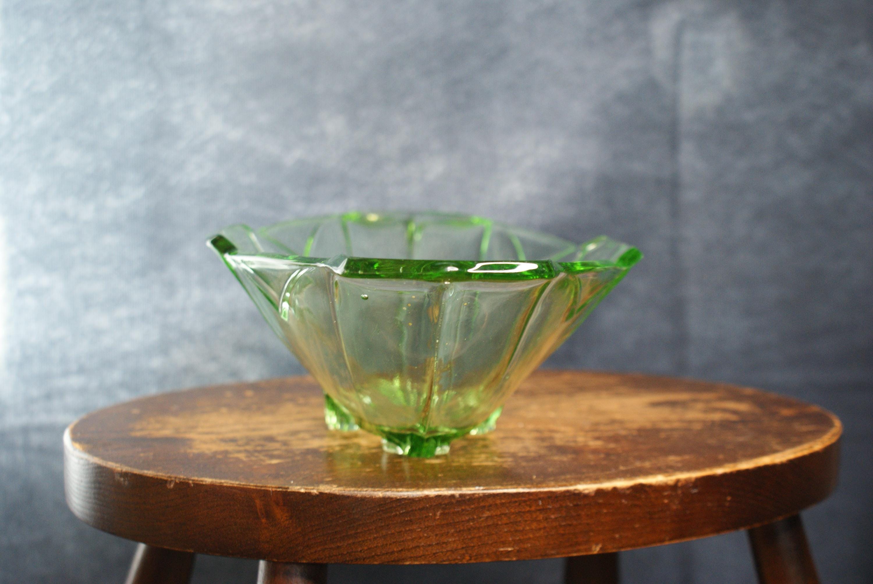 Art Deco Decorative Green Glass Bowl