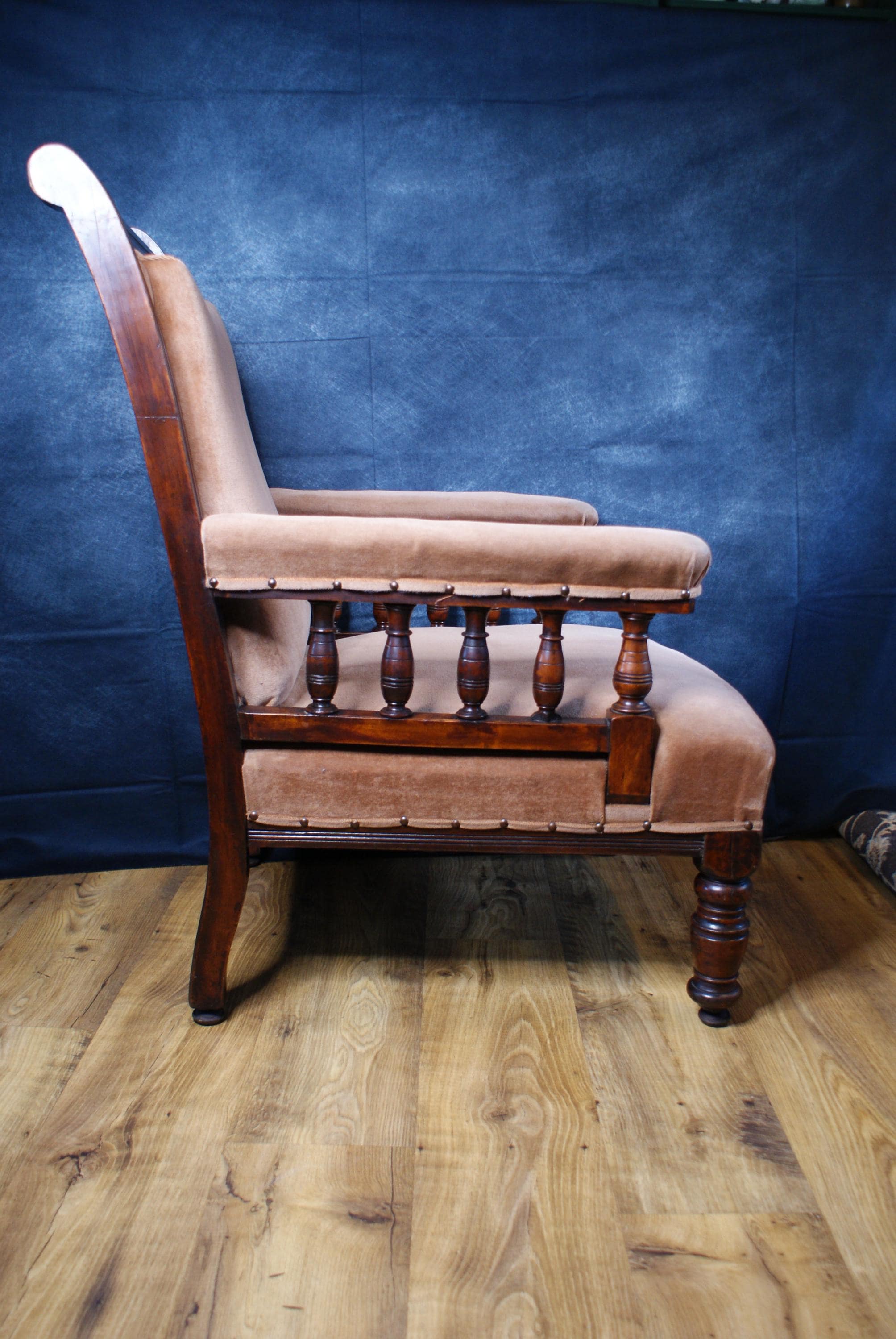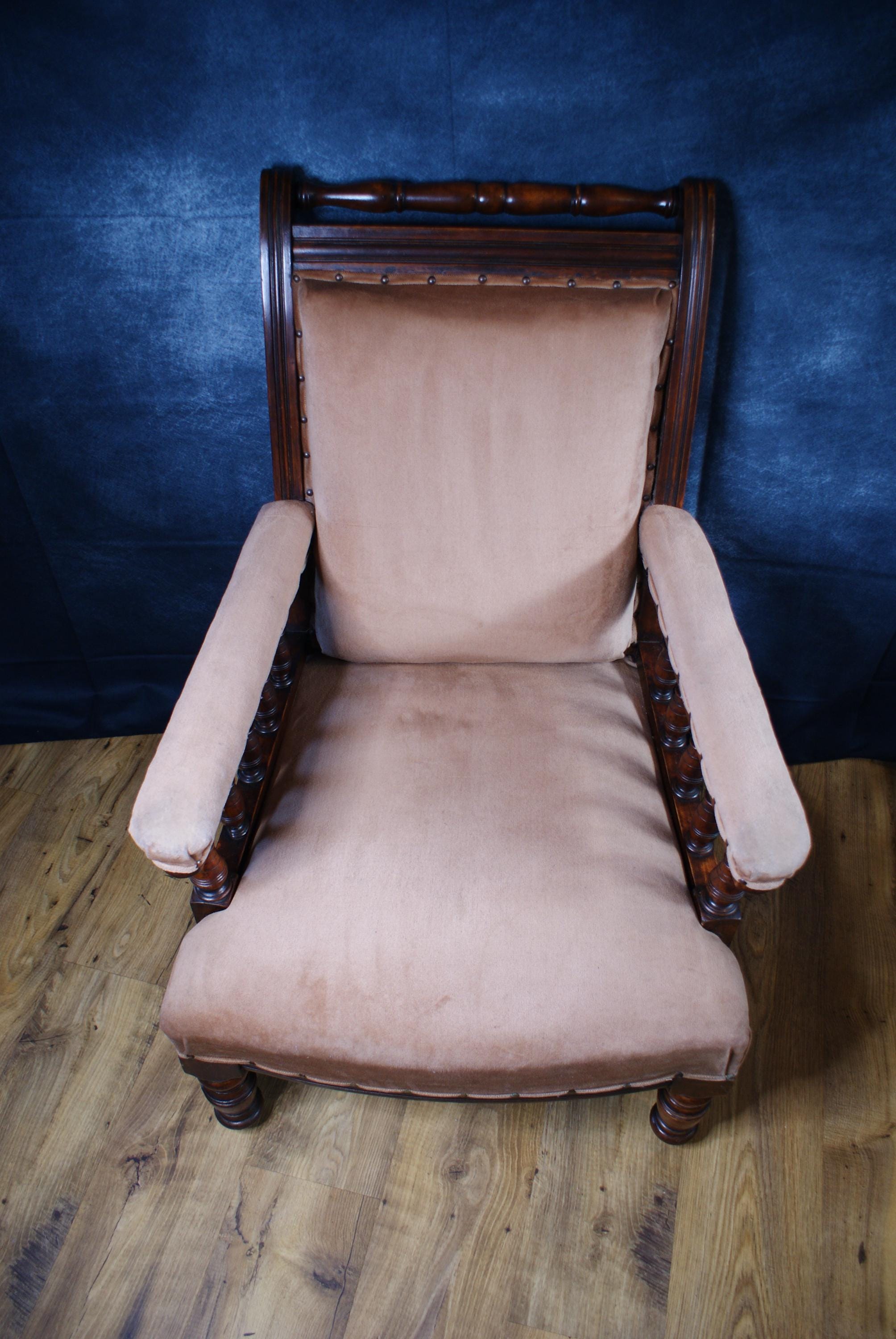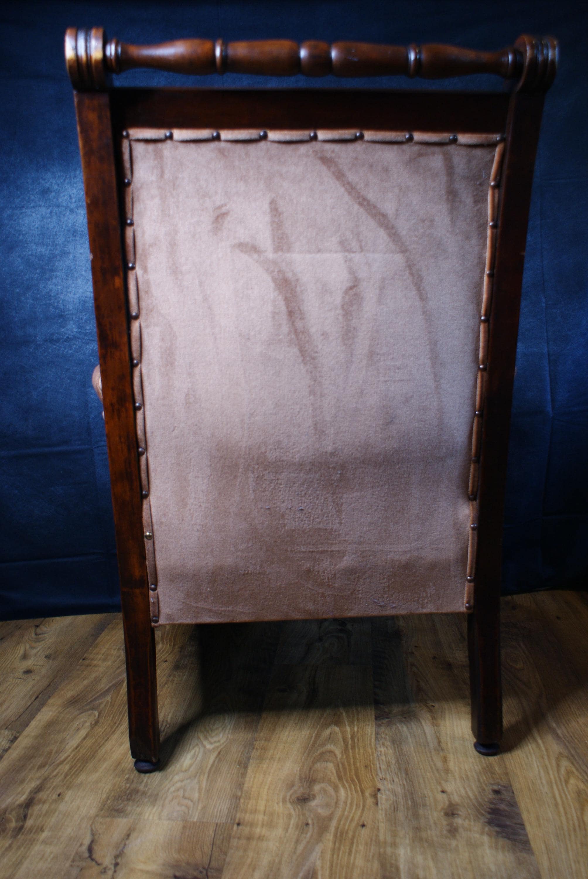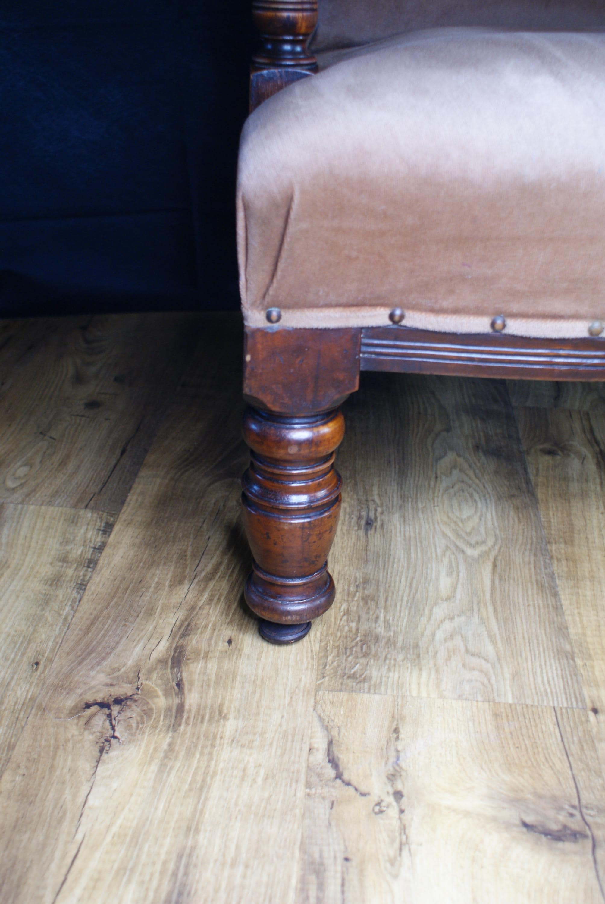A stunning gentleman's library chair. In excellent condition with the original fabric in a soft faded pink which is both elegant and masculine. the bottom as been refreshed with a newer cover. The frame is in excellent condition.