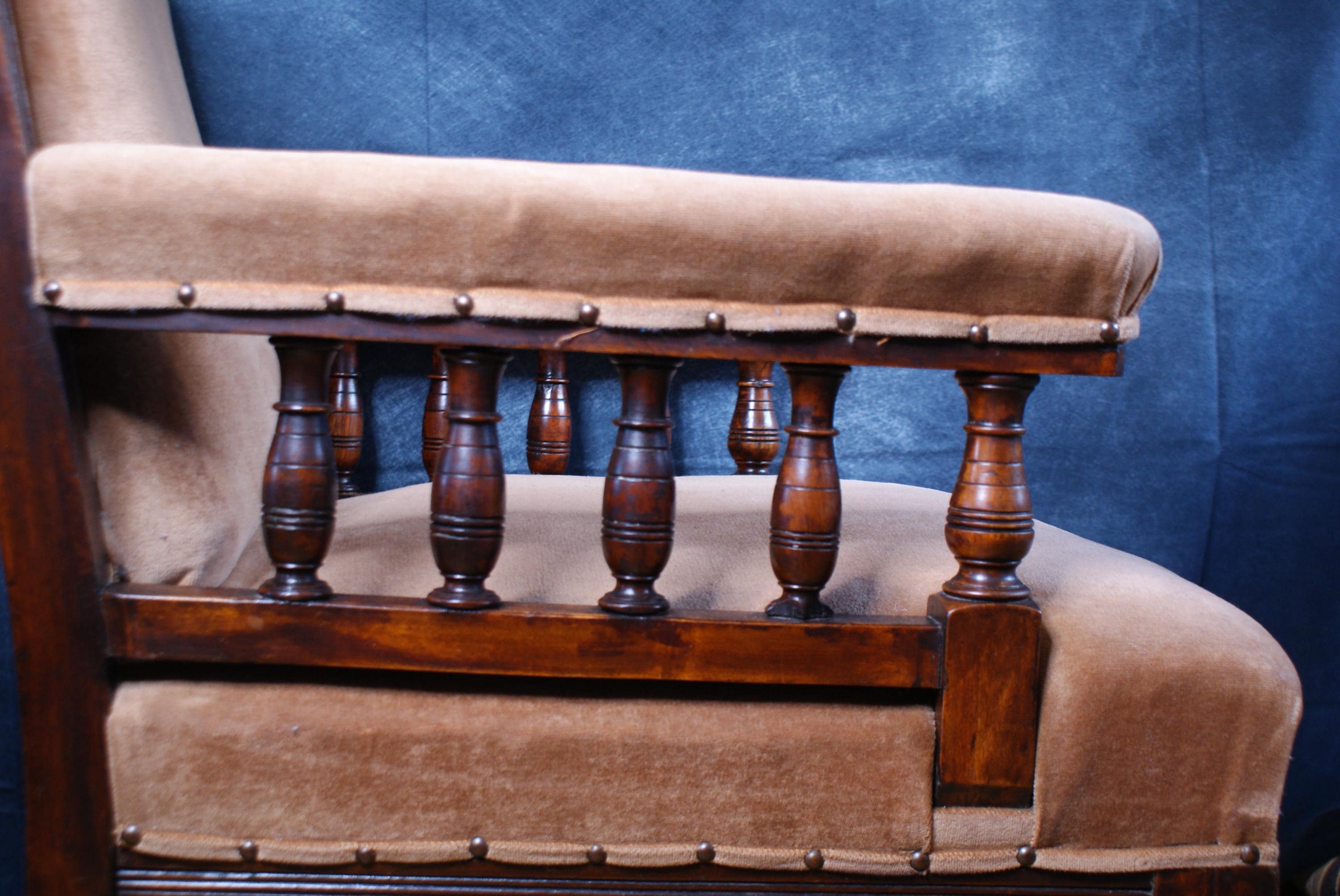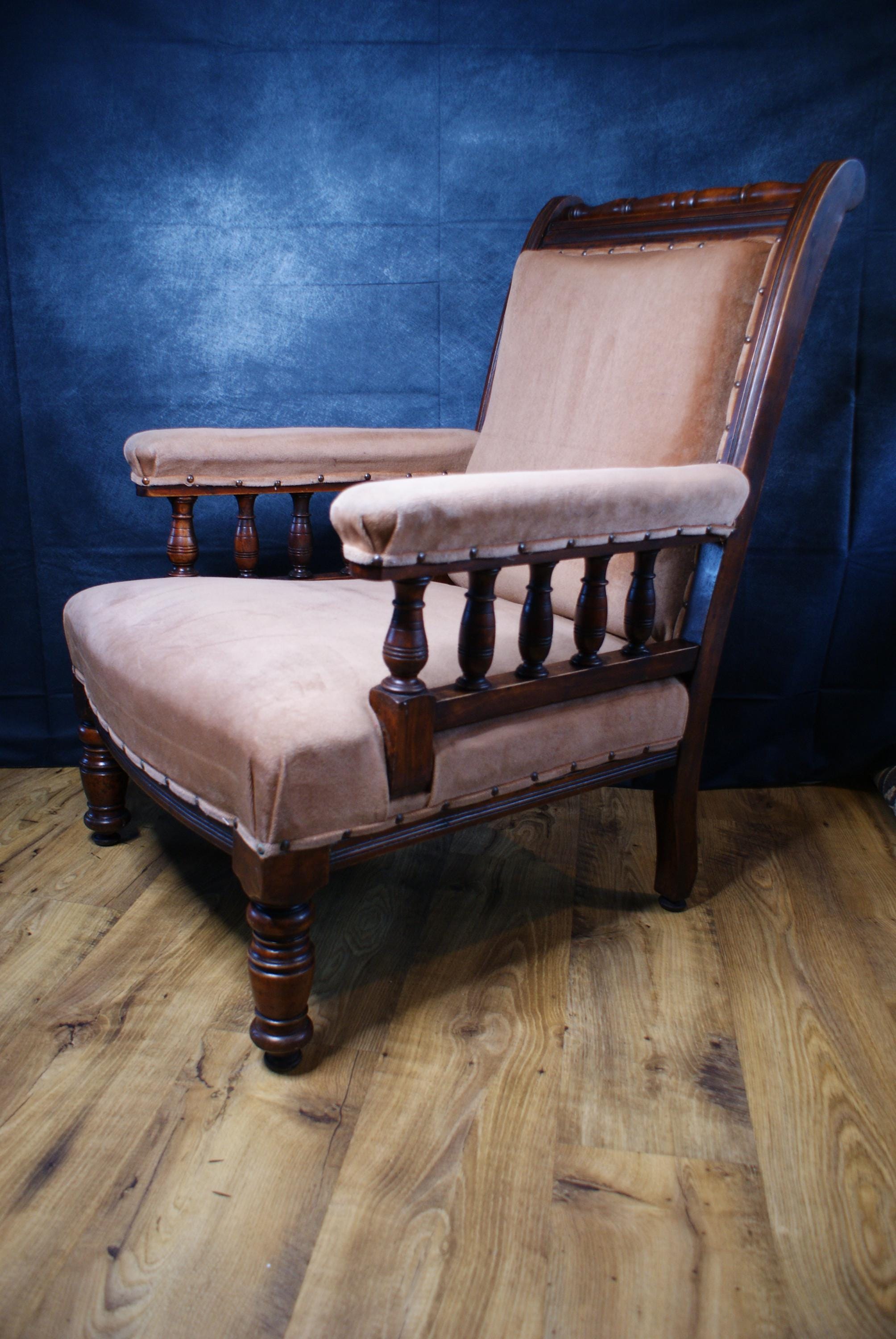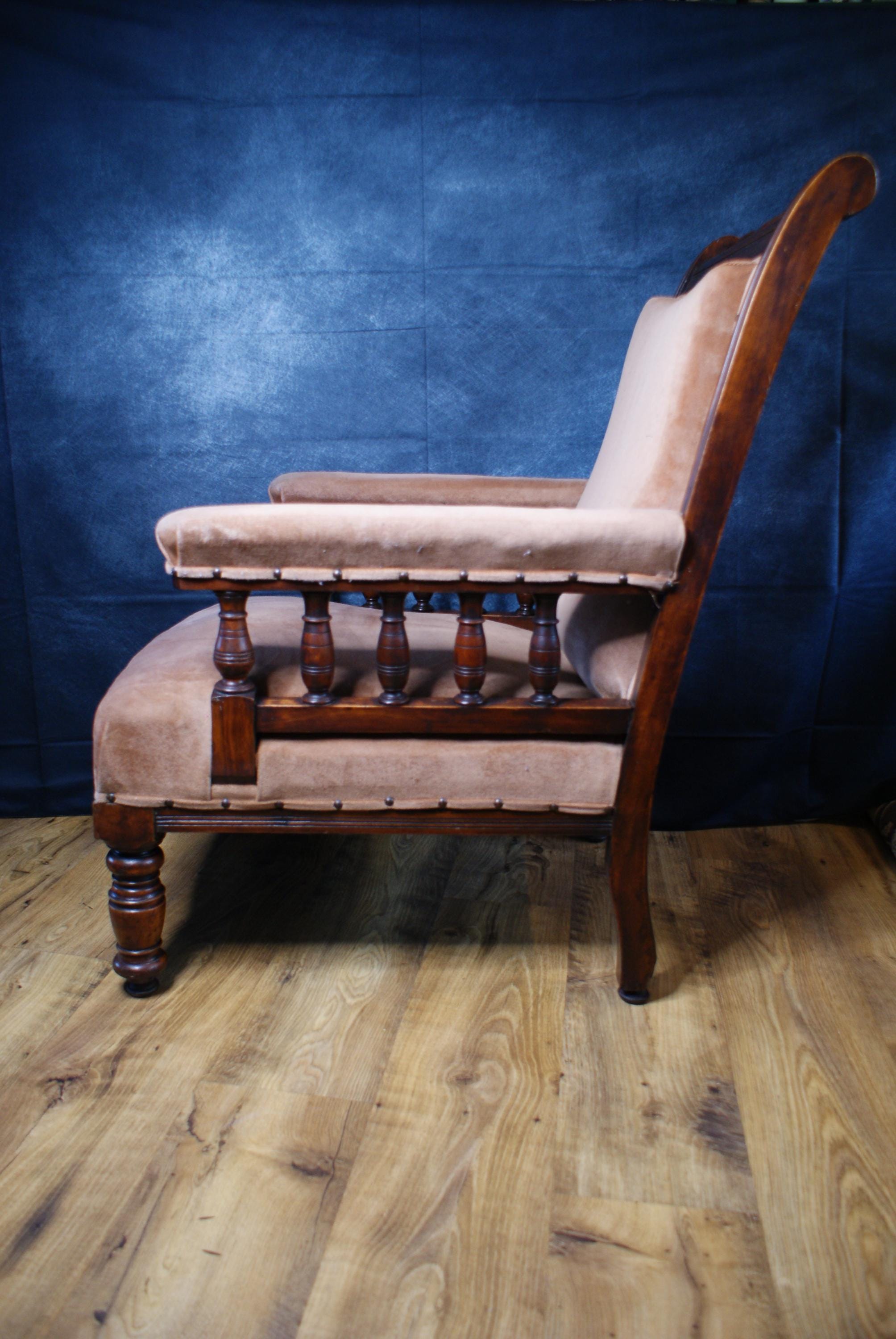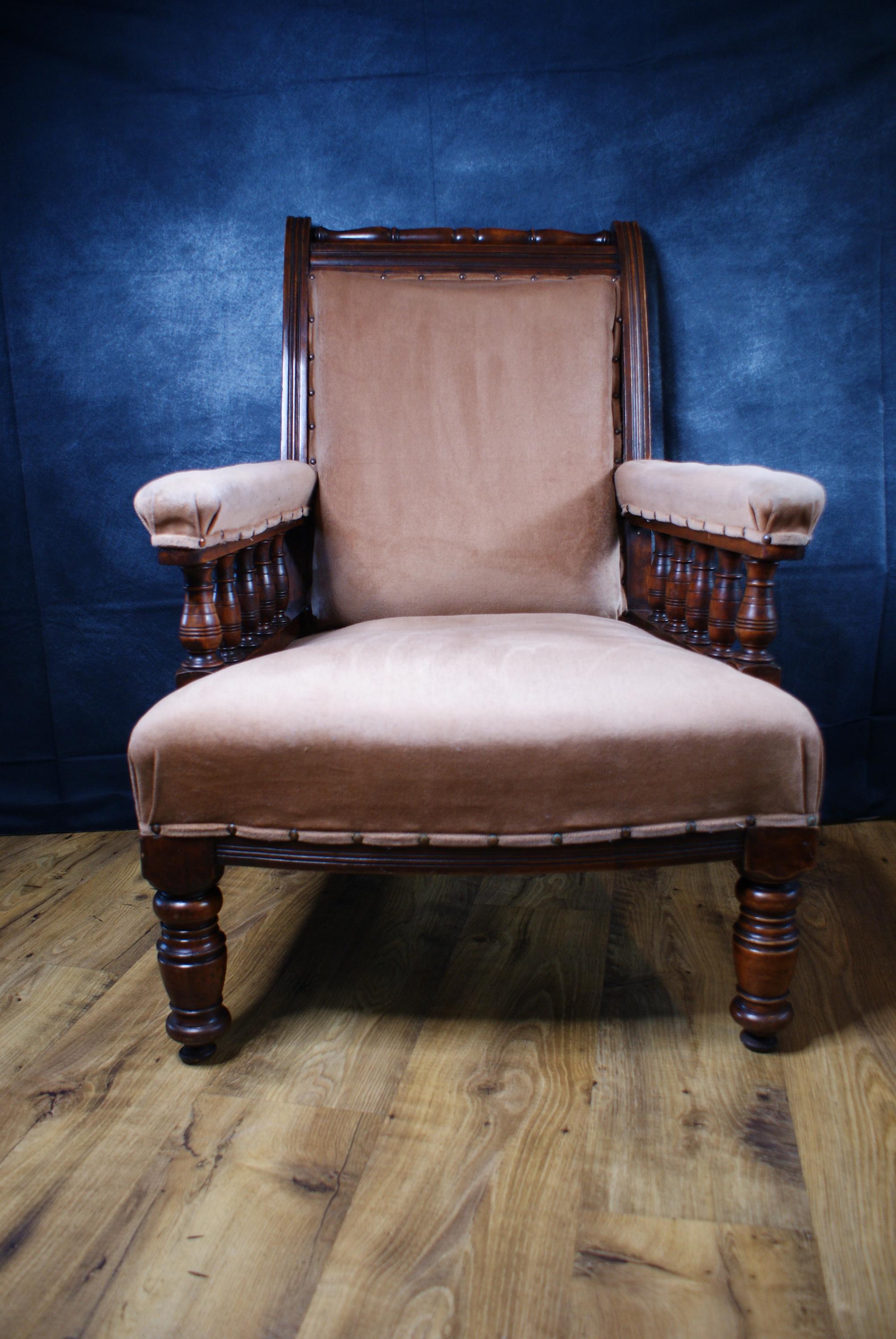 A stunning gentleman's library chair. In excellent condition with the original fabric in a soft faded pink which is both elegant and masculine. the bottom as been refreshed with a newer cover. The frame is in excellent condition.