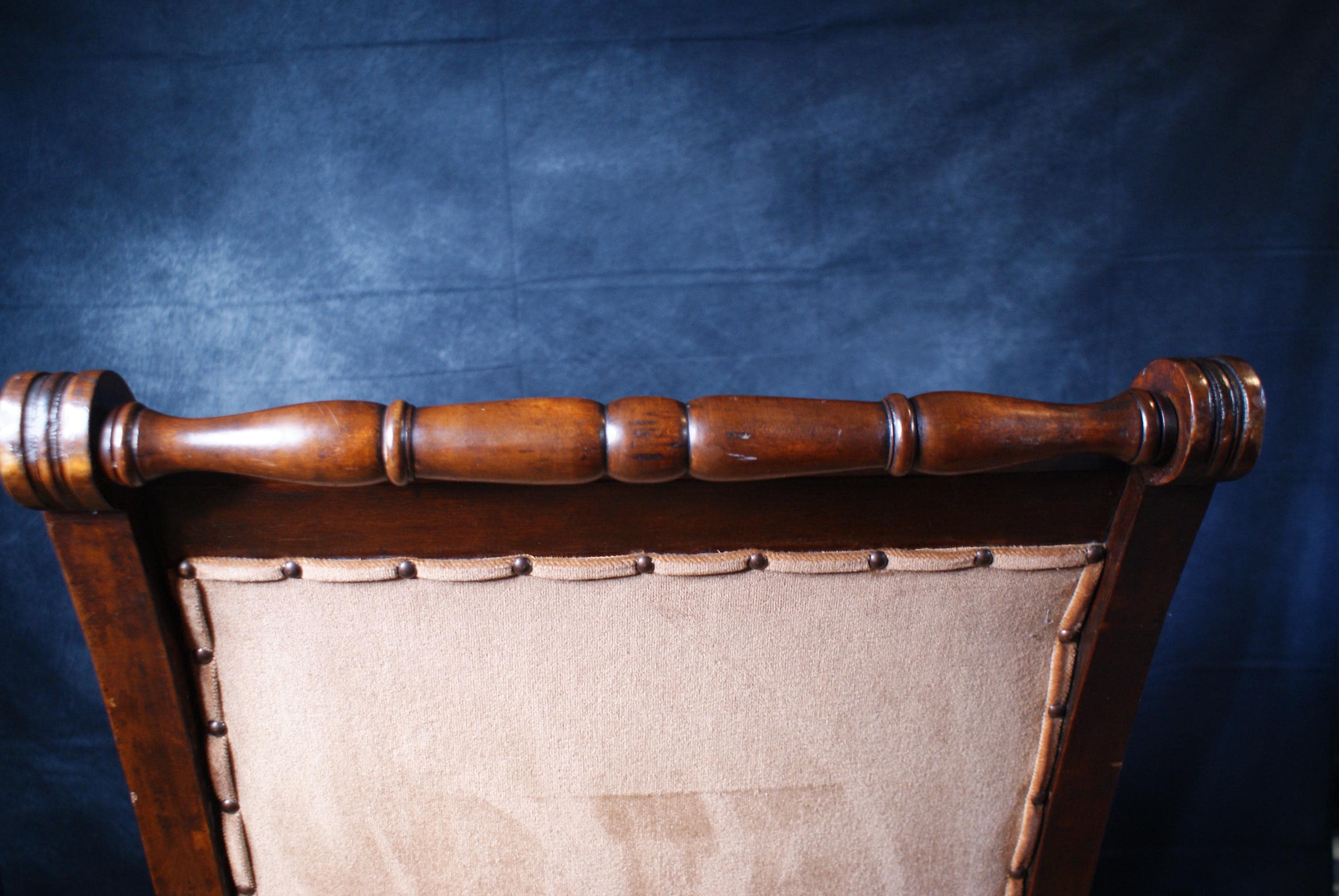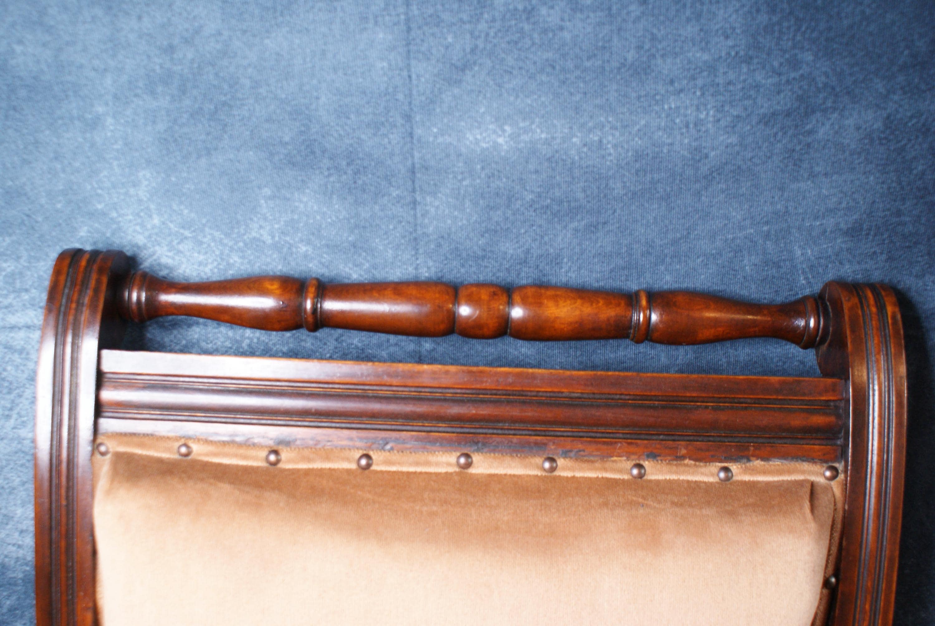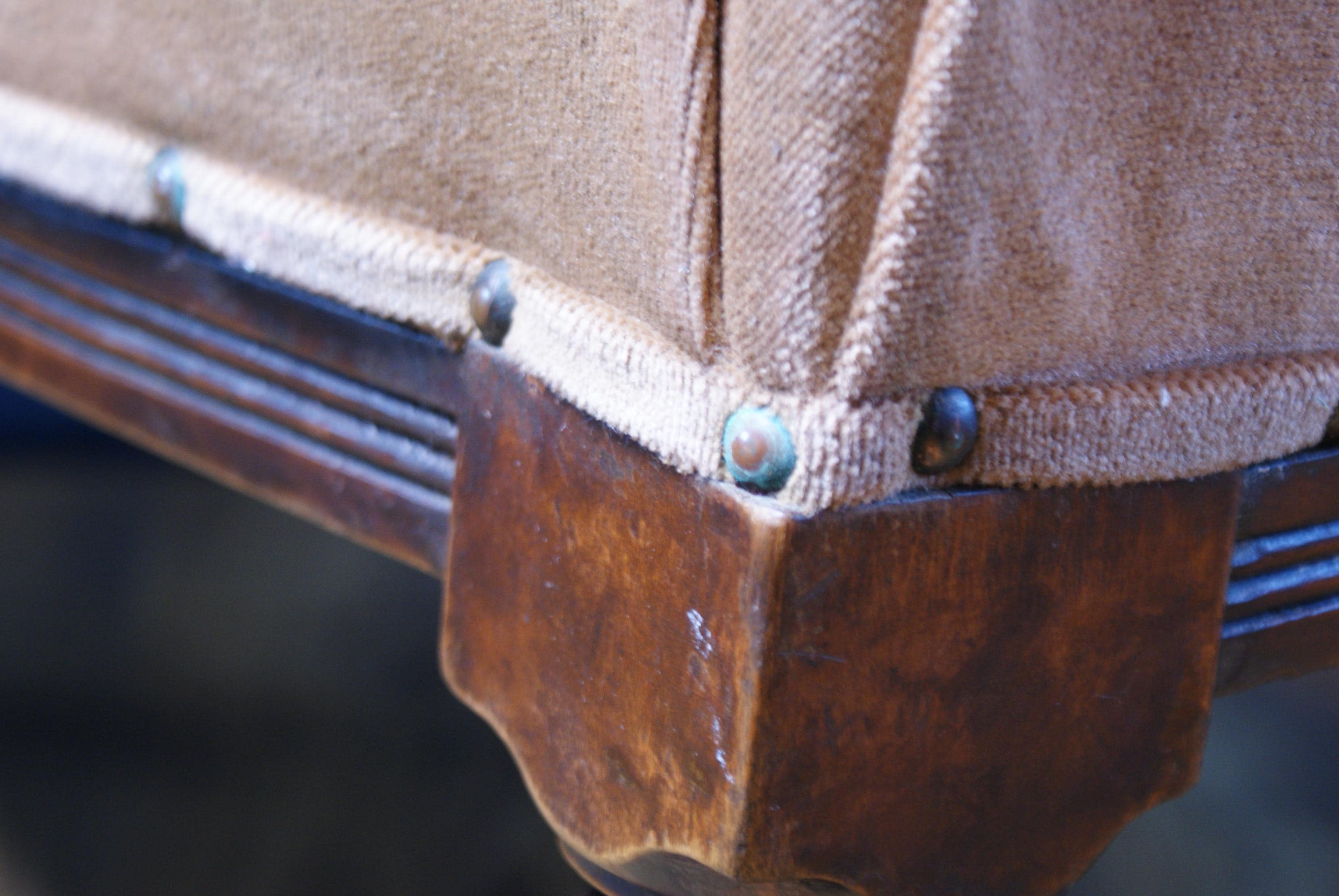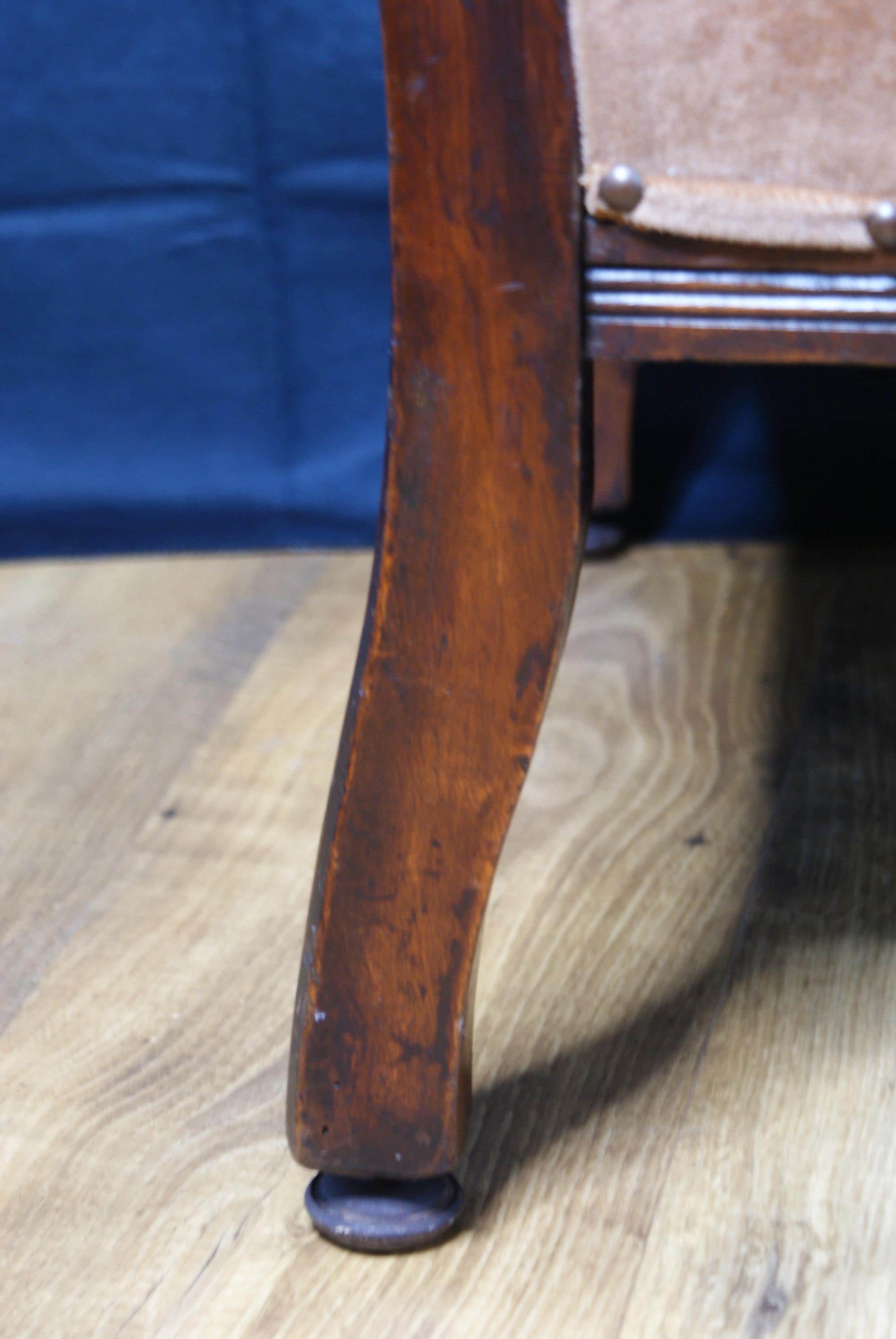 A stunning gentleman's library chair. In excellent condition with the original fabric in a soft faded pink which is both elegant and masculine. the bottom as been refreshed with a newer cover. The frame is in excellent condition.