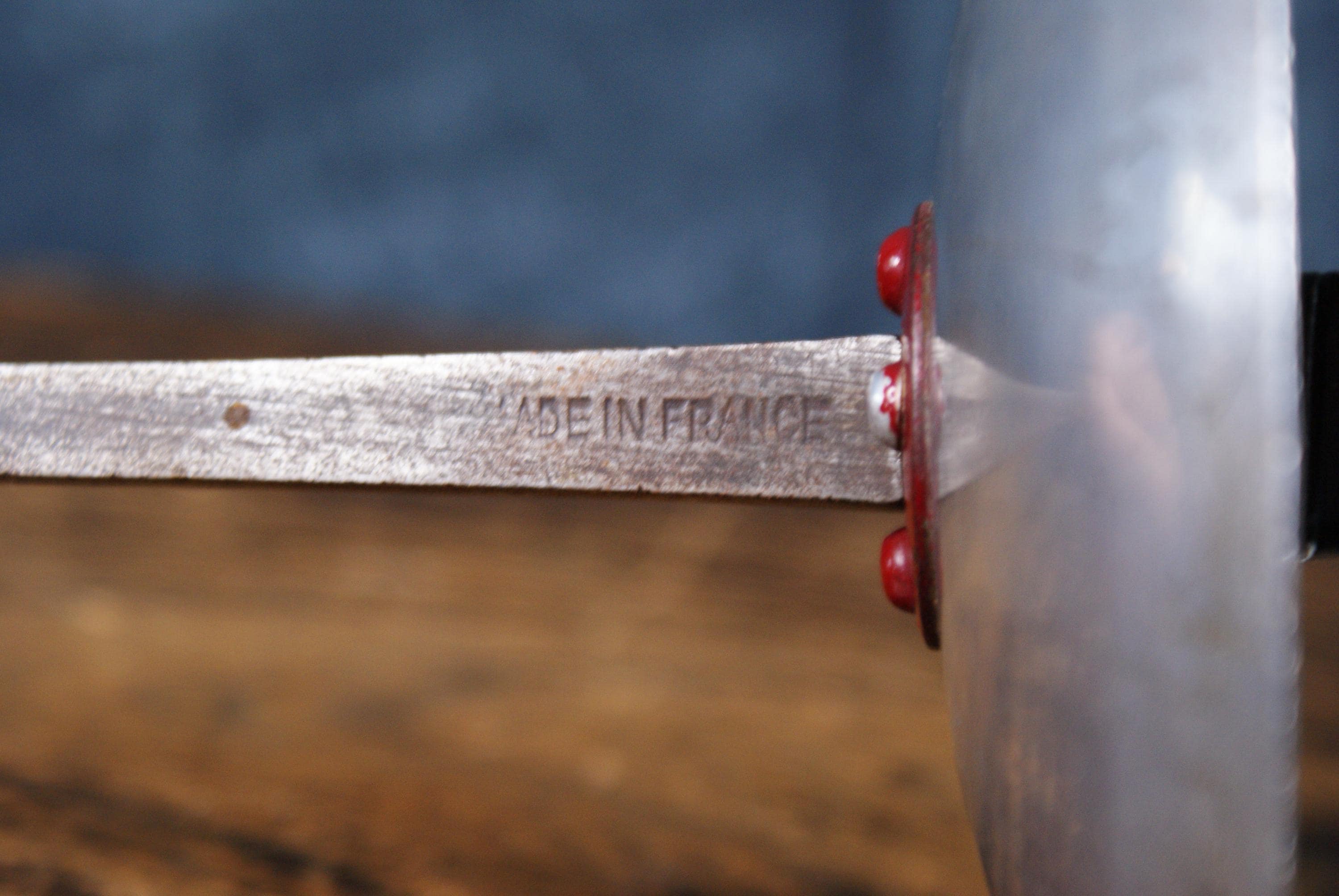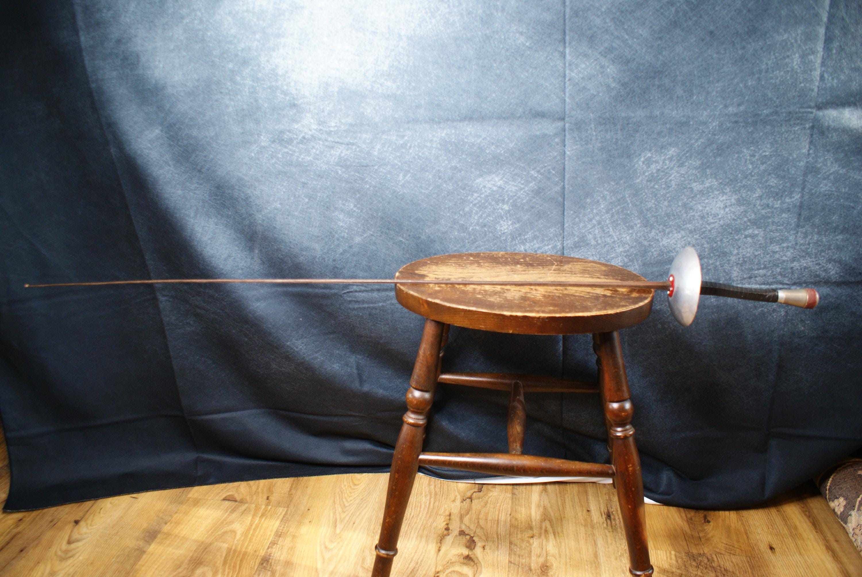 A vintage fencing mask and foil from renowned manufacturer Leon Paul founded in 1921. Made in France this has a fantastic look and is an excellent decorative piece with plenty of patina and battle scars. The foil is approximately 127cm long.
