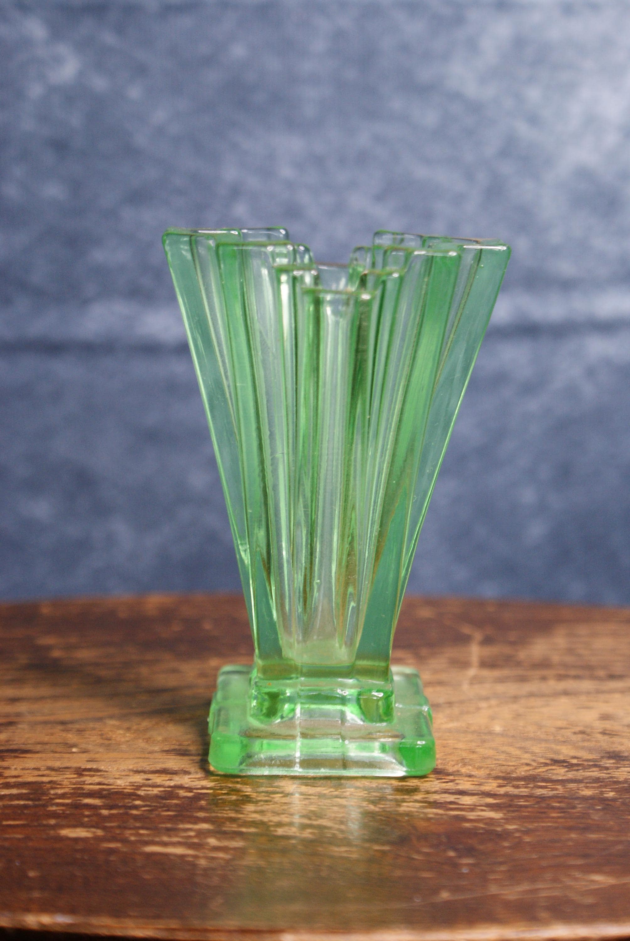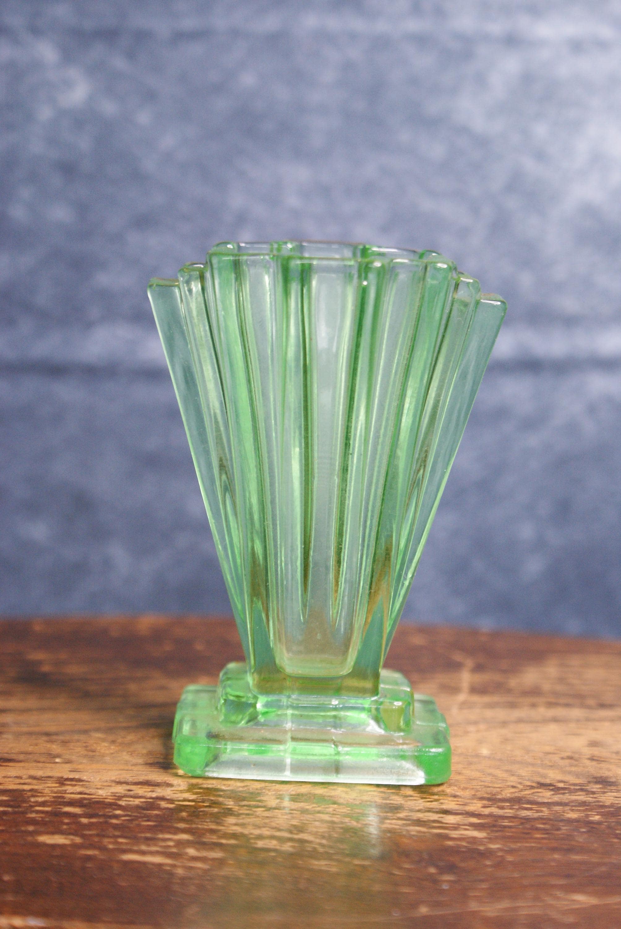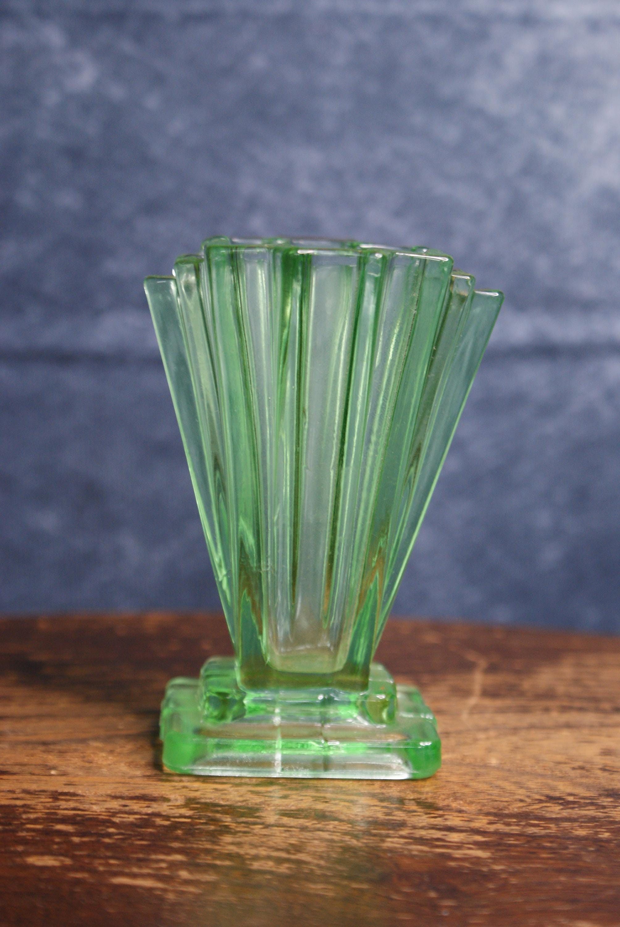 A lovely miniature art deco uranium glass vase, made by Bagley & Co in the 1930's as part of their Grantham pattern range. Made from uranium glass which glows under UV light as shown in the pictures. excellent condition with no chips or cracks.