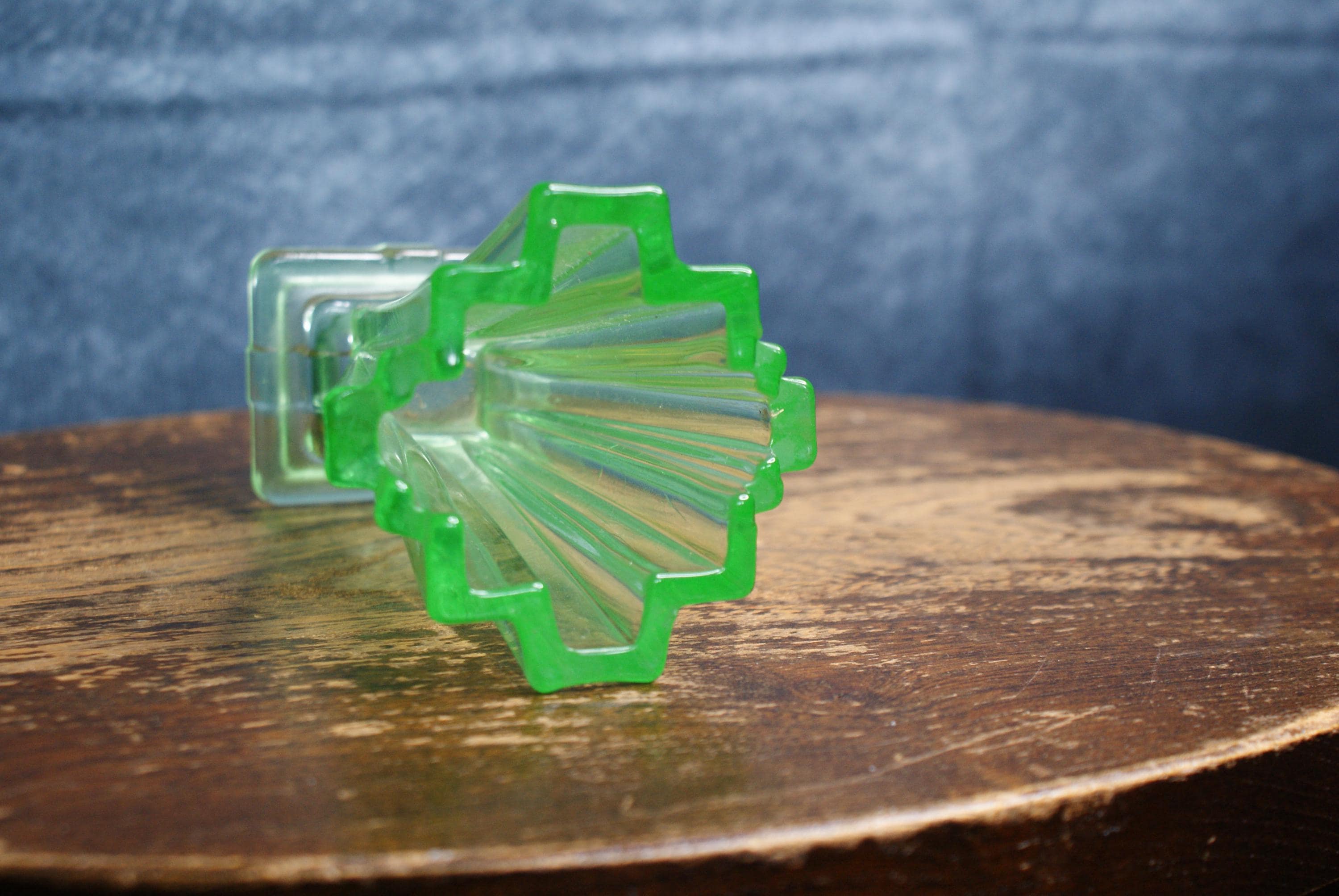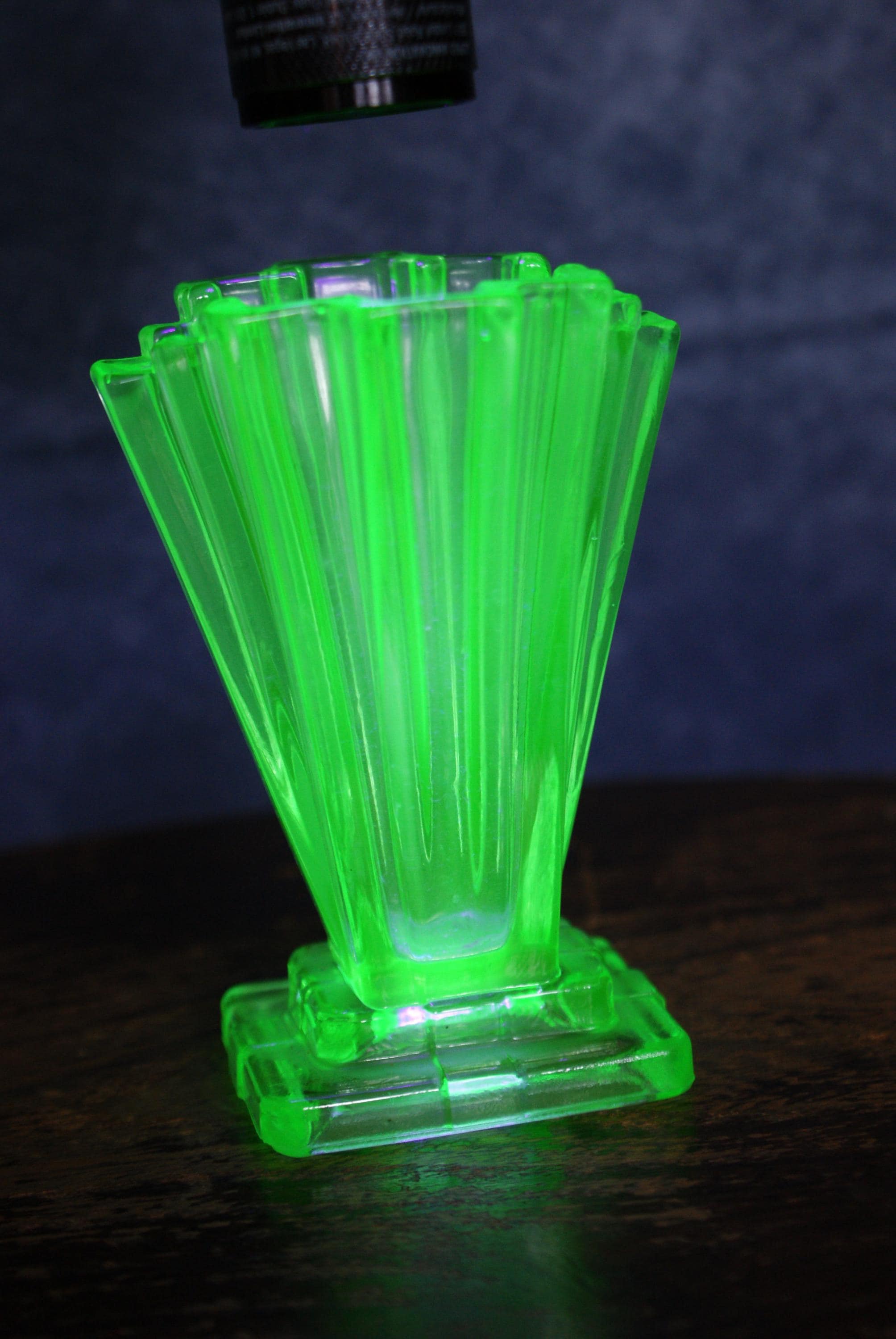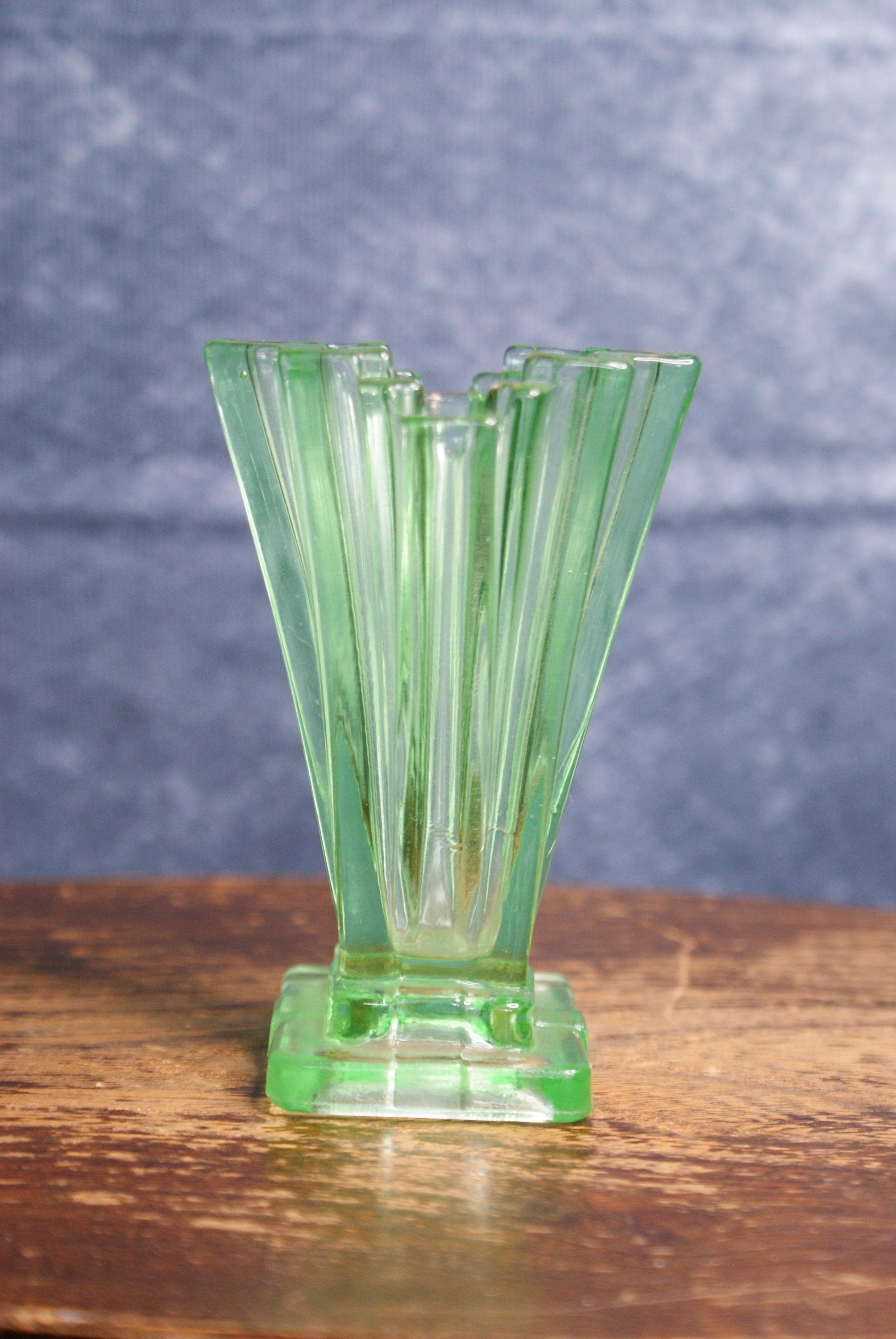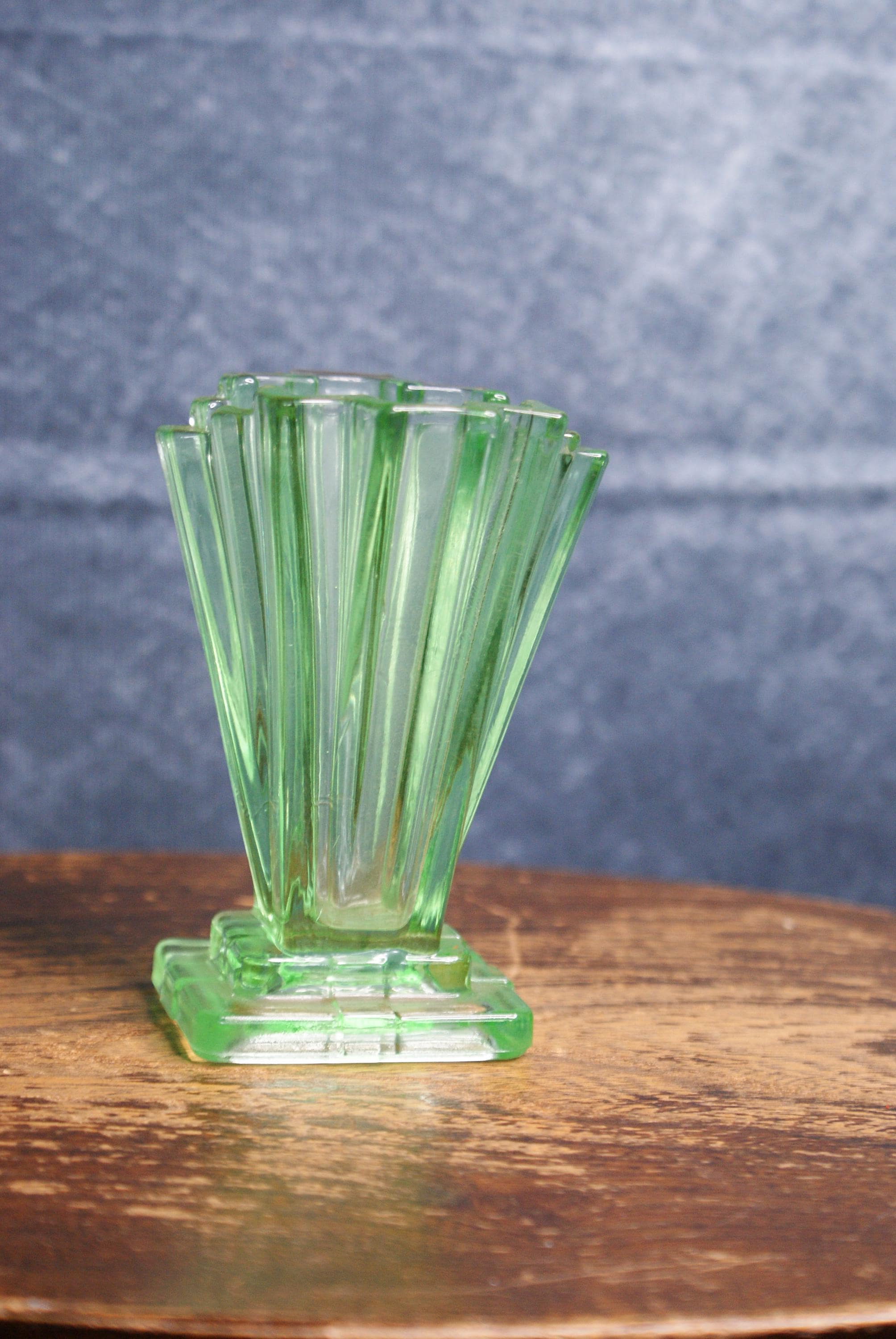 A lovely miniature art deco uranium glass vase, made by Bagley & Co in the 1930's as part of their Grantham pattern range. Made from uranium glass which glows under UV light as shown in the pictures. excellent condition with no chips or cracks.