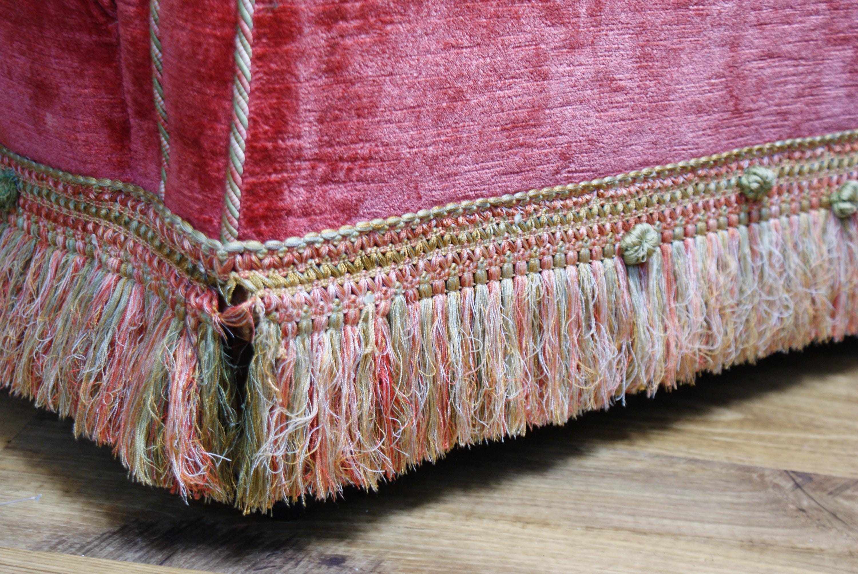 Victorian Pink Velvet Bullion Fringe Armchair