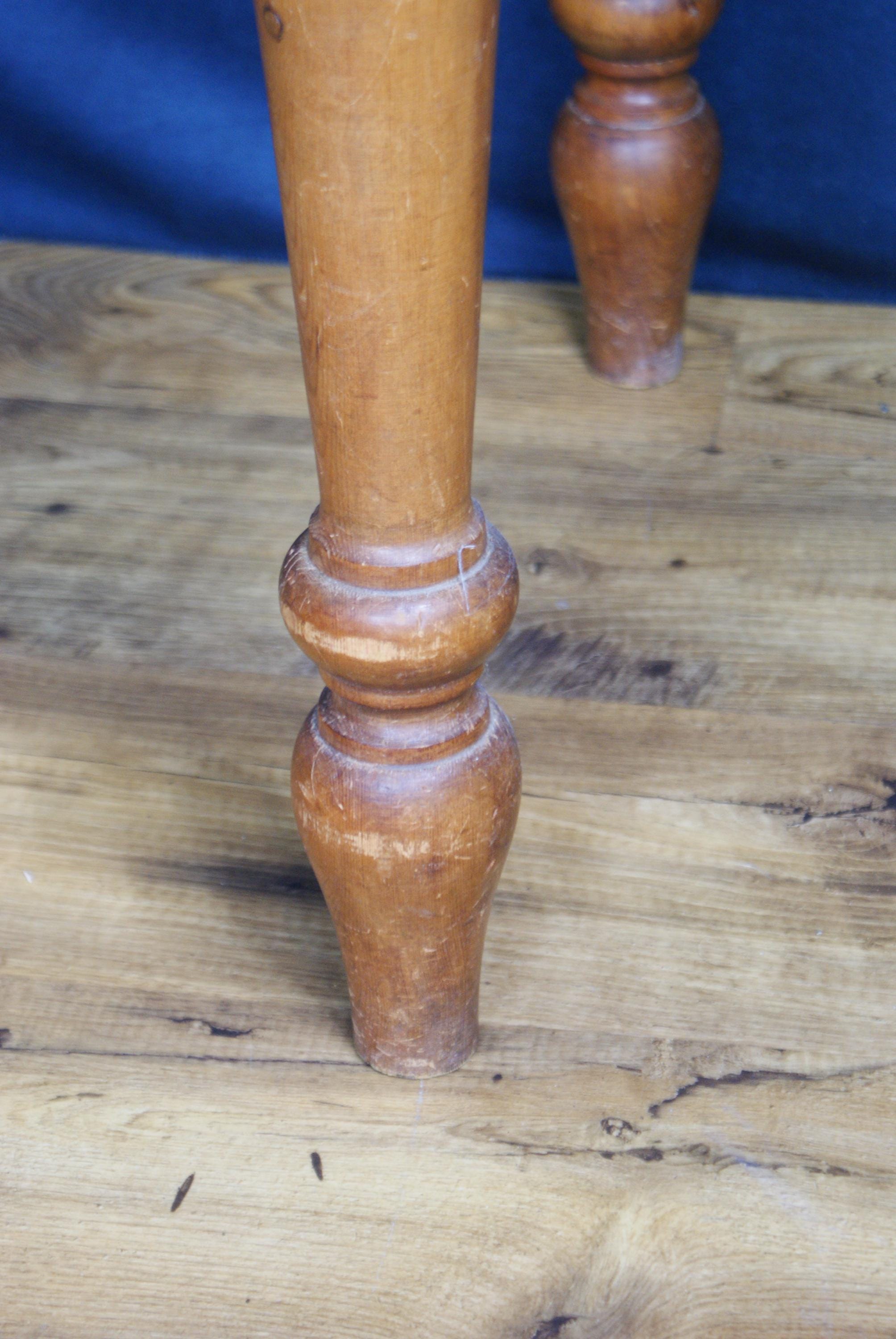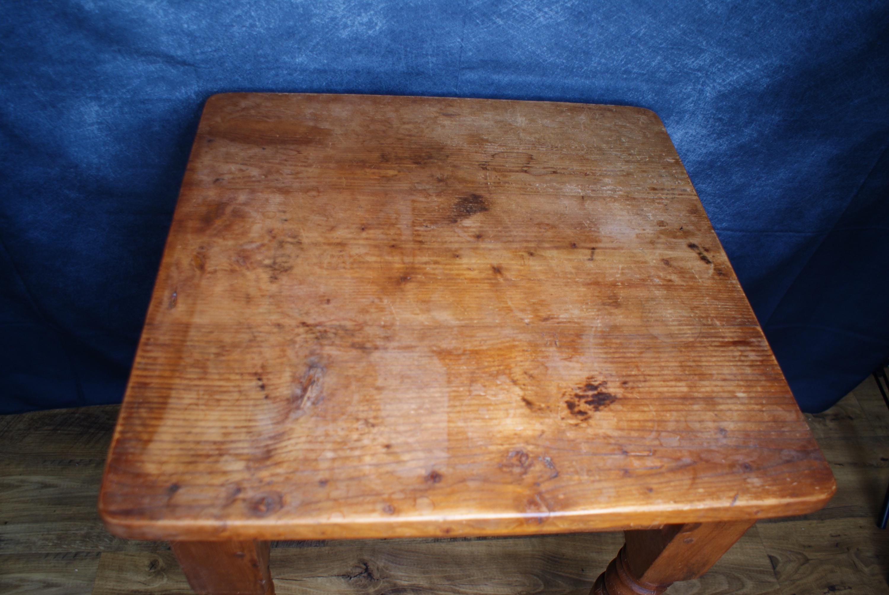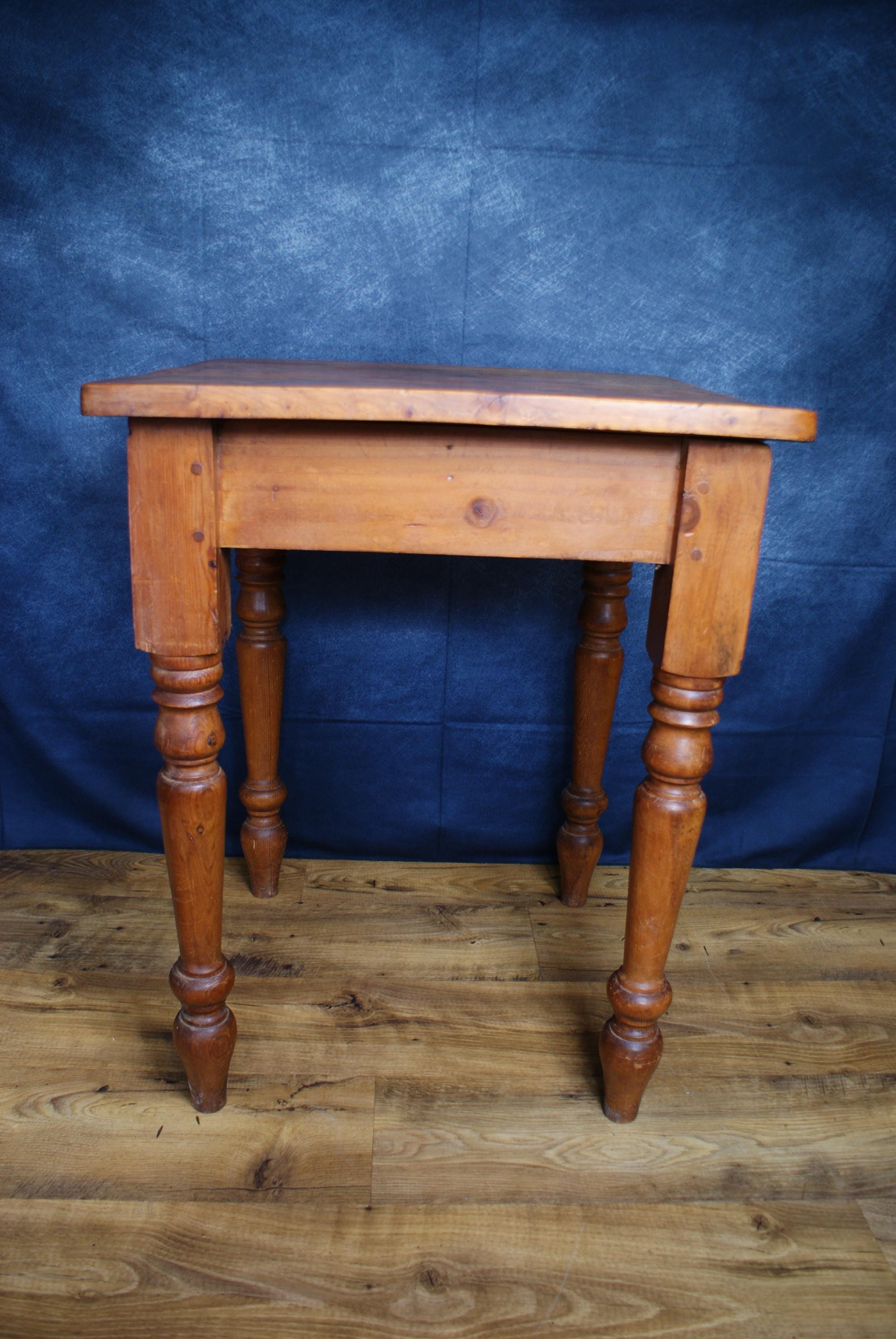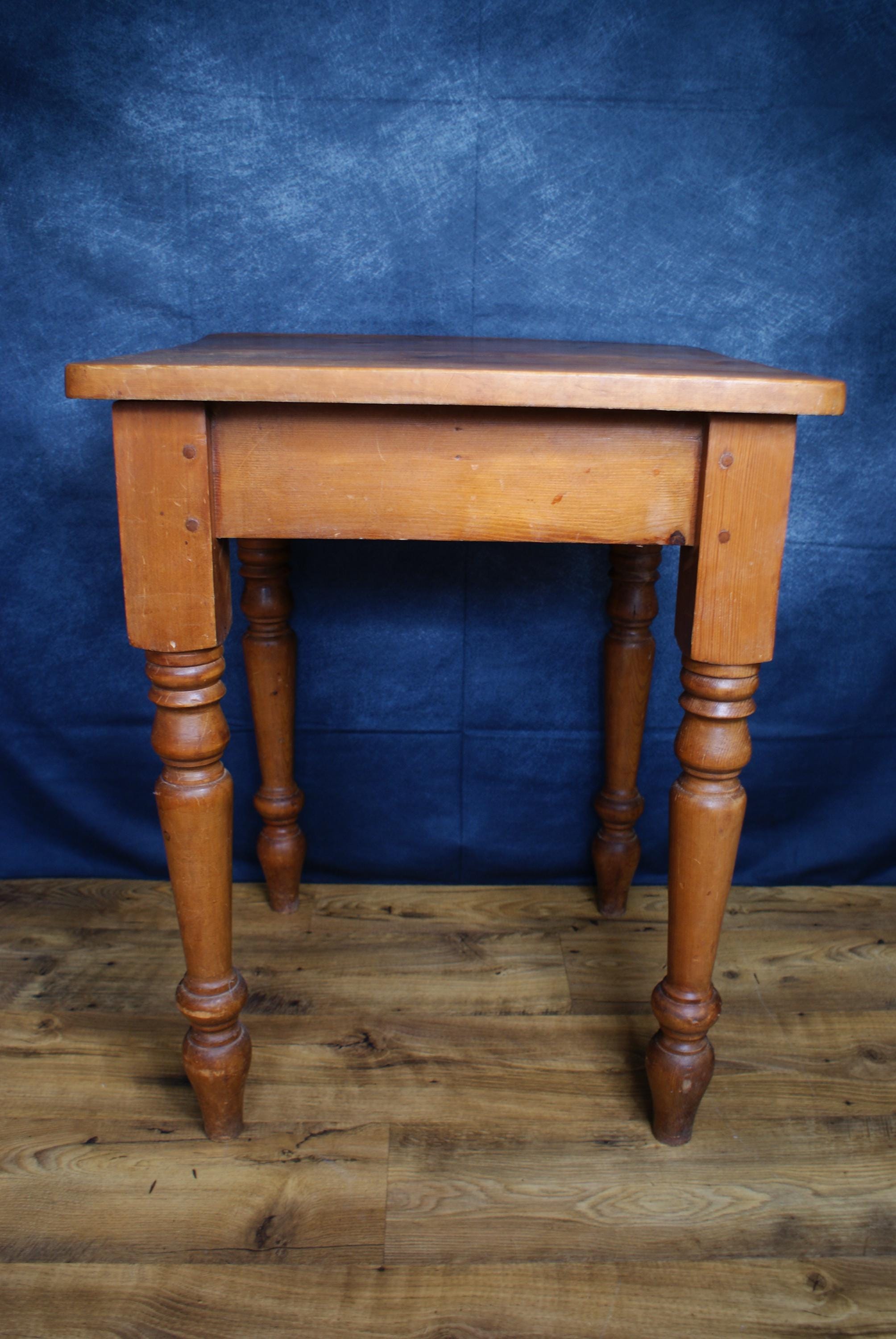 A lovely small pine farmhouse table. In excellent condition with a lovely patina and signs of use and age. A nice size small space kitchen table or prep table.