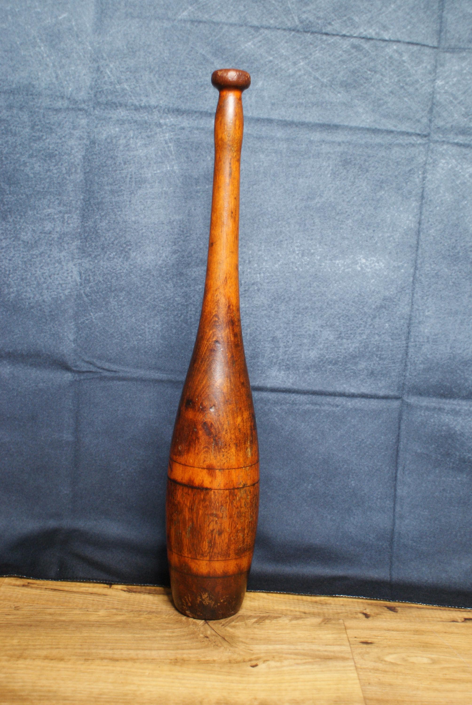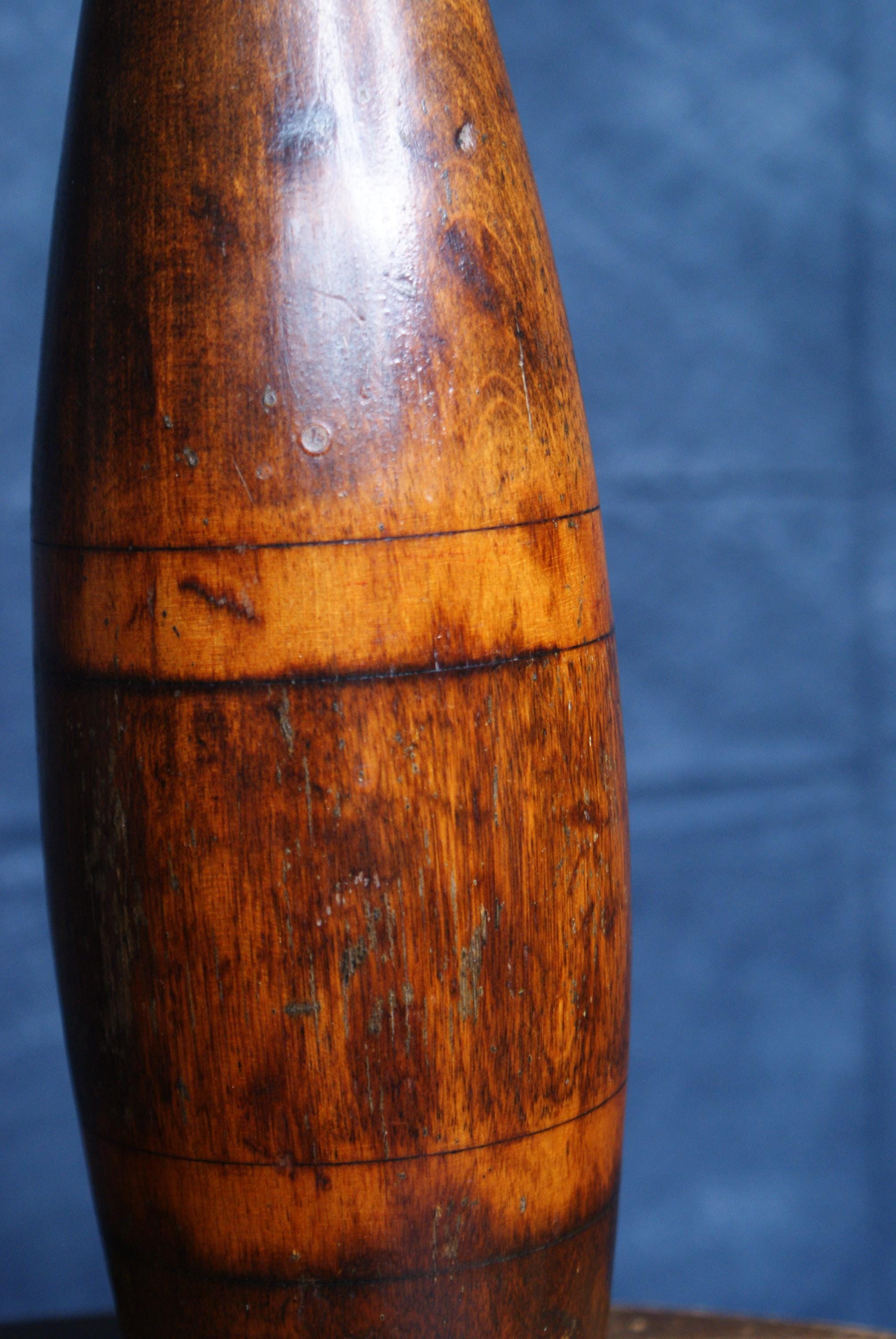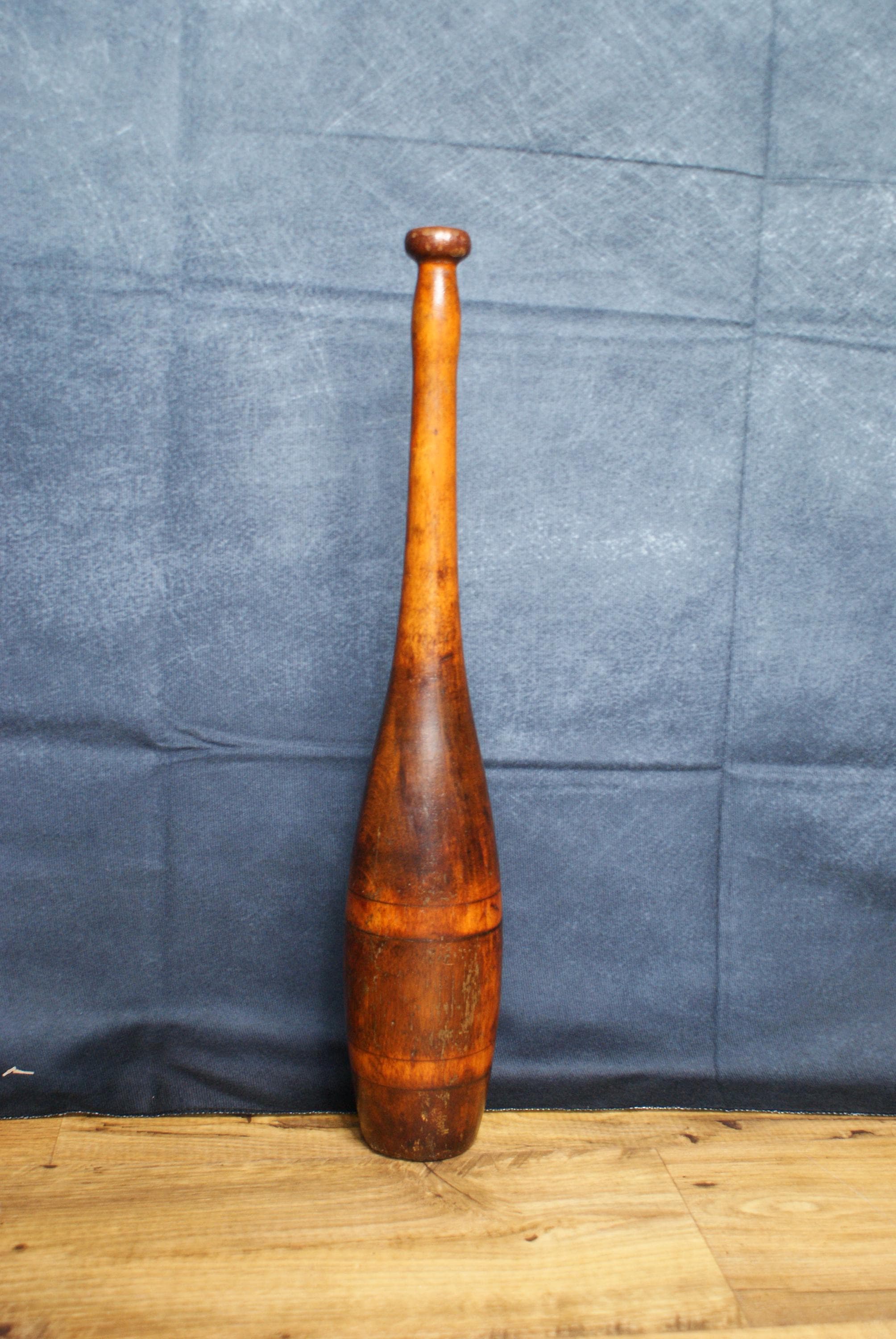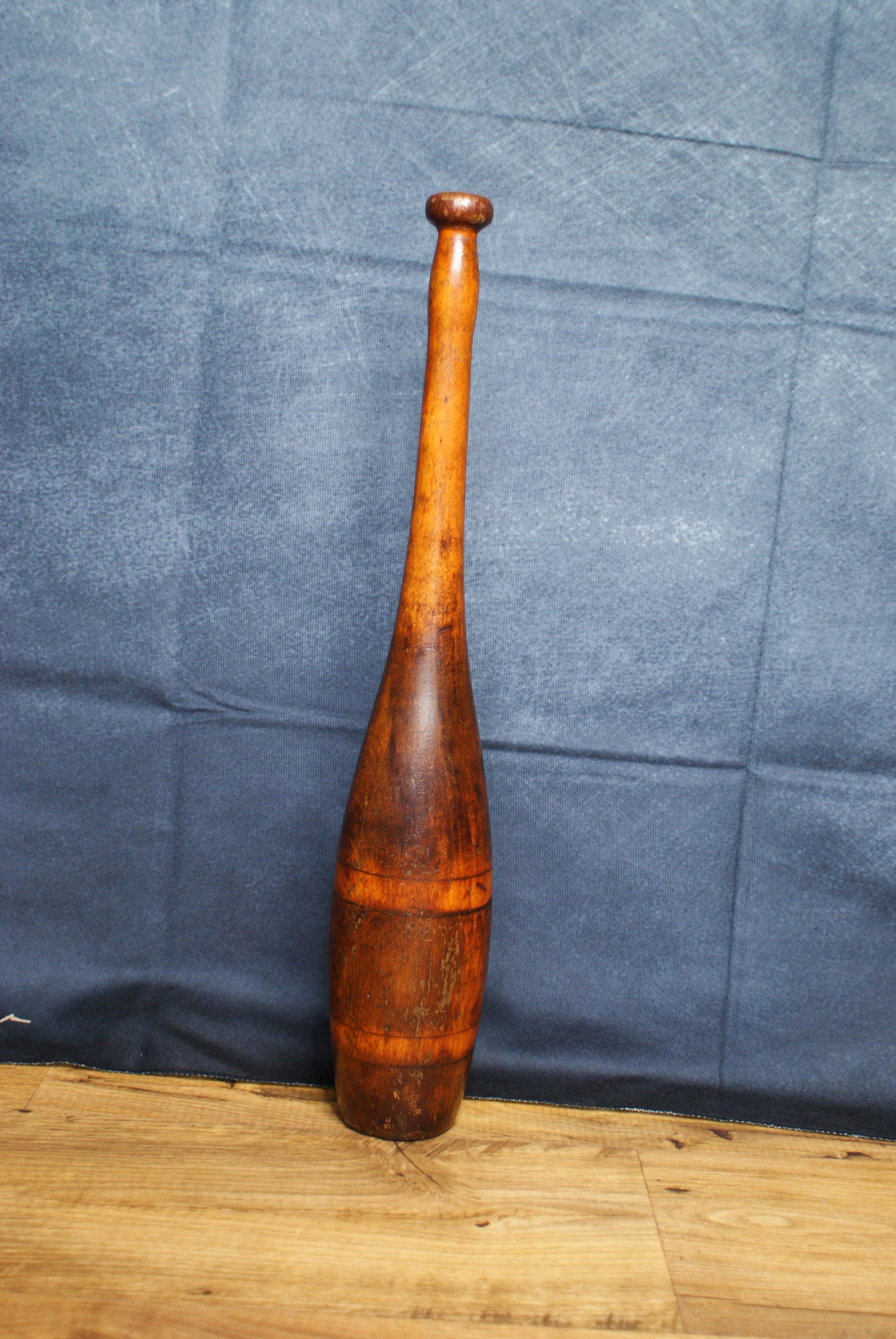 A lovely vintage piece exercise equipment known as an Indian club. This is a fantastic decorative piece with a lovely patina.